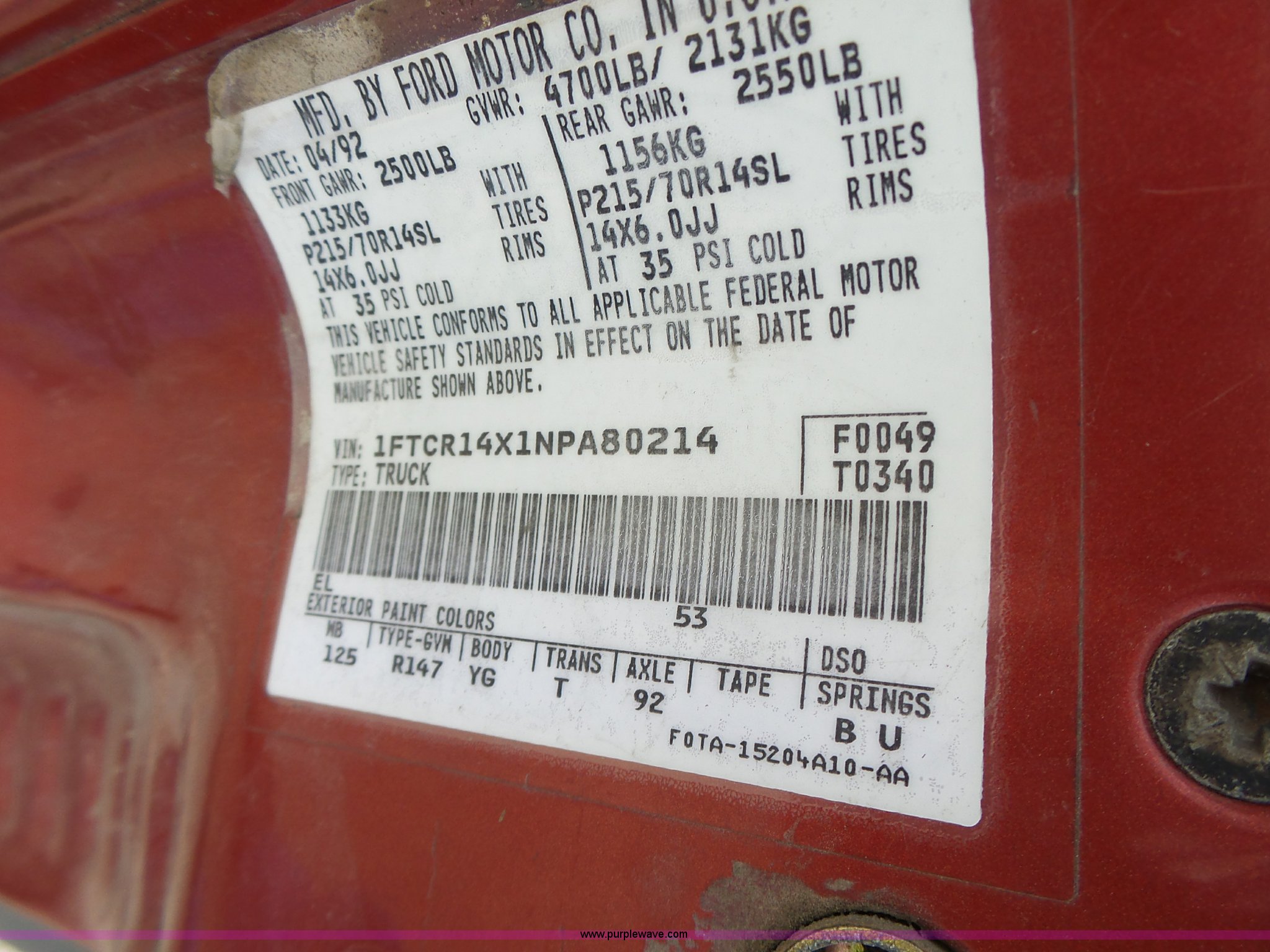Purple Wave is selling a used Compact Pickup or Van in Missouri. This item is a 1992 Ford Ranger SuperCab pickup truck with the following: 2,936 miles on odometer, 4.0L V6 OHV 12V gas engine, Automatic transmission, AC and heat, Cruise, AM/FM/cassette, Manual windows and locks, Cloth interior, 235/75R15 tires