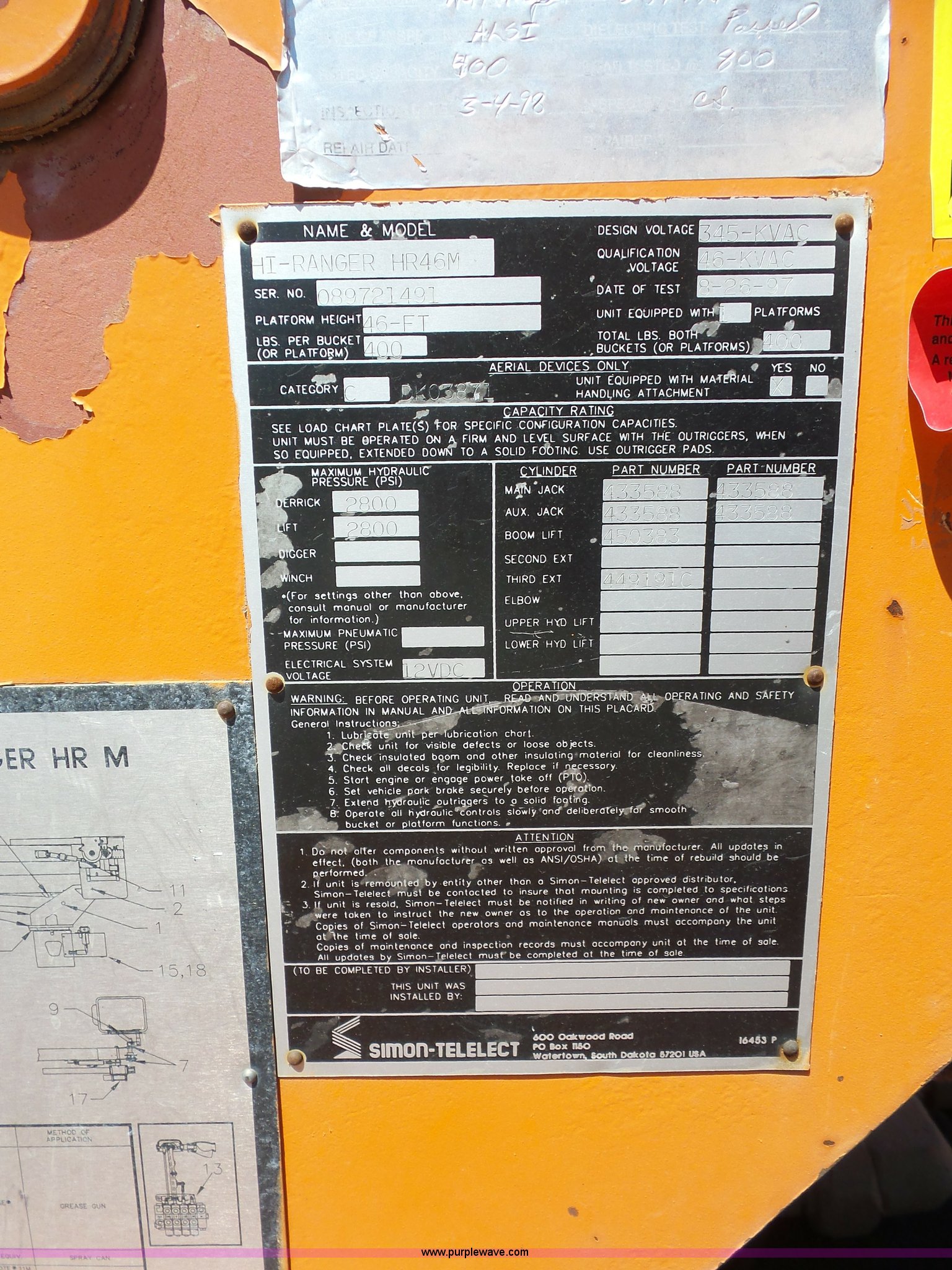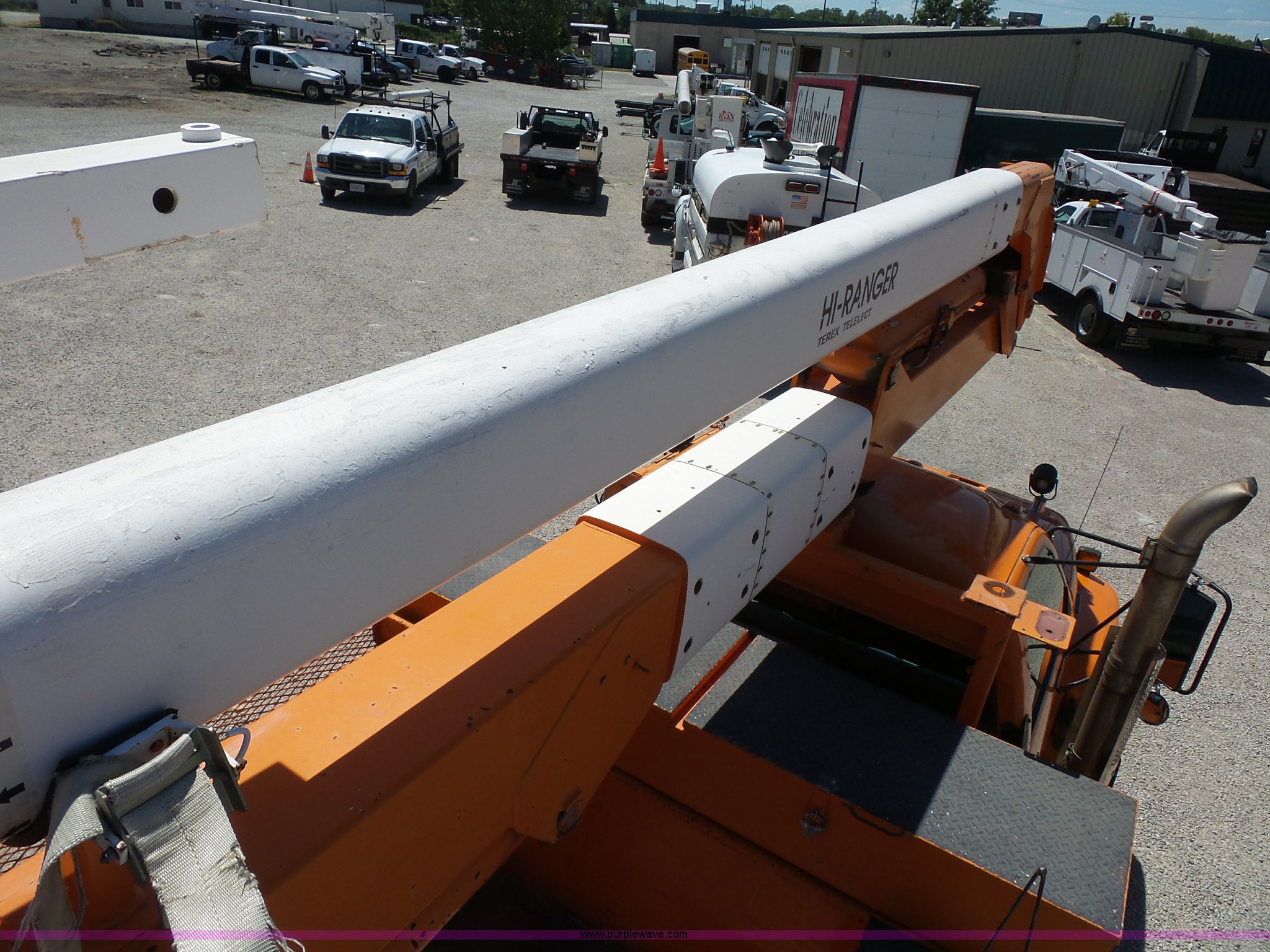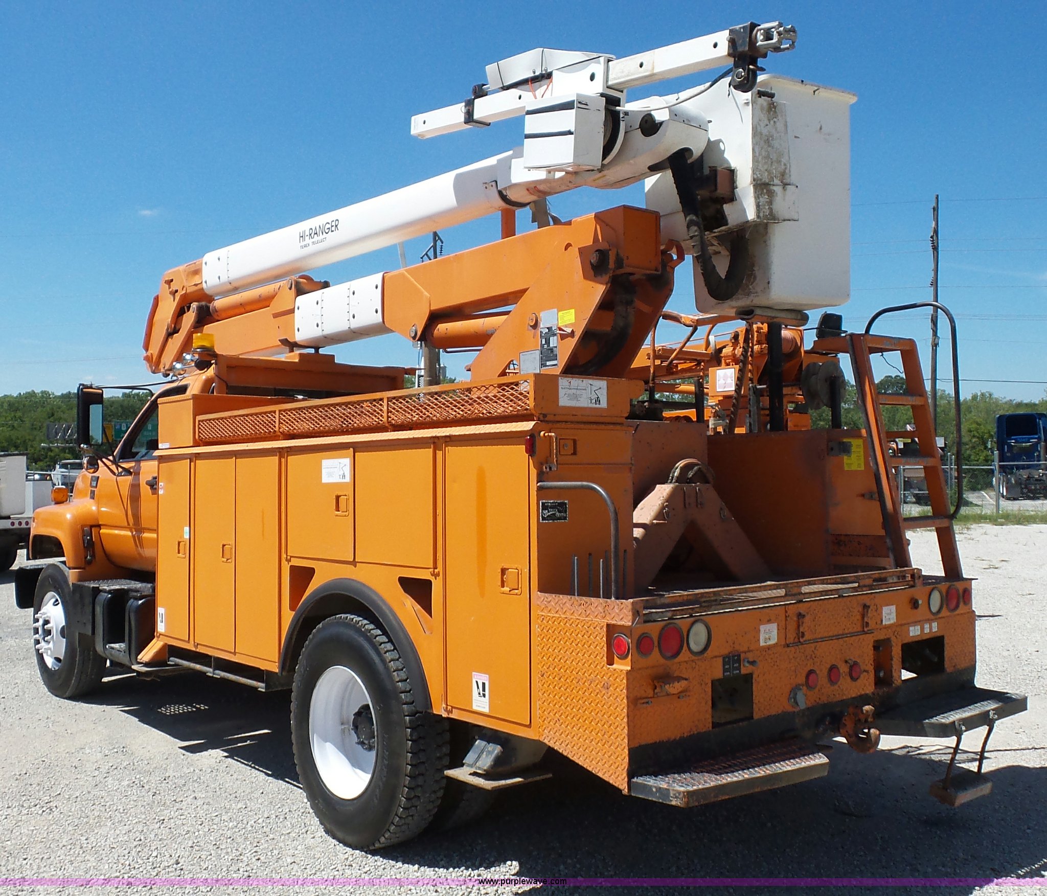 Purple Wave is selling a used Bucket Truck in Missouri. This item is a 1997 GMC C7500 bucket truck with the following: 105,580 miles on odometer, 9,229 hours on meter, Caterpillar 3116 6.6L L6 turbo diesel engine, Five speed manual transmission, Two speed rear end, Single axle, Heat, AM/FM, PTO, Shelving, Terex Telelct Hi-Ranger HR46M boom, Serial 08972H91, 400 lbs maximum lift capacity, 46' maximum lift height, Articulating boom, (4) hydraulic outriggers, Spring suspension, Air brakes, 11R22.5 front tires