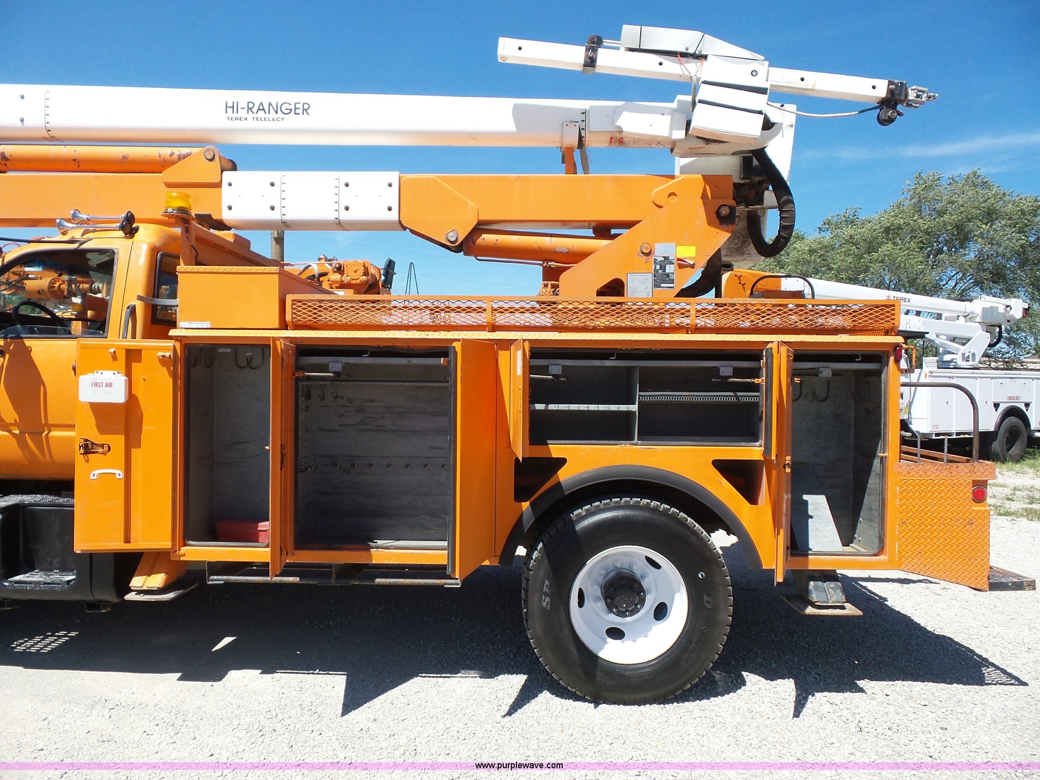 1997 GMC C7500 bucket truck. 105,580 miles on odometer, 9,229 hours on meter, Caterpillar 3116 6.6L L6 turbo diesel engine, Five speed manual transmission, Two speed rear end, Single axle, Heat, AM/FM, PTO, Shelving, Terex Telelct Hi-Ranger HR46M boom Serial 08972H91, 400 lbs maximum lift capacity, 46' maximum lift height, Articulating boom, (4) hydraulic outriggers, Spring suspension, Air brakes, 11R22.5 front tires. Montana title. Seller is a Missouri licensed motor vehicle dealer. Title will be assigned and distributed by the dealer. Please contact the seller for distribution questions. 1GBM7H1J5VJ115783. Interstate 49 Truck Center. 15211 S. I49. Grandview, MO 64030