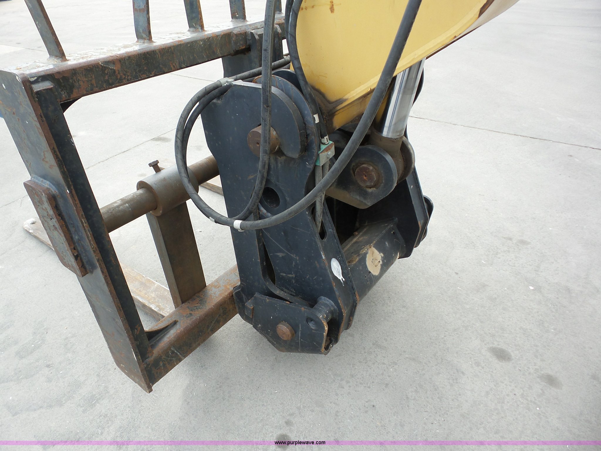 Purple Wave is selling a used Telehandler in Kansas. This item is a 2004 Caterpillar TH360B telehandler with the following: 4,503 hours on meter, Hours may vary, unit is still in use, Caterpillar 3054 four cylinder turbo diesel engine, Four wheel drive, Crab steer, OROPS, Backup alarm, 6,600 lbs maximum lift capacity, 44'3" maximum lift height, Three stage boom, 48" fork length, Auxiliary hydraulics, Swing and tilt carriage, Hydraulic leveling, Hydraulic control module update, 13.00-24 tires, Serial CATTH360K5LE01132, Unit# 1010