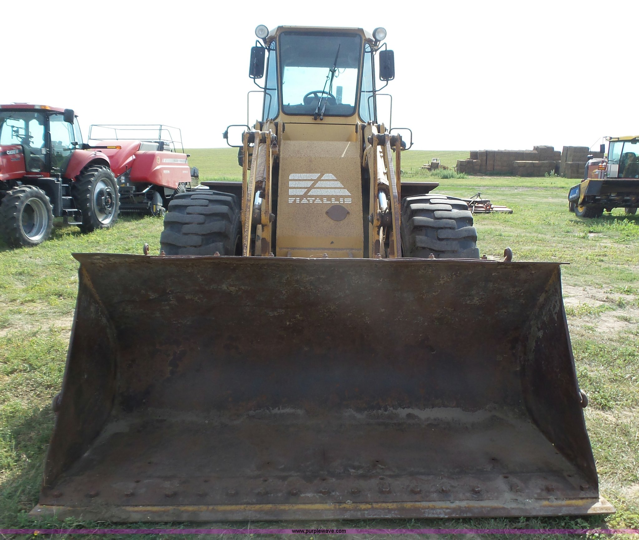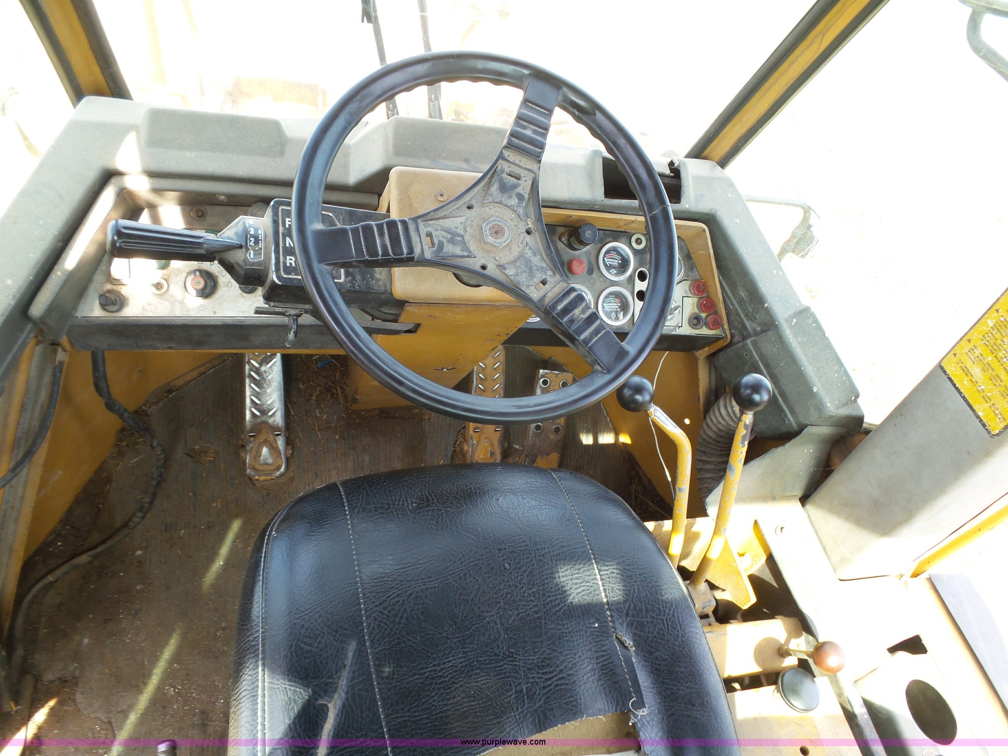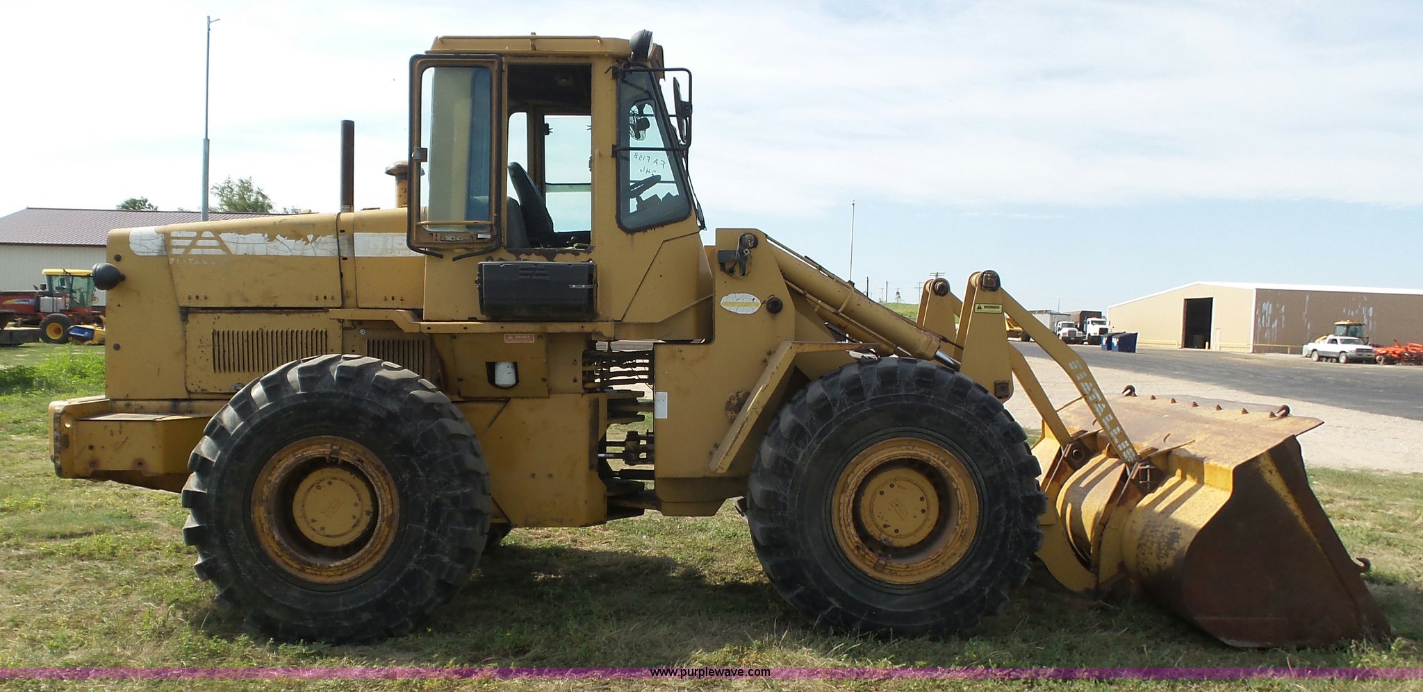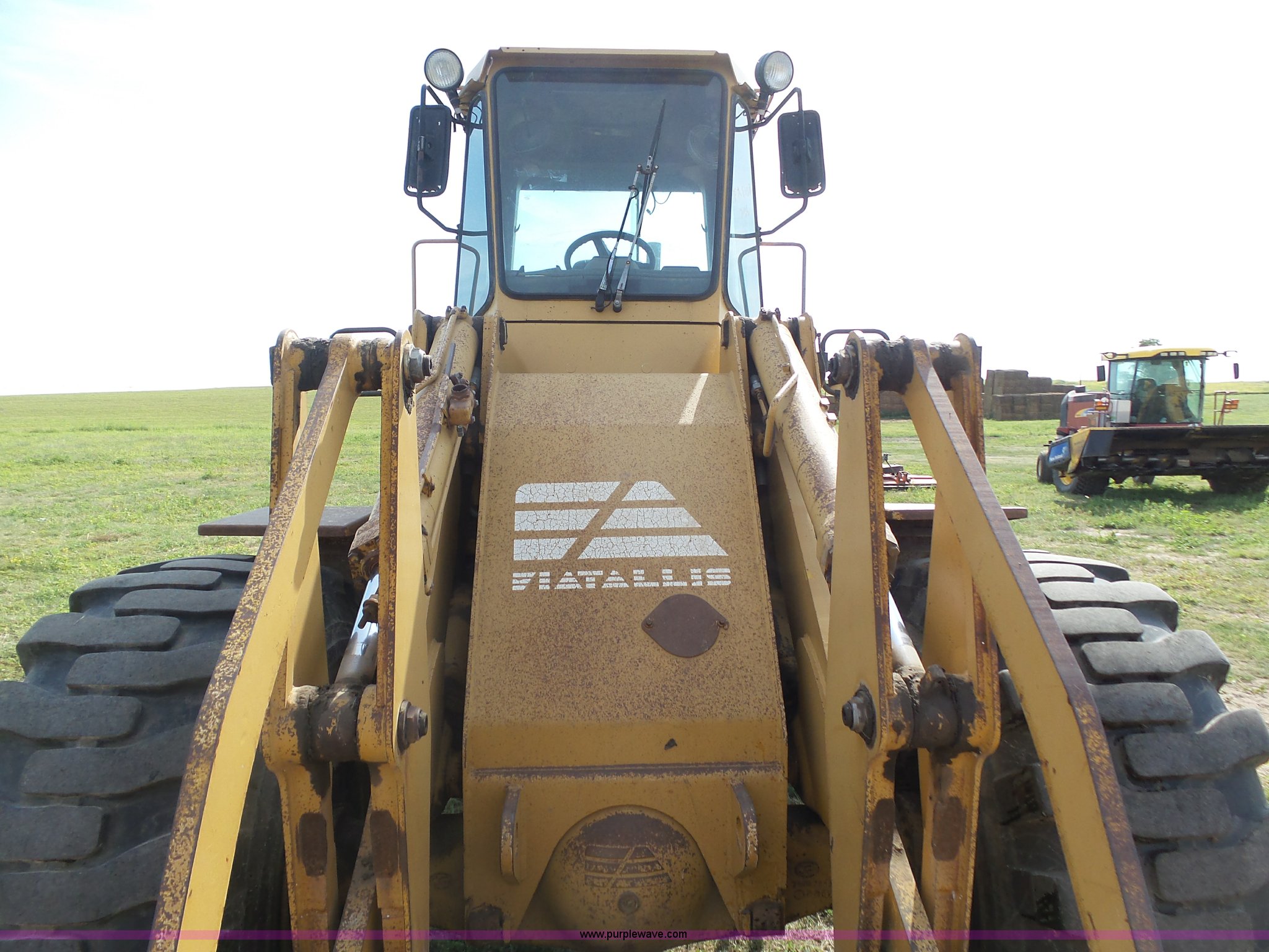 Purple Wave is selling a used Wheel Loader in Kansas. This item is a 1987 Fiat-Allis FR15B wheel loader with the following: 4,715 hours on meter, Six cylinder turbo diesel engine, Powershift transmission, 4F-2R gears, Enclosed cab, Suspension seat, Two-lever bucket controls, Wipers, Front and rear work lights, 110"W general purpose bucket, Bolt-on cutting edge, Advance 23.5-25 tires, 32,890 lbs. base operating weight, Temperature sending unit needs replaced, Serial R15B2TZ590447