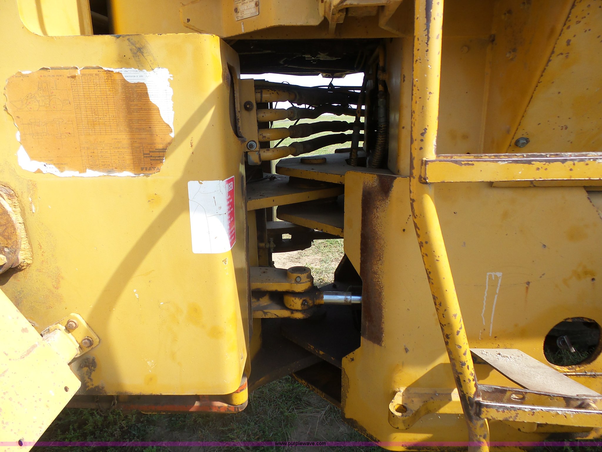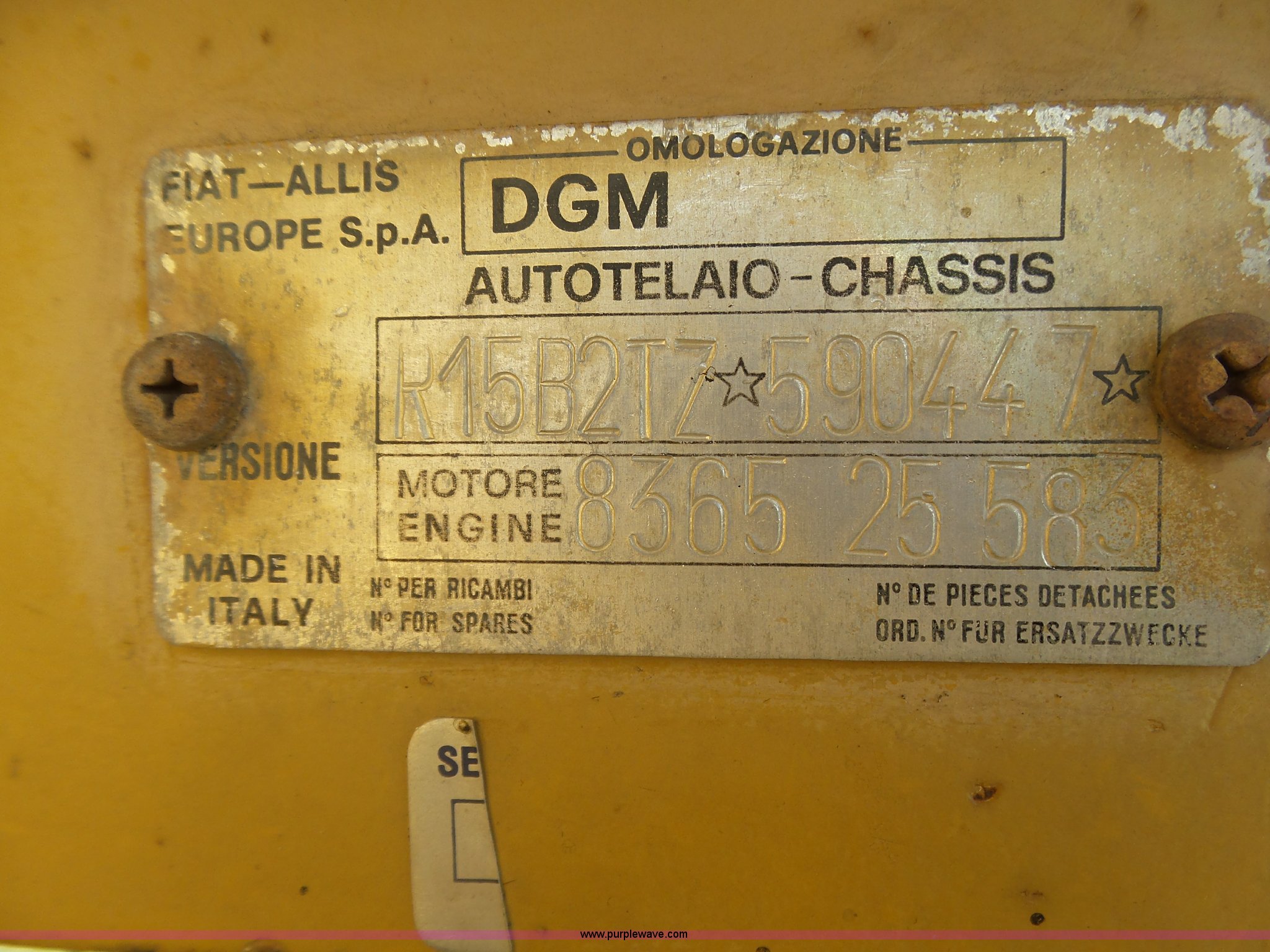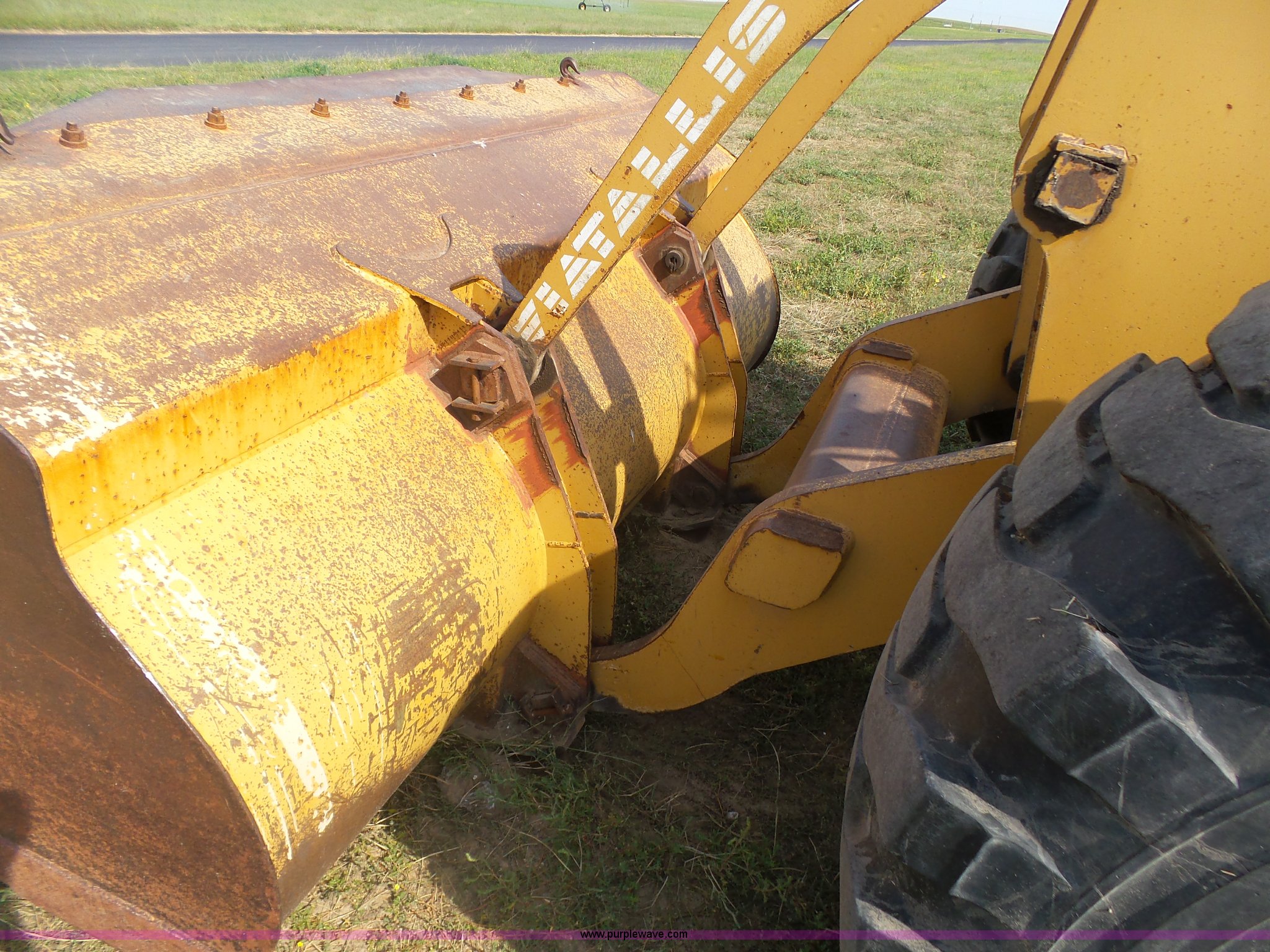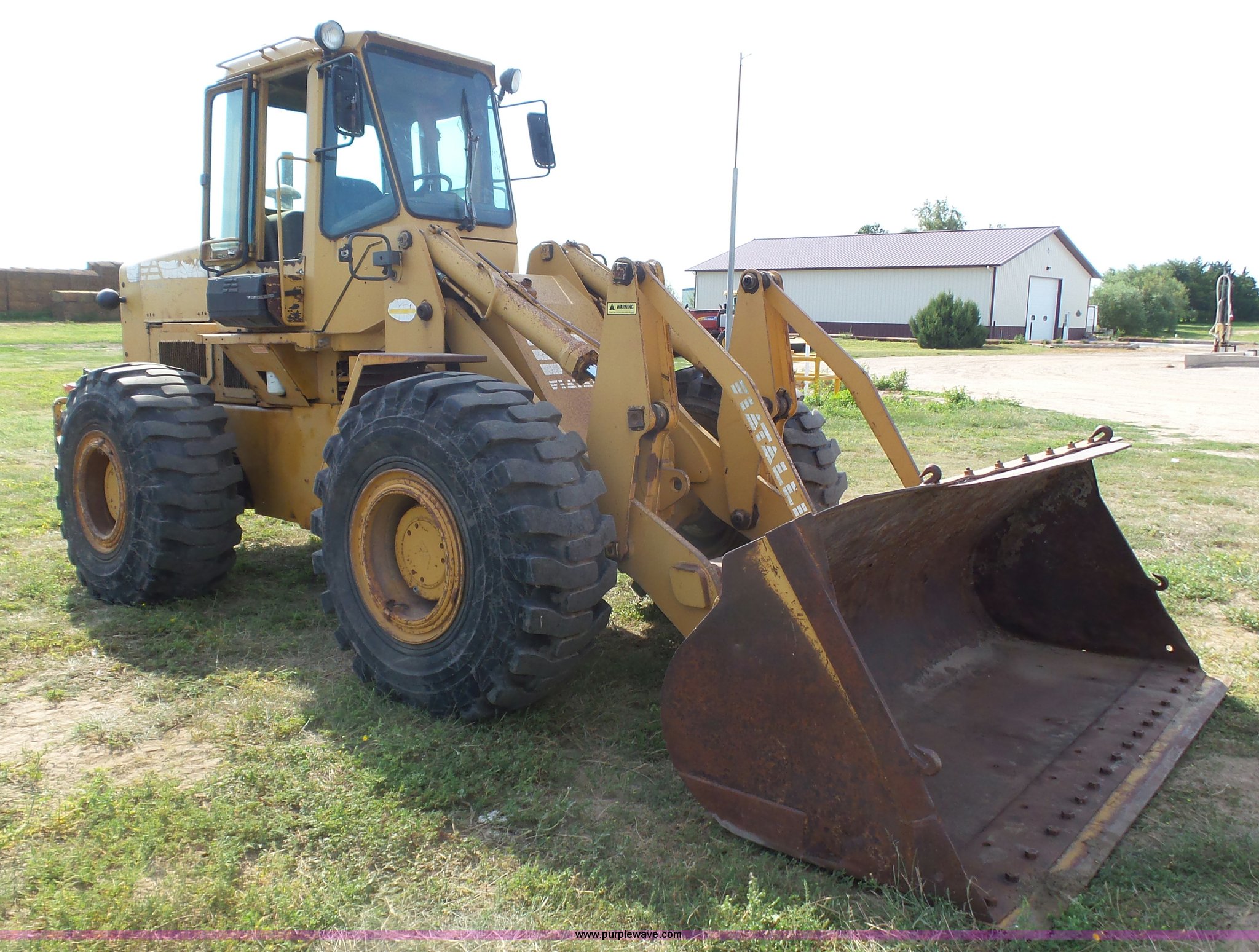 Purple Wave is selling a used Wheel Loader in Kansas. This item is a 1987 Fiat-Allis FR15B wheel loader with the following: 4,715 hours on meter, Six cylinder turbo diesel engine, Powershift transmission, 4F-2R gears, Enclosed cab, Suspension seat, Two-lever bucket controls, Wipers, Front and rear work lights, 110"W general purpose bucket, Bolt-on cutting edge, Advance 23.5-25 tires, 32,890 lbs. base operating weight, Temperature sending unit needs replaced, Serial R15B2TZ590447