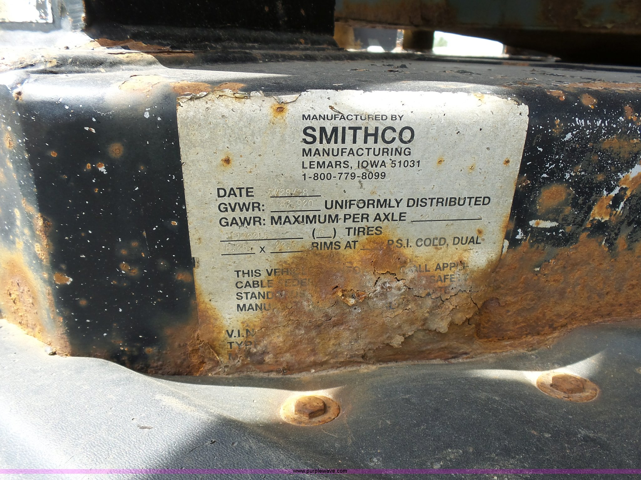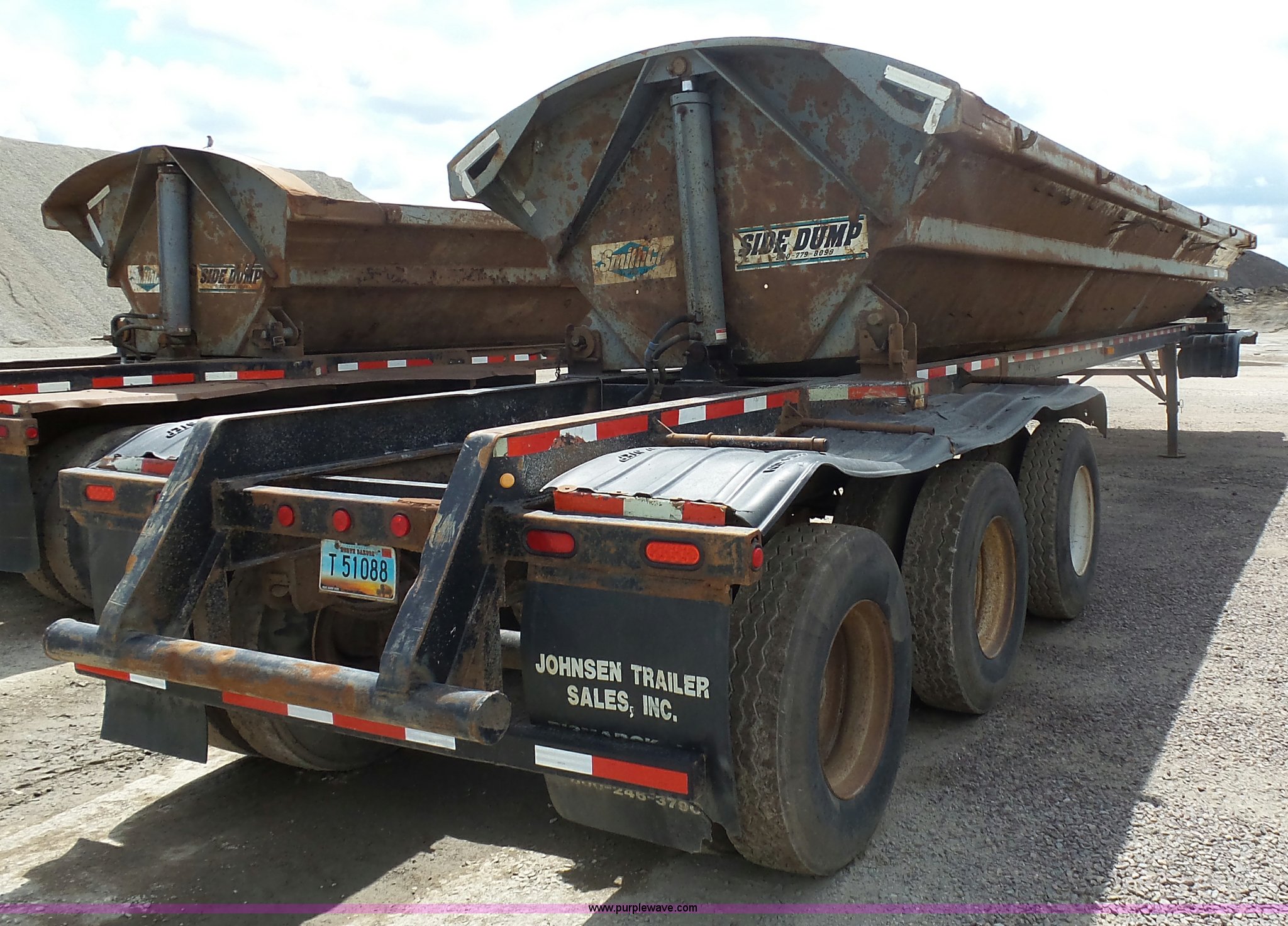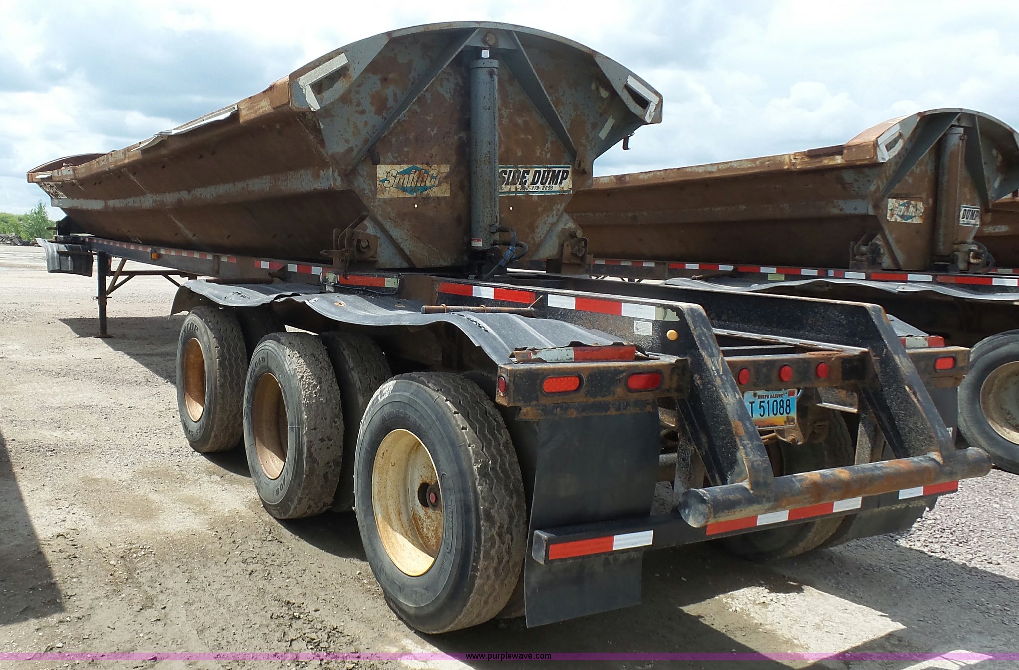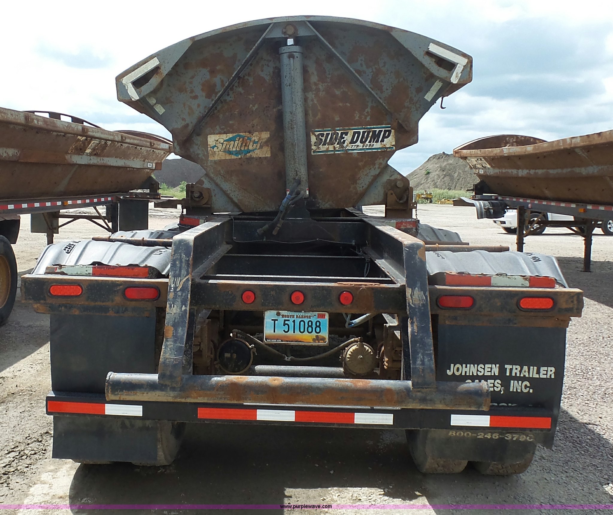 Purple Wave is selling a used Side Tilt Dump Trailer in North Dakota. This item is a 1998 Smithco side dump trailer with the following: 38'L, Steel construction, Dual hydraulic cylinders, Dual leg landing gear, Fifth wheel plate, Triple axle, Spring suspension, Air brakes, 11R22.5 tires, GVWR 87,920 lbs, GAWR 22,400 lbs