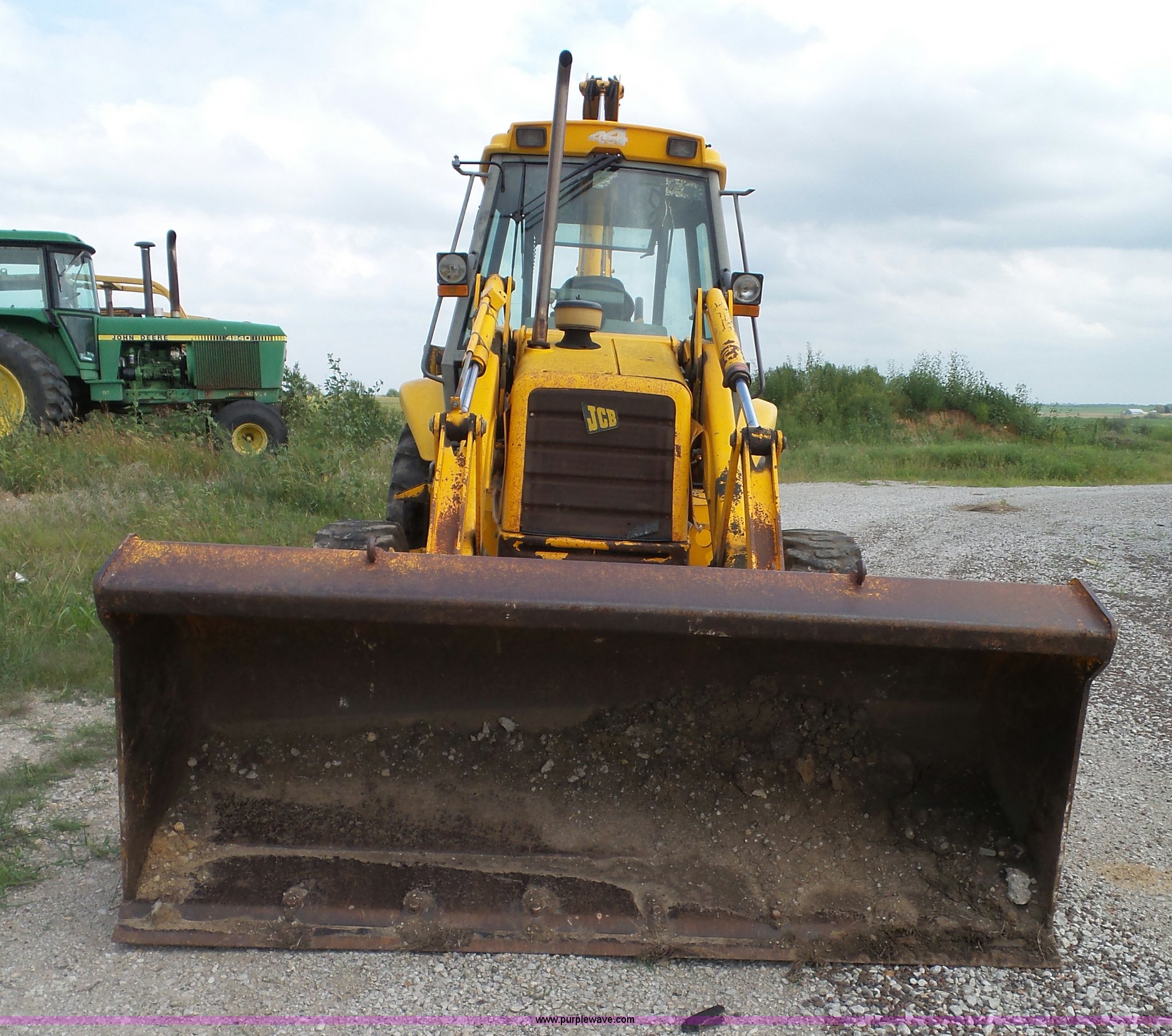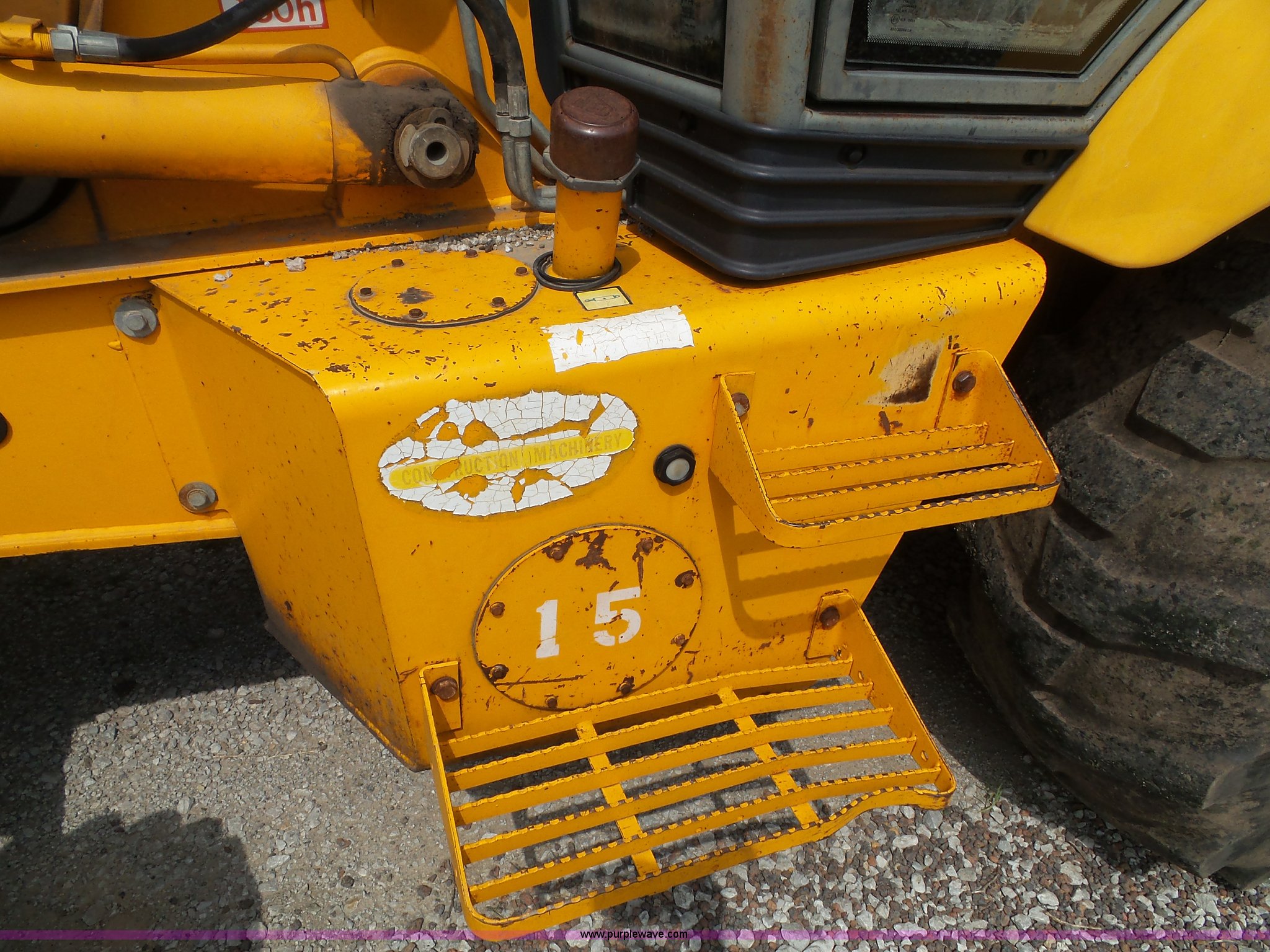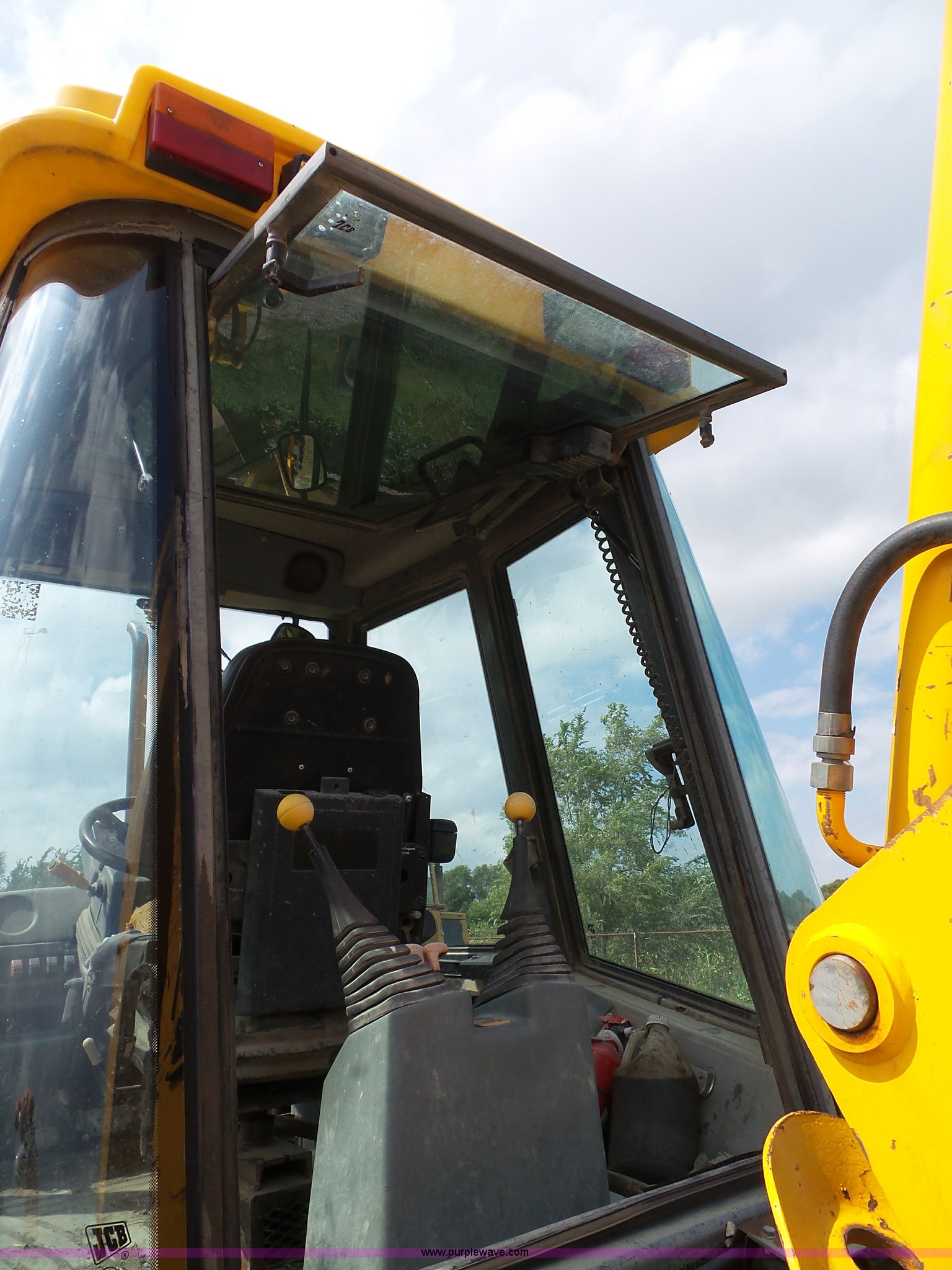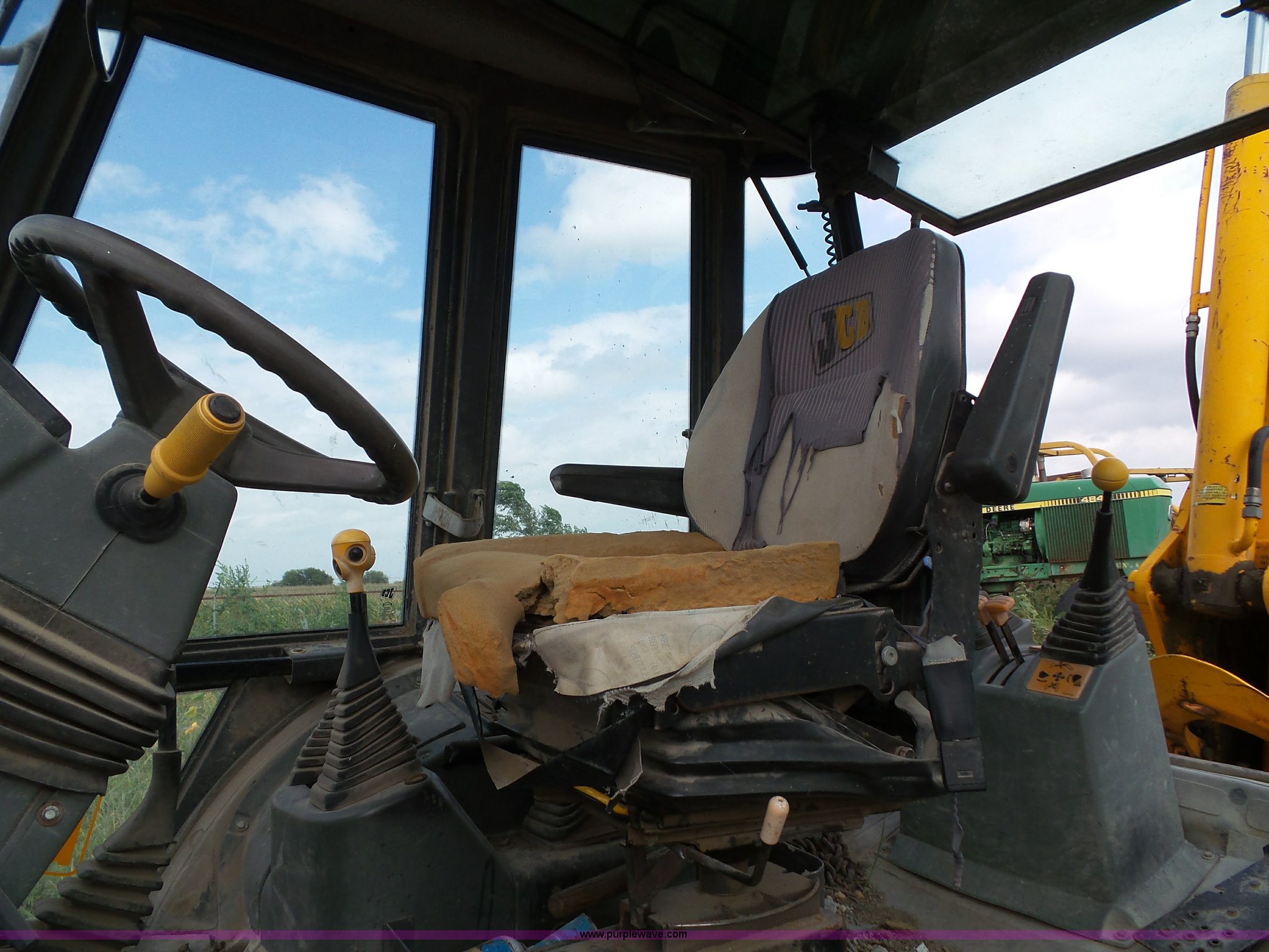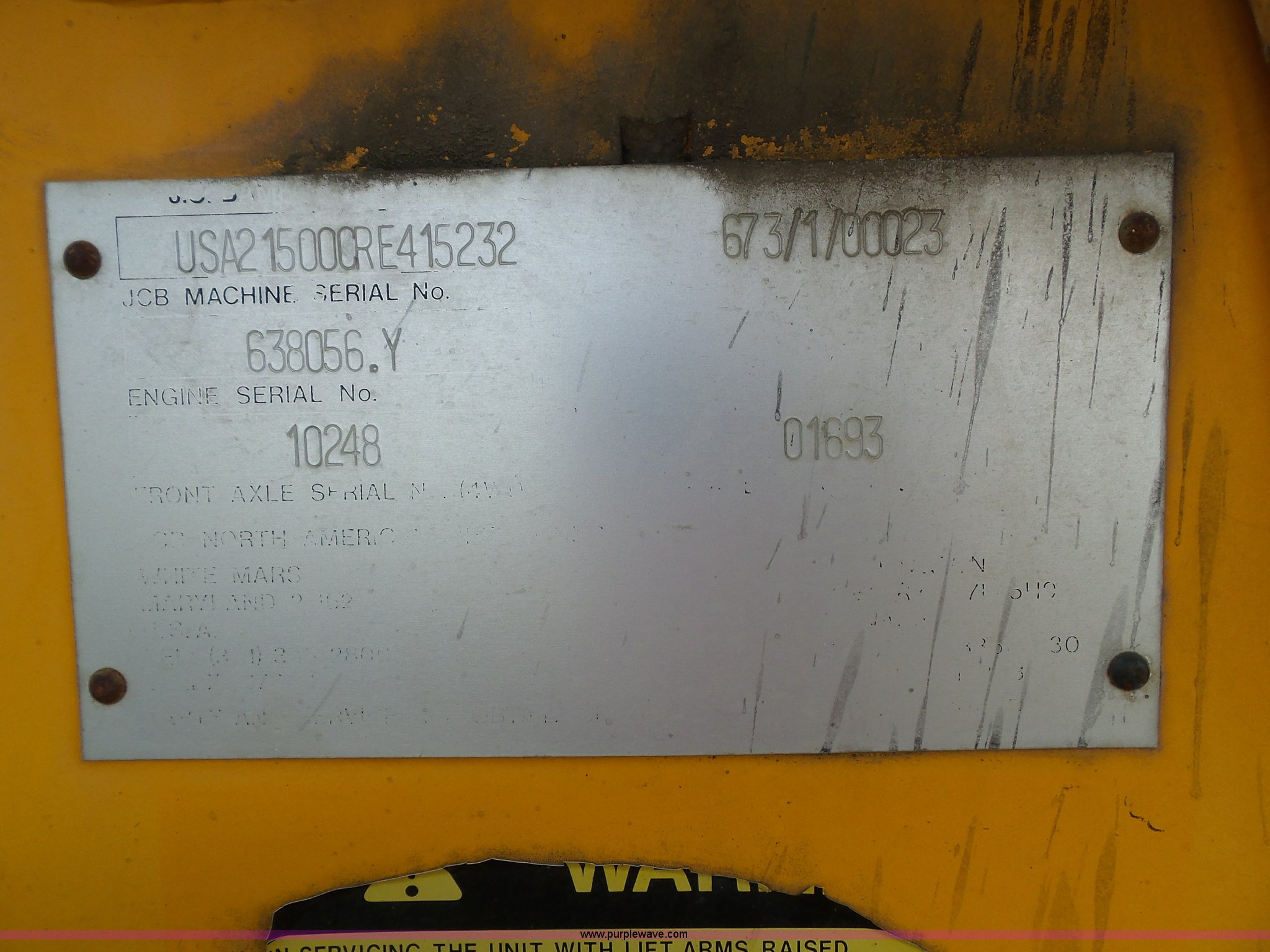 Purple Wave is selling a used Tractor Loader Backhoe in Kansas. This item is a JCB 215 backhoe with the following: 4,852 hours on meter, Diesel engine, Serial 10248, Four wheel drive, EROPS, Wipers, Front and rear work lights, 92"W loader bucket, Bolt-on cutting edge, E-stick, 15' to 19' digging depth, 22"W backhoe bucket, Weld-on cutting edge, (4) teeth, Stabilizer pads, Amulet MS14BW jaw, Serial 5827, 14-17.5 front tires, 19.5L-24 rear tires, Seat damaged, Serial 638056.Y