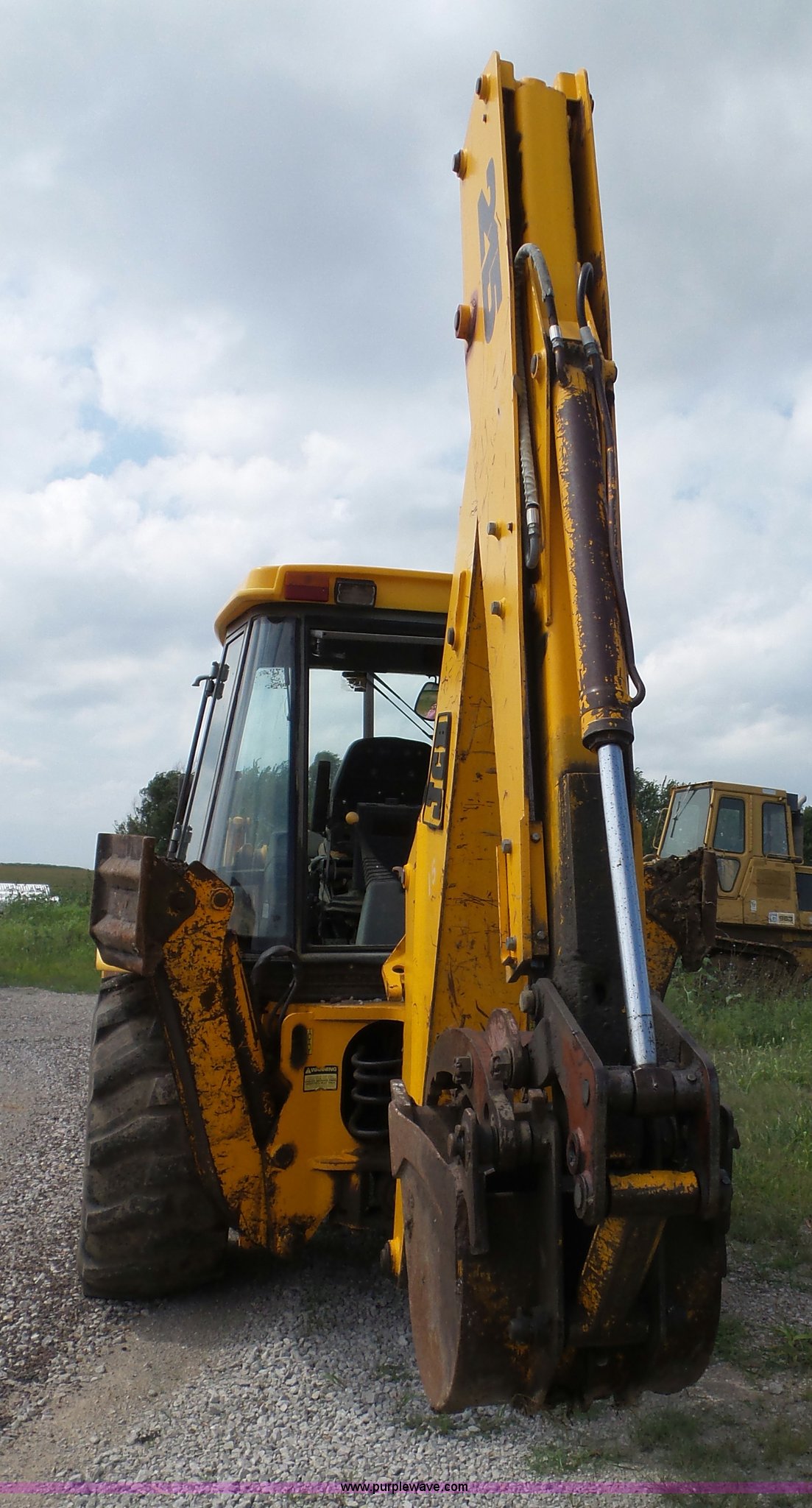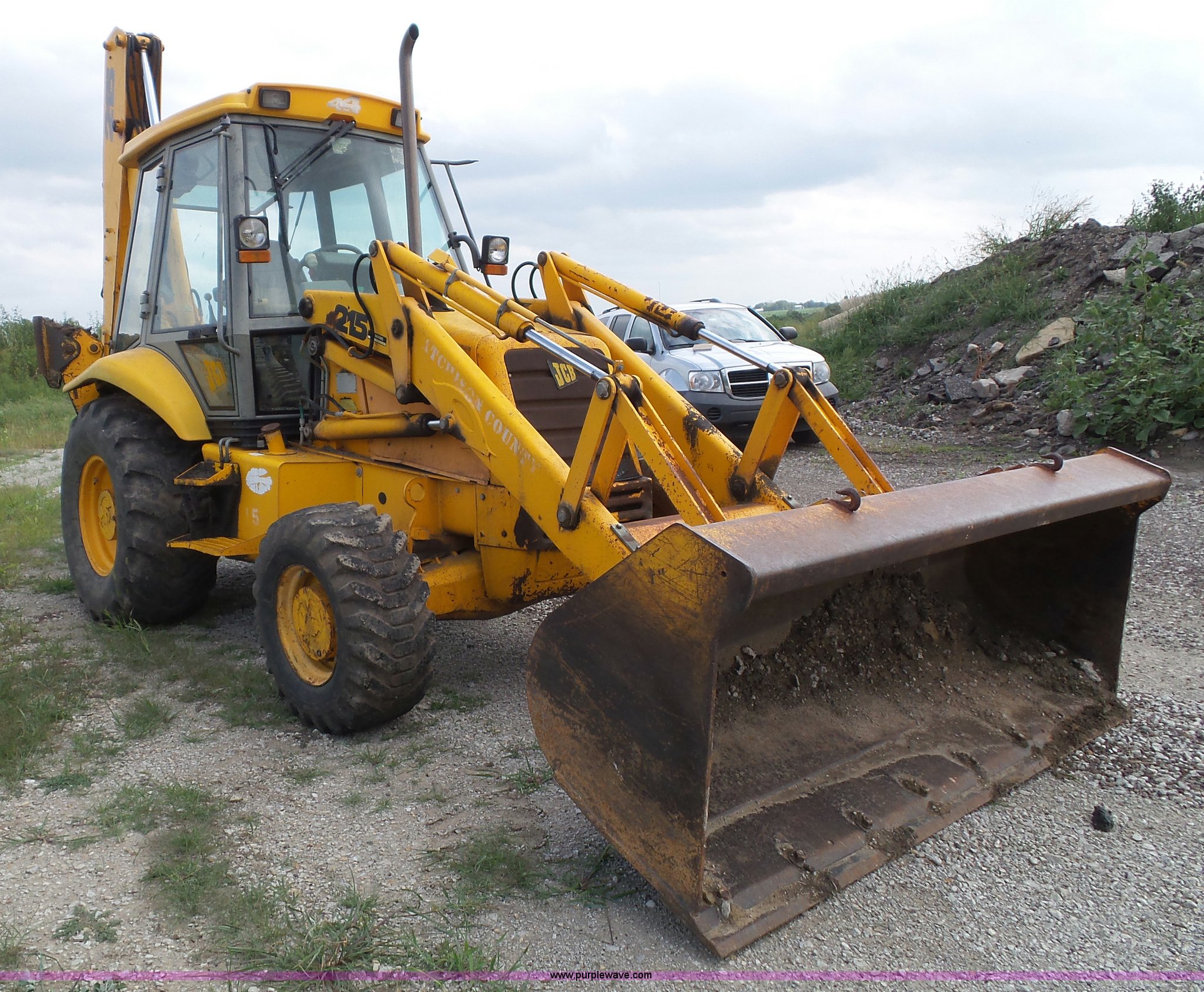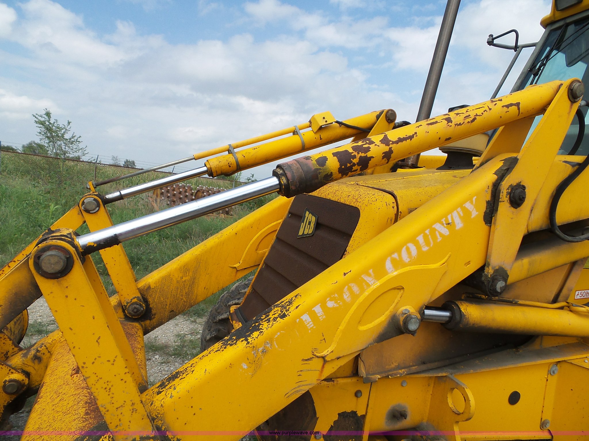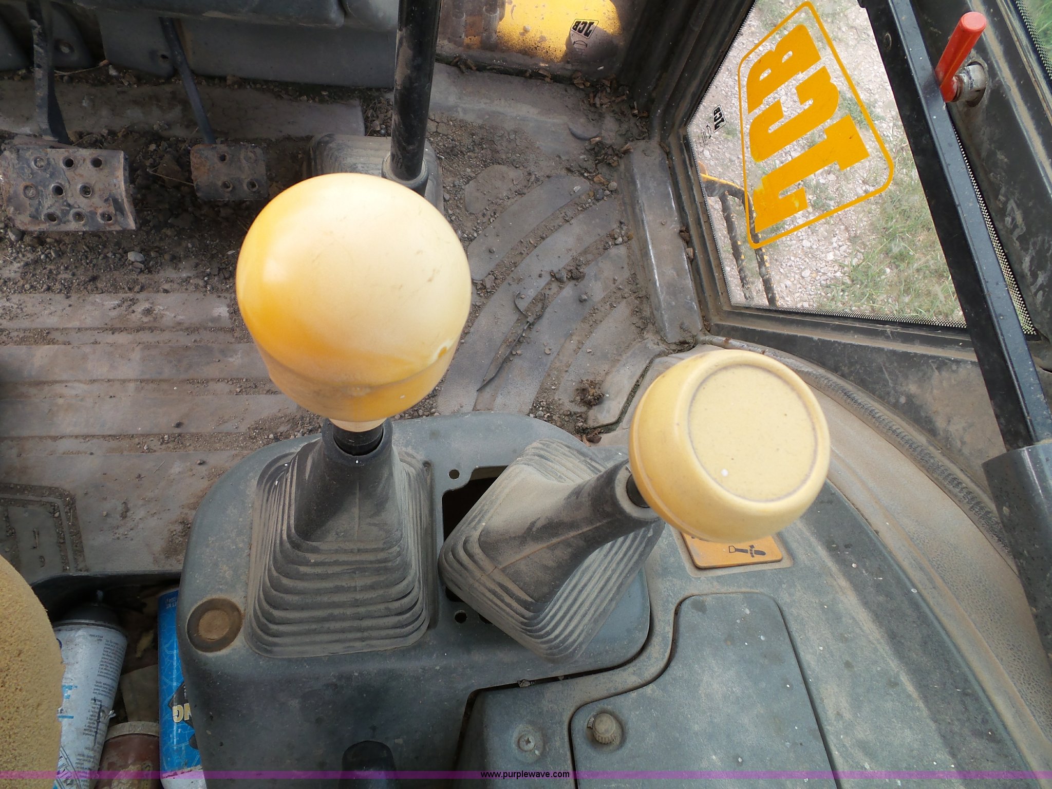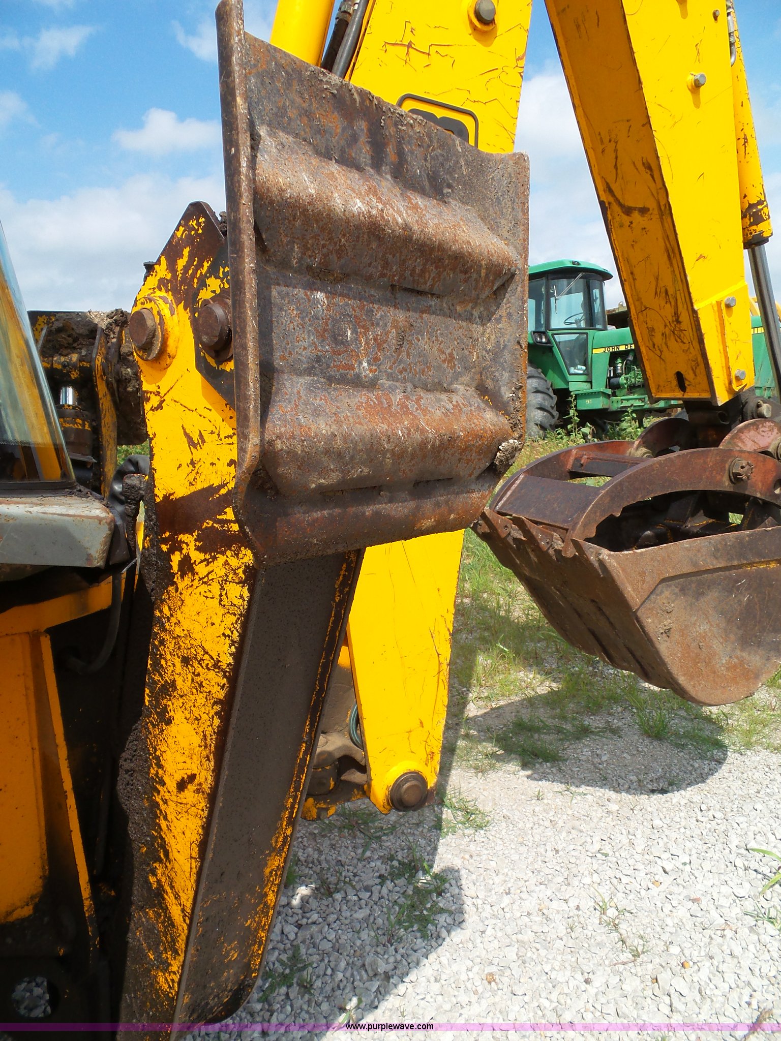 Purple Wave is selling a used Tractor Loader Backhoe in Kansas. This item is a JCB 215 backhoe with the following: 4,852 hours on meter, Diesel engine, Serial 10248, Four wheel drive, EROPS, Wipers, Front and rear work lights, 92"W loader bucket, Bolt-on cutting edge, E-stick, 15' to 19' digging depth, 22"W backhoe bucket, Weld-on cutting edge, (4) teeth, Stabilizer pads, Amulet MS14BW jaw, Serial 5827, 14-17.5 front tires, 19.5L-24 rear tires, Seat damaged, Serial 638056.Y