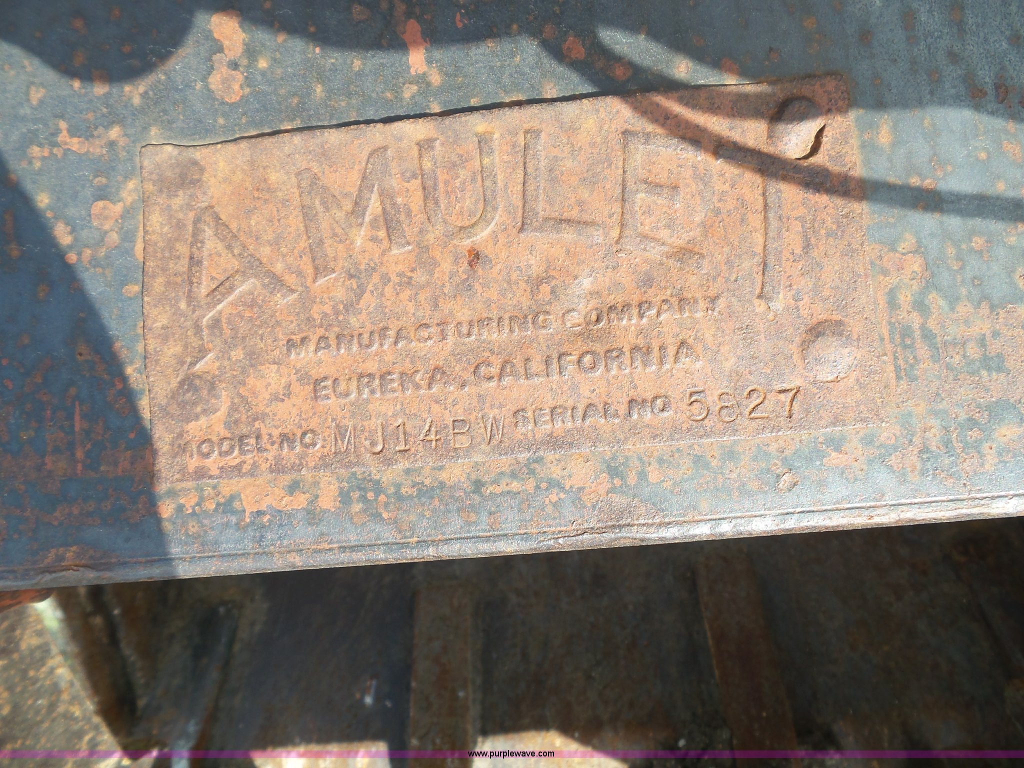 JCB 215 backhoe. 4,852 hours on meter, Diesel engine Serial 10248, Four wheel drive, EROPS, Wipers, Front and rear work lights, 92"W loader bucket Bolt-on cutting edge, E-stick 15' to 19' digging depth, 22"W backhoe bucket Weld-on cutting edge, (4) teeth, Stabilizer pads, Amulet MS14BW jaw Serial 5827, 14-17.5 front tires, 19.5L-24 rear tires, Seat damaged, Serial 638056.Y. 613 S. 22nd Street. Atchison, KS 66002