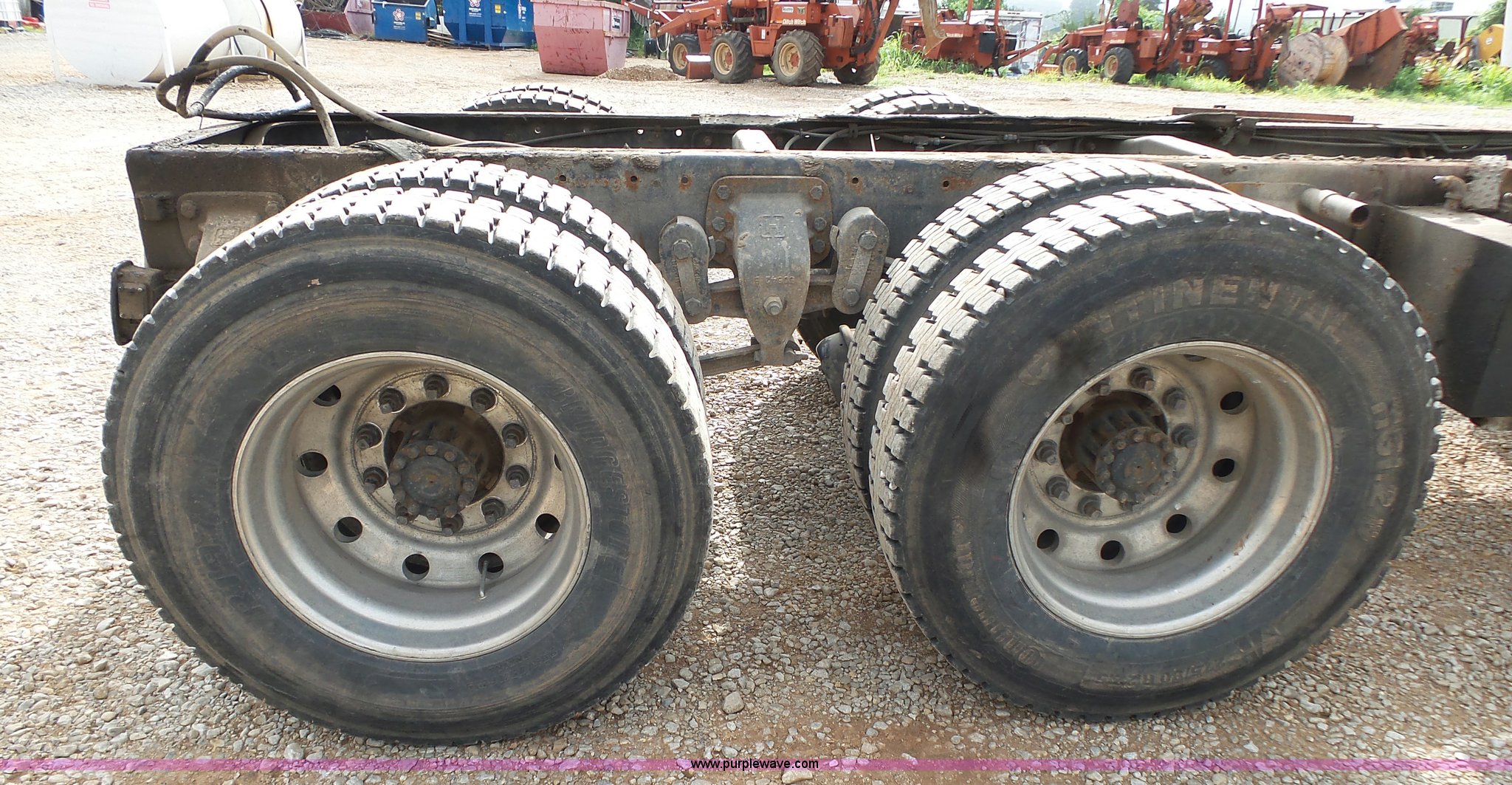 Purple Wave is selling a used Truck Chassis in Missouri. This item is a 1993 Ford LNT8000 semi truck with the following: 107,928 miles on odometer, Cummins ISC 8.3L L6 diesel engine, Tandem axle, Full screw, AC and heat, AM/FM, Air suspension seat, Front tow hooks, PTO, Single rear exhaust stack, Dual fuel tanks, Pintle hitch, 174" wheelbase, Spring suspension, Air brakes, 295/75R22.5 tires, GVWR 46,000 lbs, Front bumper damage, Unit# 201