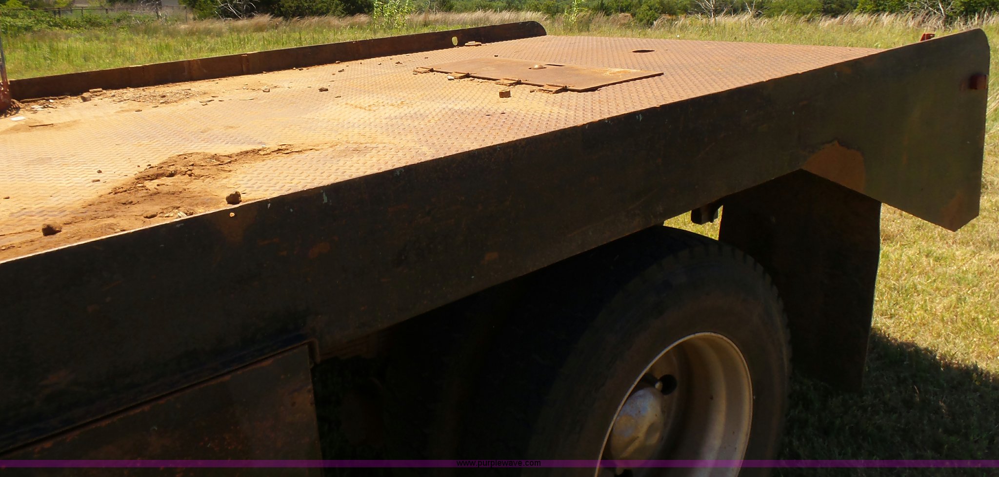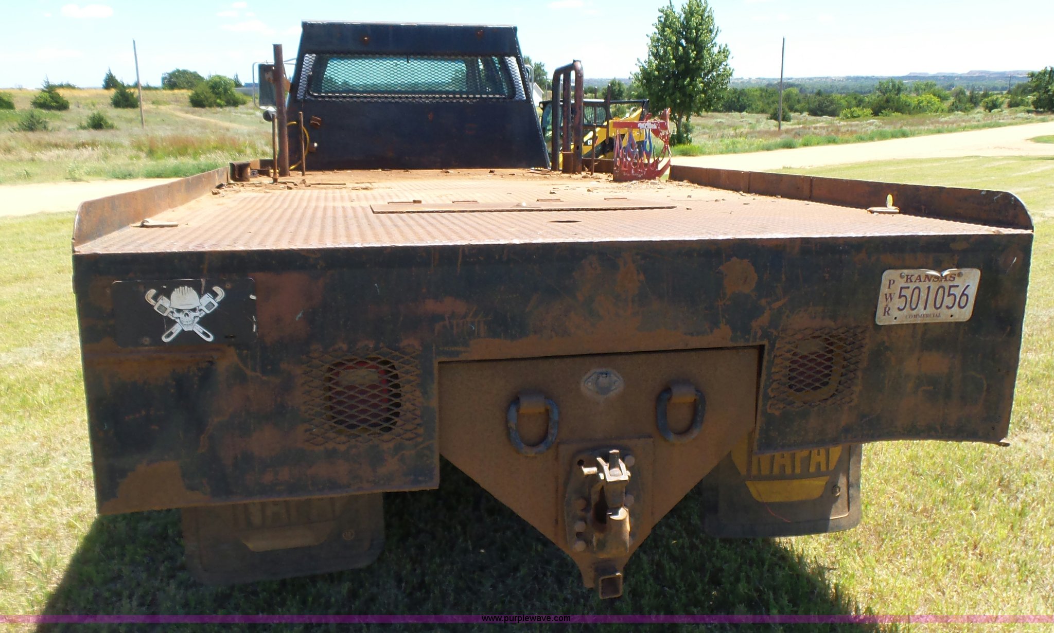 Purple Wave is selling a used Flat Bed Truck in Kansas. This item is a 2000 Ford F650 flatbed truck with the following: 219,226 miles on odometer, Cummins 5.9L L6 diesel engine, Seven speed manual transmission, Single axle, AC and heat, AM/FM/CD, 18'L x 96"W flatbed, Pintle hitch, Spring suspension, Air brakes, 11R22.5 tires, Oil leak, Non-operational AC