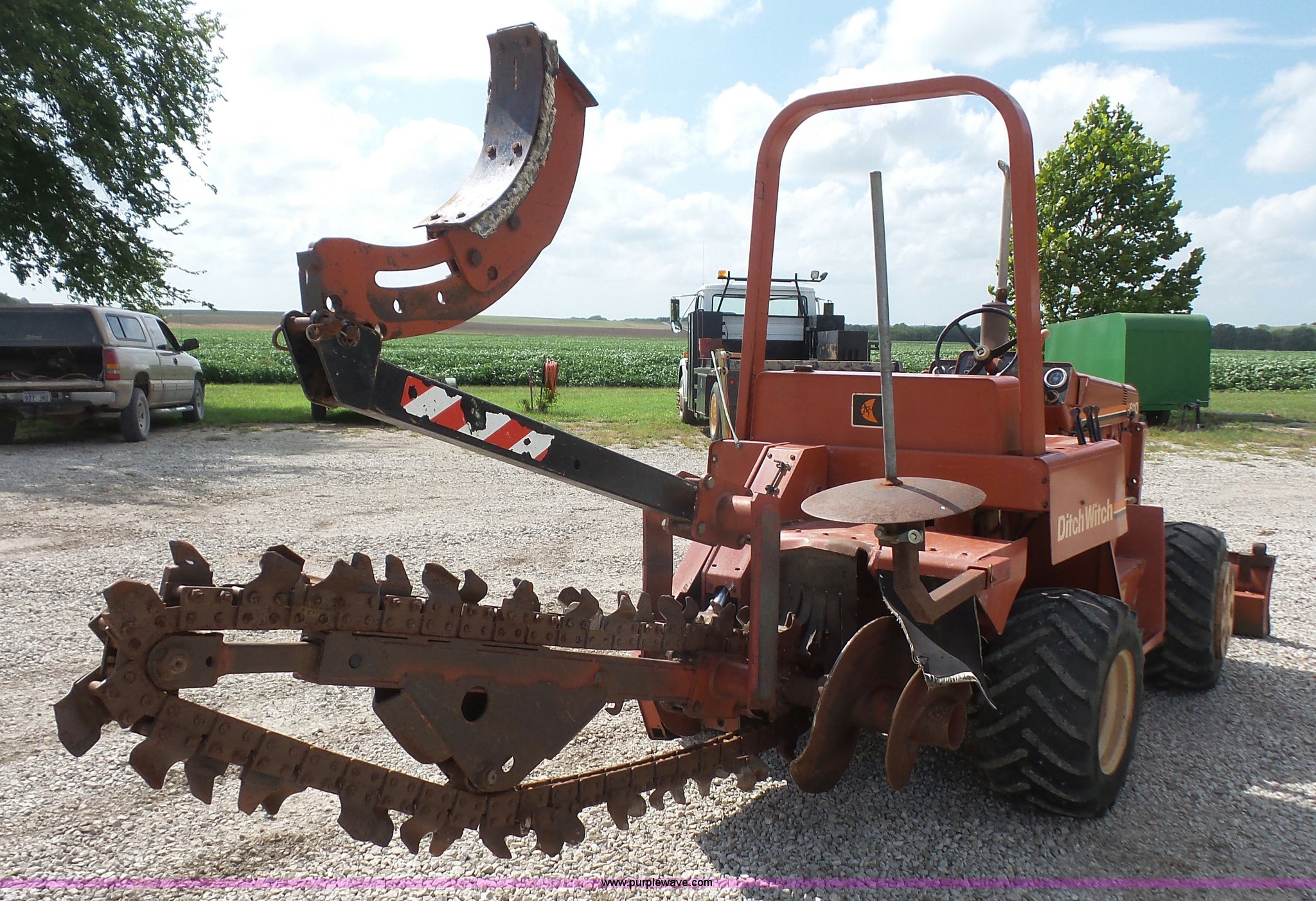 Purple Wave is selling a used Trencher or Rock Saw in Kansas. This item is a 1992 Ditch Witch 5110 trencher with the following: 2,102 hours on meter, Deutz F3L912 three cylinder diesel engine, 4F gears, Four wheel drive, OROPS, 72"W six way back fill blade, A411 trencher, Serial 2J0571, 6' digging depth, 8" cutting width, Crumber shoe, 31 x 15.50-15 tires, Serial 5J0178
