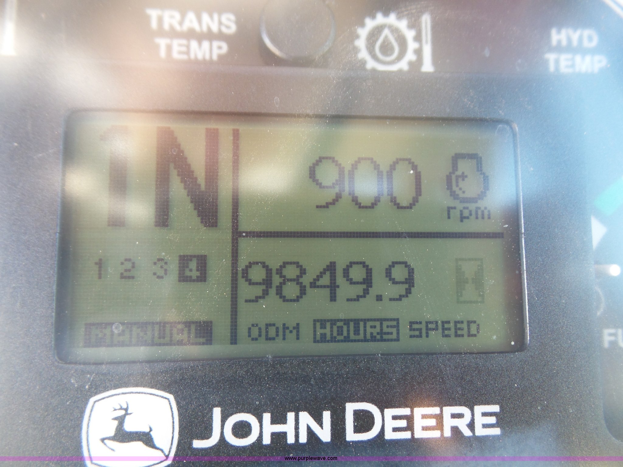Purple Wave is selling a used Wheel Loader in Kansas. This item is a 2005 John Deere 544J wheel loader with the following: 9,850 hours on meter, John Deere 6068H 6.8L six cylinder turbo diesel engine, 114 kW, Serial 6068H444839, Powershift transmission, 3F-3R gears, Enclosed cab, EROPS, AC and heat, AM/FM, Tilt steering wheel, Air suspension seat, Joystick bucket controls, Wipers, Front work lights, 105"W general purpose bucket, Bolt-on cutting edge, Hydraulic quick coupler, JRB 60"L pallet forks, Counterweights, Firestone 20.5-25 tires, 28,332 lbs. base operating weight, Serial DW544J2597611