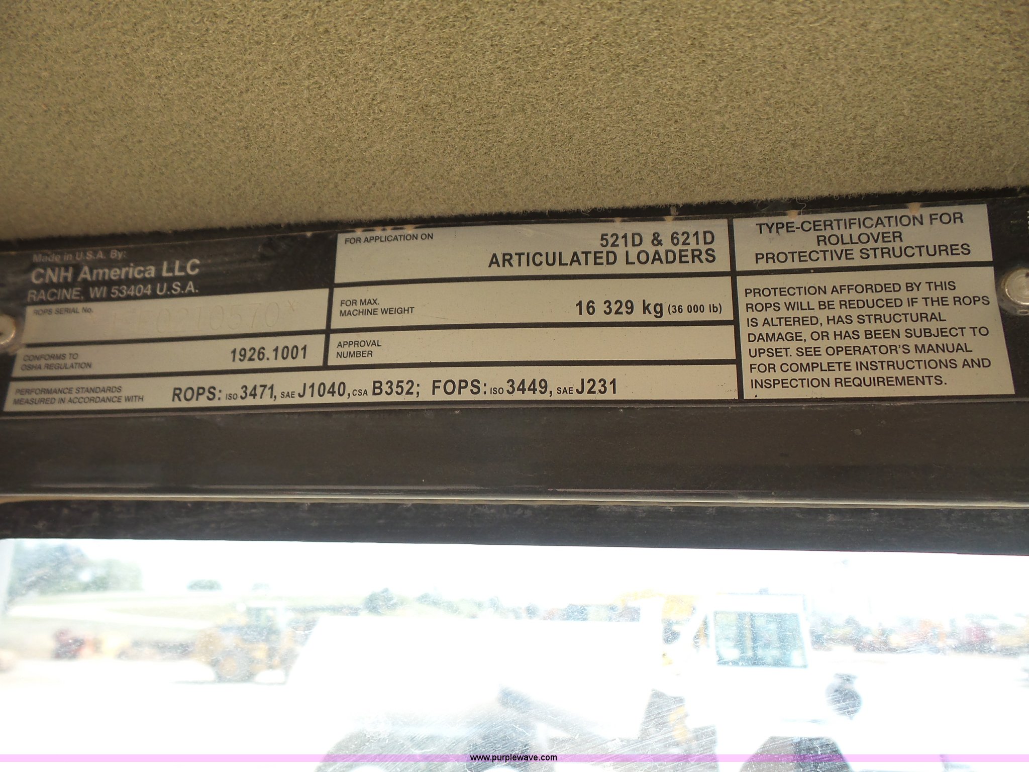 Purple Wave is selling a used Wheel Loader in Kansas. This item is a 2007 Case 621D XT wheel loader with the following: Case six cylinder diesel engine, Powershift transmission, 4F-4R gears, Enclosed cab, EROPS, AM/FM, Suspension seat, Joystick bucket controls, Front work lights, JRB 102"W general purpose bucket, 2.5 cu. yd. capacity, Bolt-on cutting edge, Hydraulic quick coupler, JRB 60"L forks, Front auxiliary hydraulics, 20.5-25 tires, Serial JEE0200517
