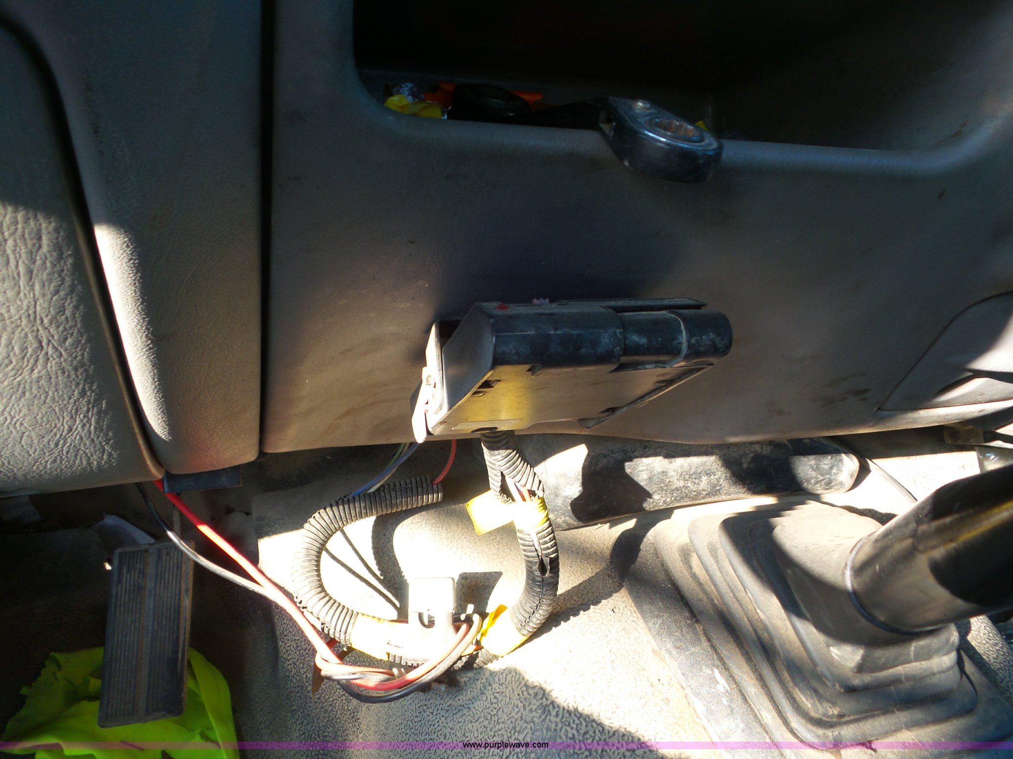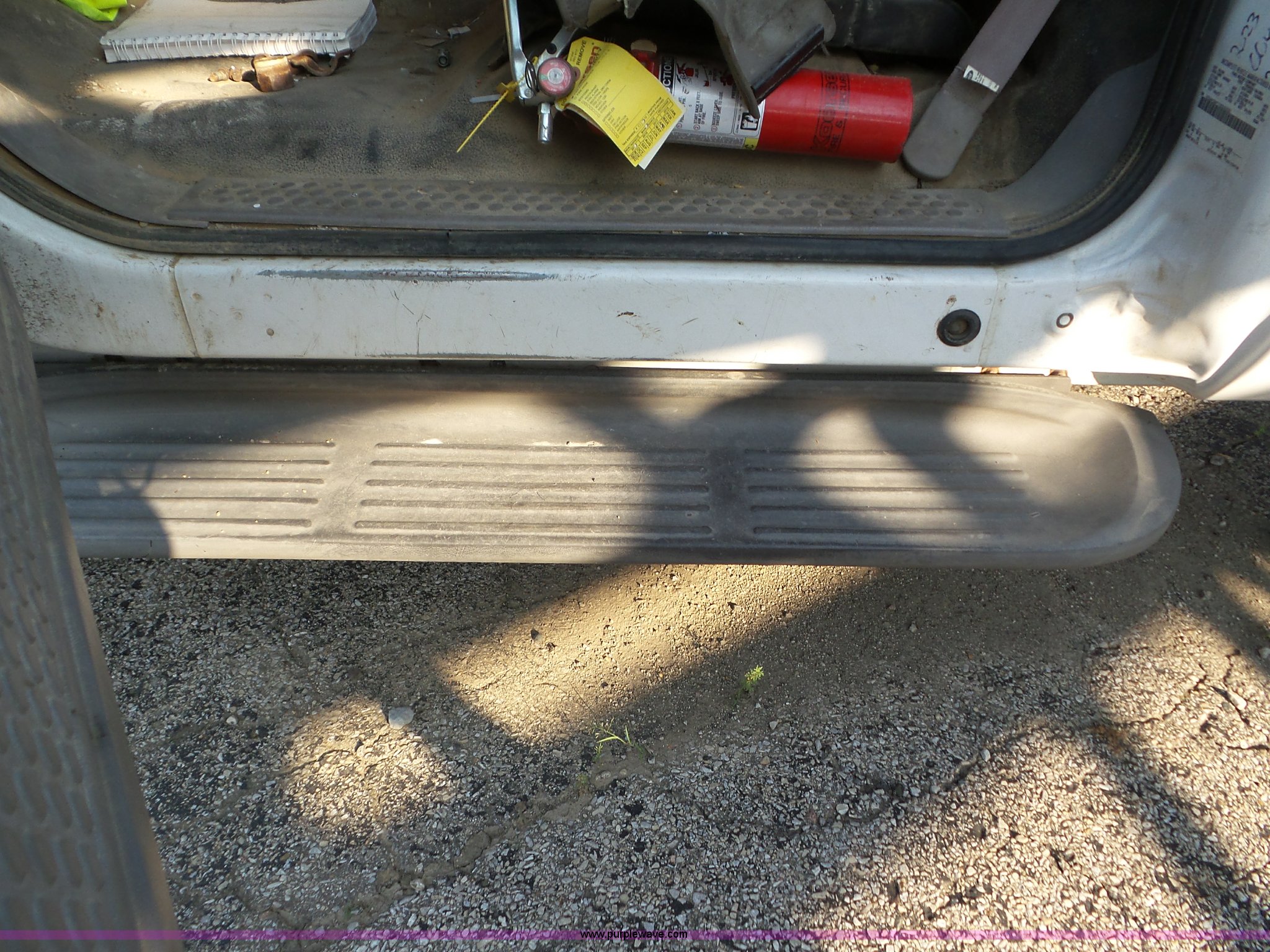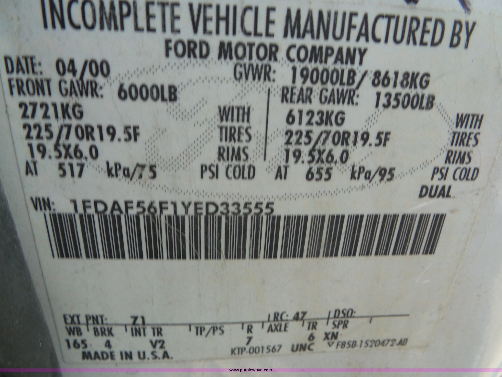 Purple Wave is selling a used Flat Bed Truck in Indiana. This item is a 2000 Ford F550 Super Duty flatbed truck with the following: 207,476 miles on odometer, 7.3L V8 OHV 16V diesel engine, Five speed manual transmission, AC and heat, Tilt, Cruise, AM/FM, Manual windows and locks, Vinyl interior, 12'L x 8'W flatbed, 3'H sideboards, Front tow hooks, Running boards, Receiver hitch, 225/70R19.5 tires, Windshield cracked, Seat torn, Tire flat, Front end damage, Non-operational vehicle, U-joint may need replaced, Unit# 2023