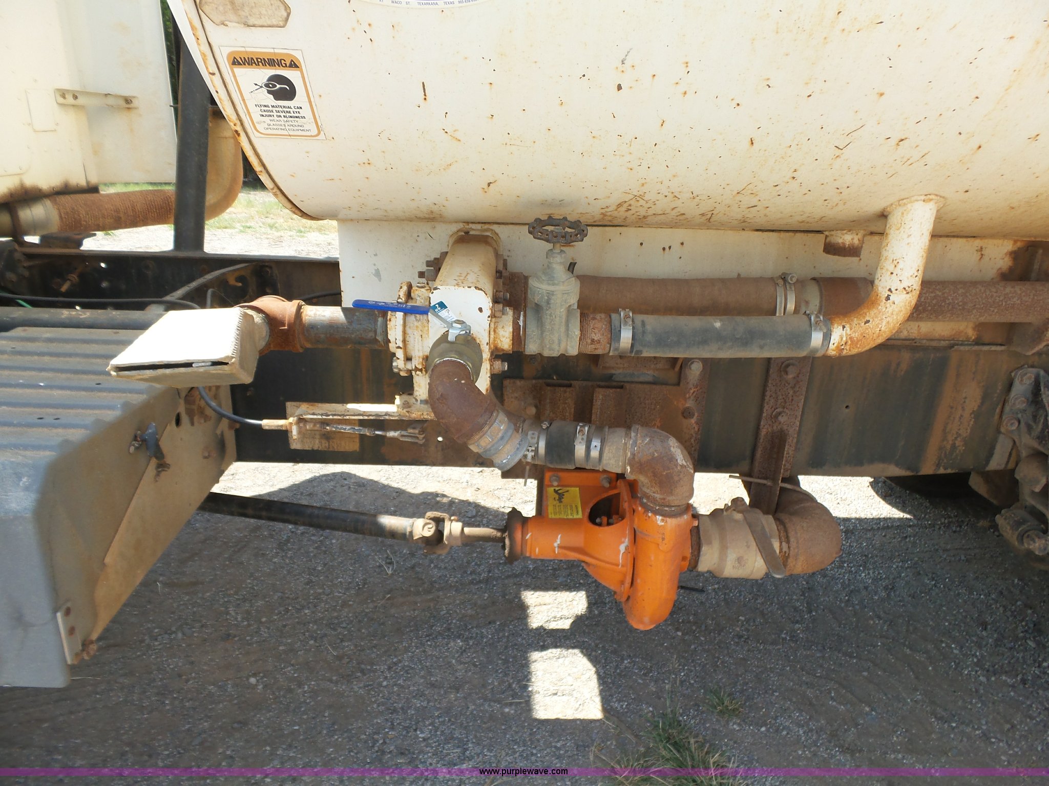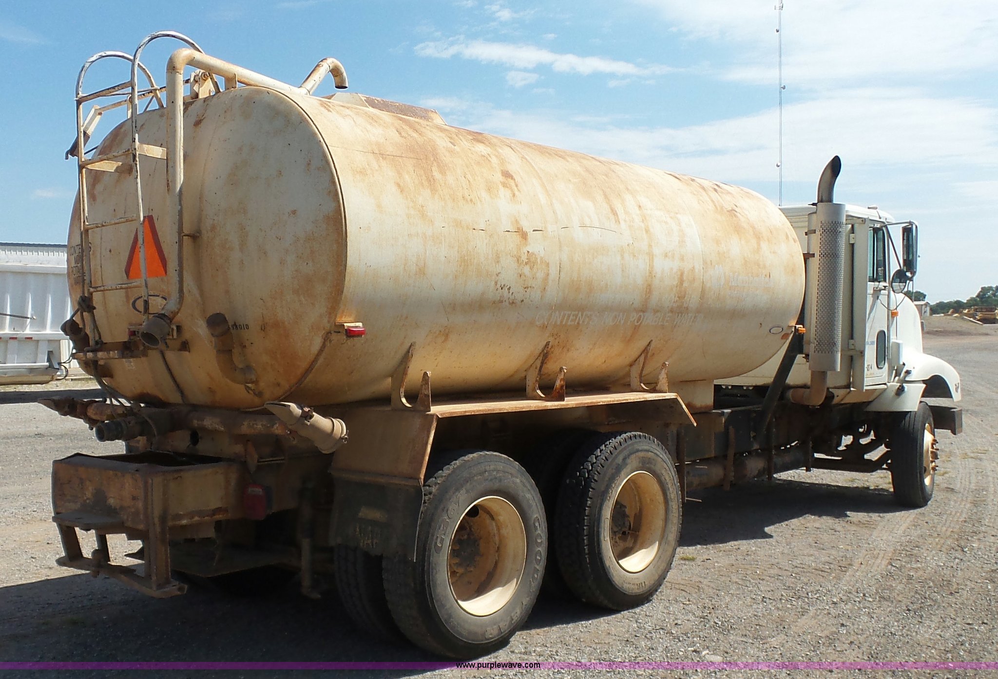 Purple Wave is selling a used Tank Truck or Water Truck in Oklahoma. This item is a 1995 International 9200 tank truck with the following: 550,538 miles on odometer, Detroit Diesel Series 60 11.1L L6 turbo diesel engine, 385 HP, International nine speed manual transmission, Tandem axle, Inter-axle differential lock, AC and heat, Cruise, Air suspension seat, Backup alarm, PTO, 4,000 gallon tank, Rear spray bar, Side and rear discharge, Air suspension, Air brakes, 11R22.5 tires, GVWR 52,000 lbs, Unit# 10-274