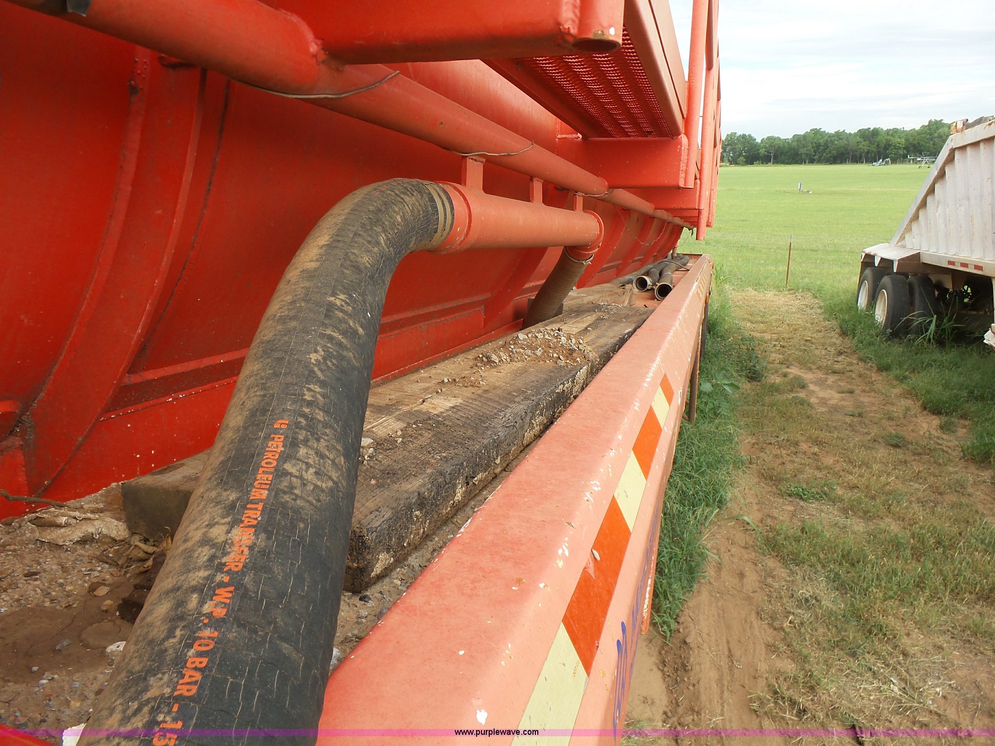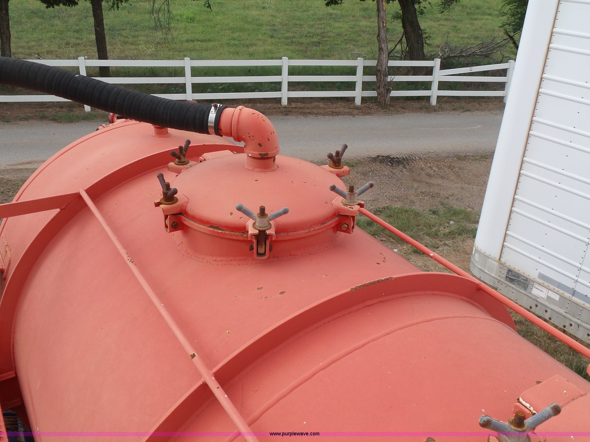 Purple Wave is selling a used Tank Trailer in Oklahoma. This item is a 2002 Dragon 6510GW vacuum trailer with the following: 42'L, Steel tank, Full length walkway, (2) 4" outlet valves, Single manway, 20"W, Fruitland RCF 500 pump, 2.5" outlet, (3) hoses, 1,400 RPM, Serial 504558ISFH, Under mounted toolbox, Dual leg landing gear, Fifth wheel plate, Tandem axle, Spring suspension, Air brakes, Steel wheels, 11R24.5 tires, Unit# 14-24