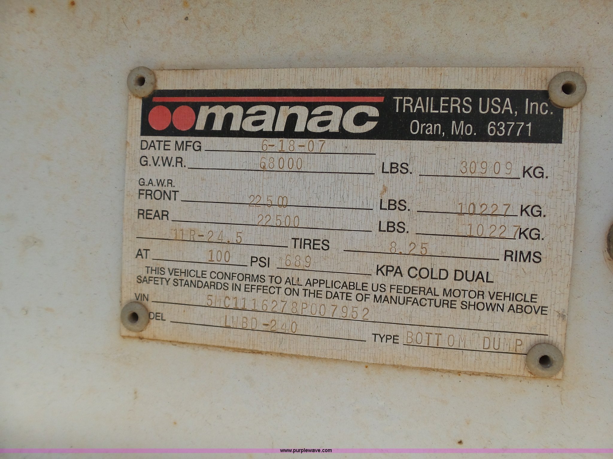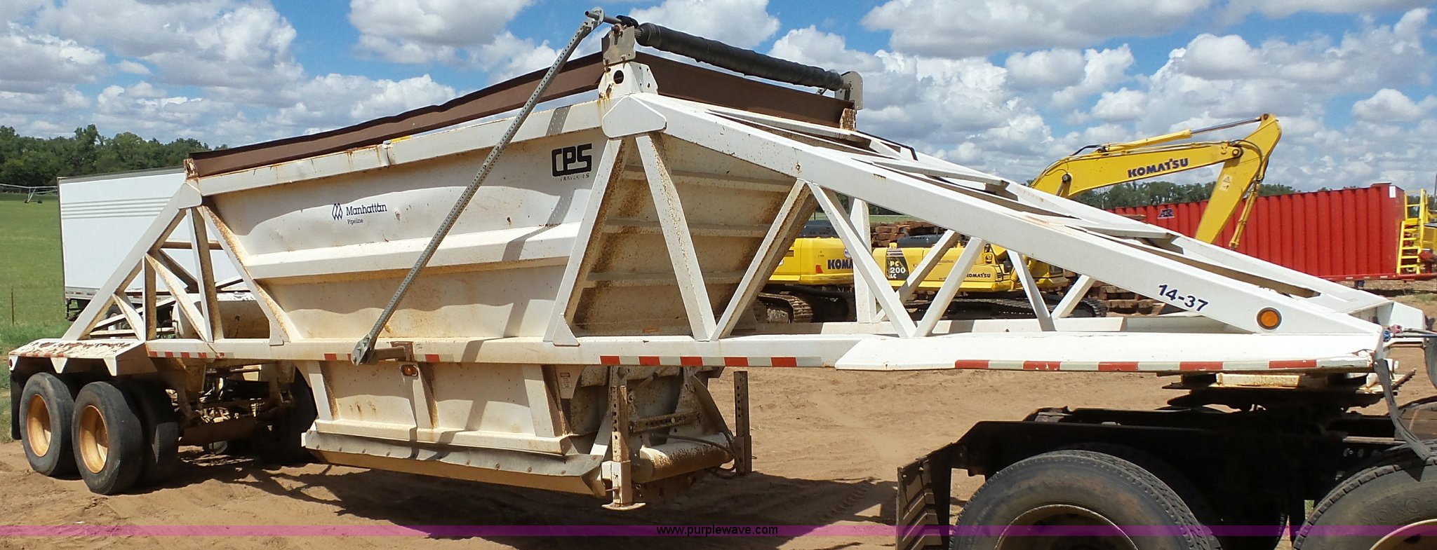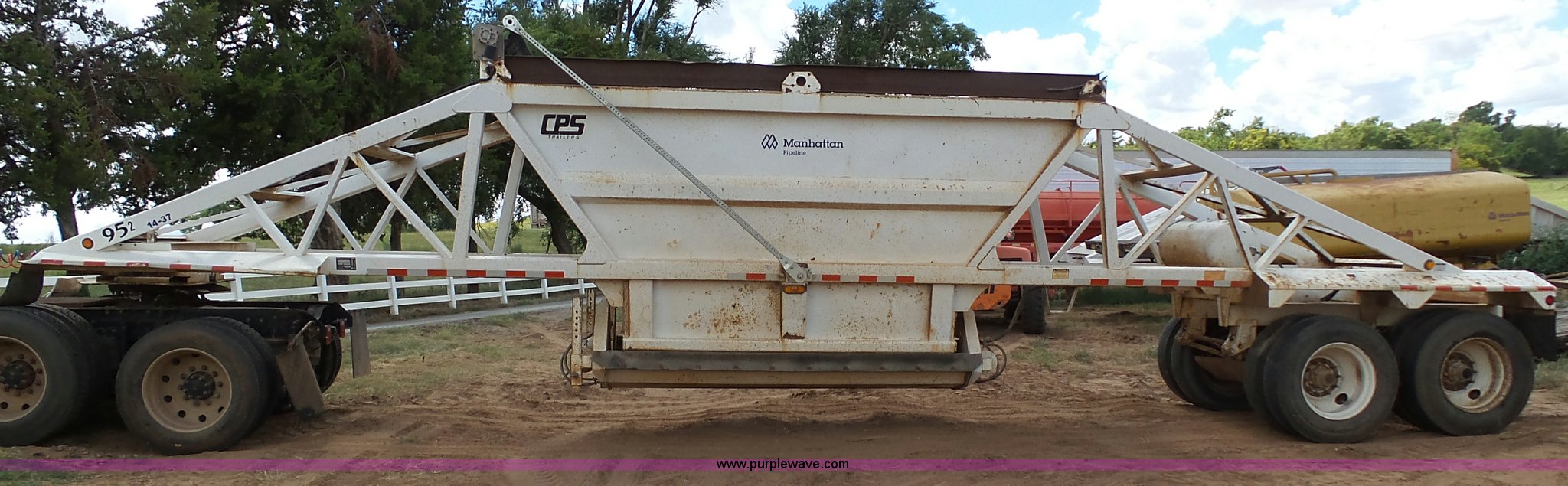 Purple Wave is selling a used Bottom Dump Trailer in Oklahoma. This item is a 2008 CPS LWBD-240 bottom dump trailer with the following: Steel construction, Air operated clamshell gate, Rear push block, Electric tarp, Dual leg landing gear, Fifth wheel plate, Tandem axle, Spring suspension, Air brakes, Steel wheels, 11R24.5 tires, GVWR 68,000 lbs, GAWR 22,500 lbs, Unit# 14-37