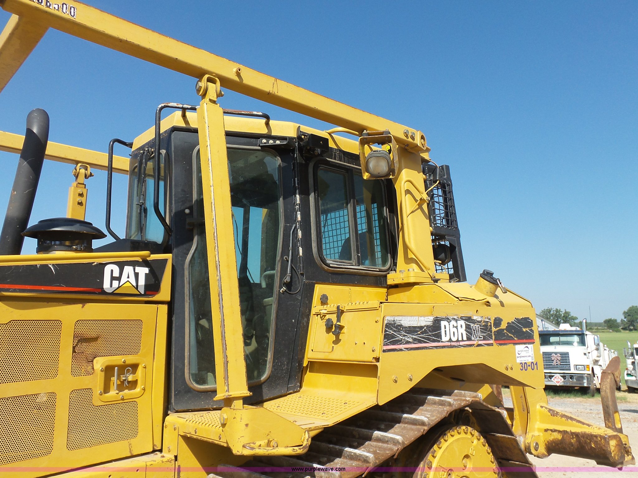 Purple Wave is selling a used Crawler Dozer in Oklahoma. This item is a 2006 Caterpillar D6R XL Series III dozer with the following: 8,509 hours on meter, Caterpillar C9 Acert six cylinder turbo diesel engine, Serial THX01413, Powershift transmission, 3F-3R gears, Enclosed cab, AC and heat, Suspension seat, Front and rear work lights, Front and rear wipers, Differential steering, Screen guards, Sweeps, 162" four-way straight dozer blade, Fixed angle, Caterpillar D6H ripper, (3) shanks, Seven bottom rollers, 24"W single grouser track pads, 44,270 lbs. base operating weight, Serial GJB, Unit# 30-01
