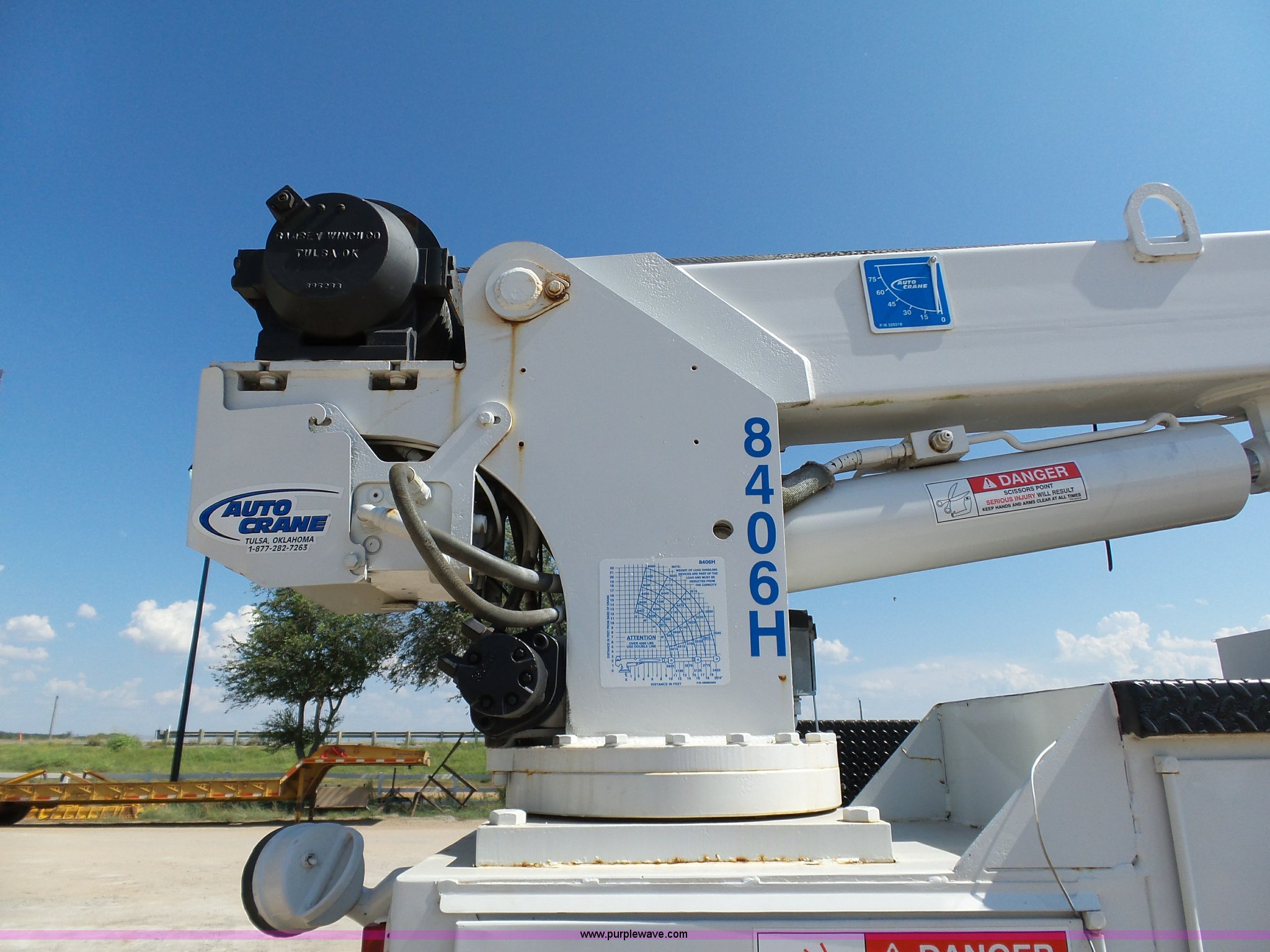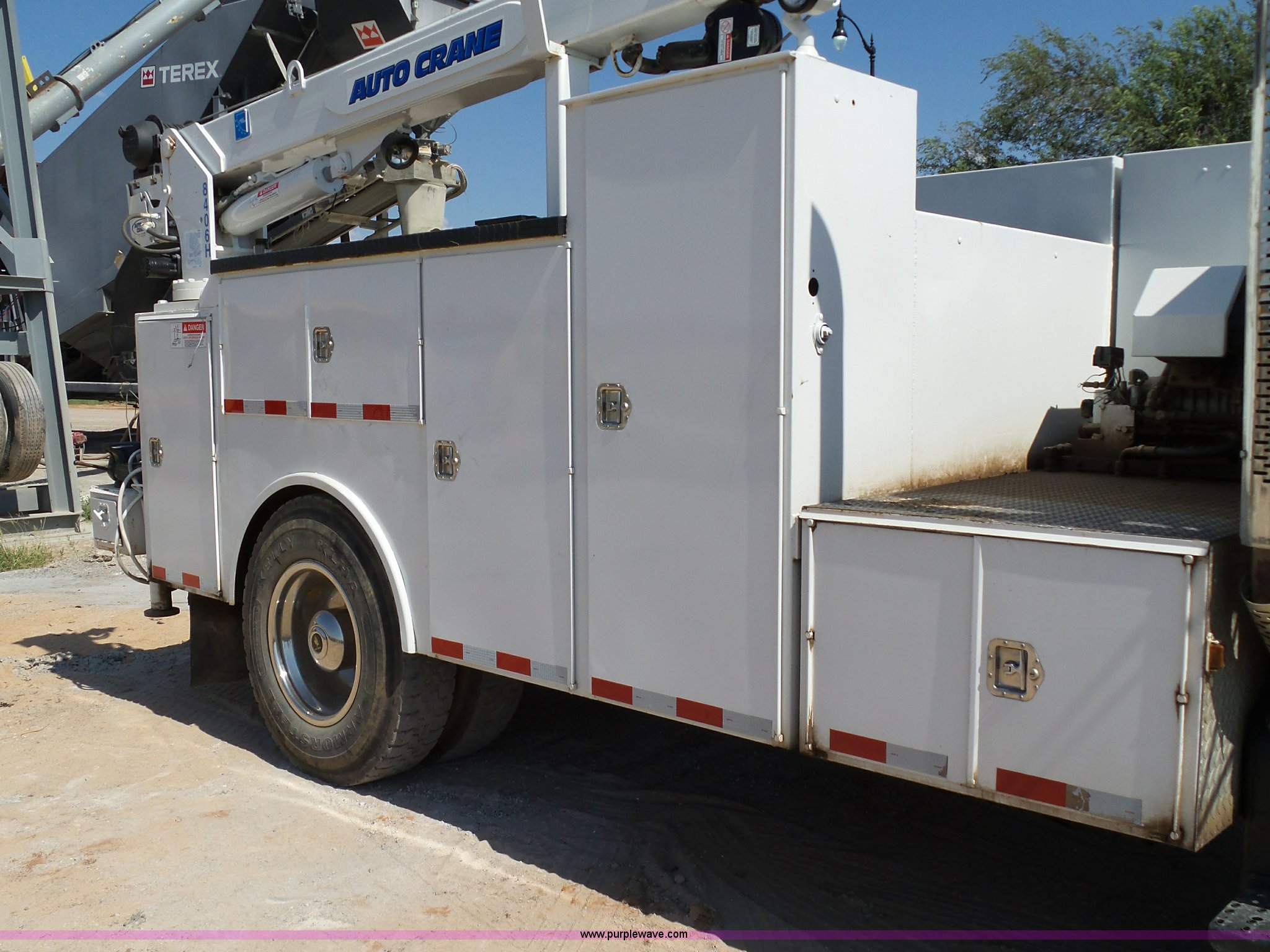 2003 Freightliner FL70 service truck. 144,696 miles on odometer, Cummins ISC 8.3L L6 turbo diesel engine 240 HP, Serial 46211364, Eaton Fuller nine speed manual transmission, Single axle, AC and heat, Cruise, AM/FM/cassette, Heated mirrors, Suspension seat, Front tow hooks, Block heater, PTO, Single exhaust stack, Reading CM8-134ADW service bed 16'L, Shelving, Slide-out drawers, Compartment lights, Work lights, Mounted vise, Hydraulic fluid reservoir, Auto Crane 8406H crane 22' boom length, 8,400 lbs max lift capacity, Remote control, Outriggers, Dual fuel tanks, Spring suspension, Air brakes, 190" wheelbase, Eagle Flight wheel covers, 11R22.5 tires, GVWR 33,000 lbs, FAWR 12,000 lbs, RAWR 21,000 lbs, Unit# 10-71. Oklahoma title. Title distribution may be delayed up to 14 days from verification of funds. 1FVABTBS13HK64255. Manhattan Pipeline - Open inspection Wednesday, September 14. 31200 I-40 Service Road. Hinton, OK 73047