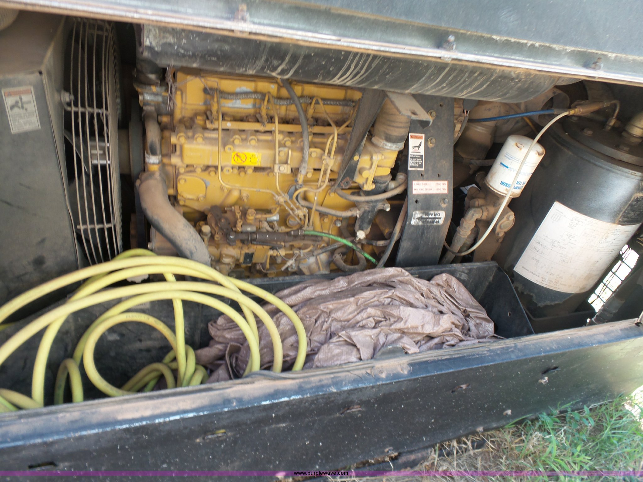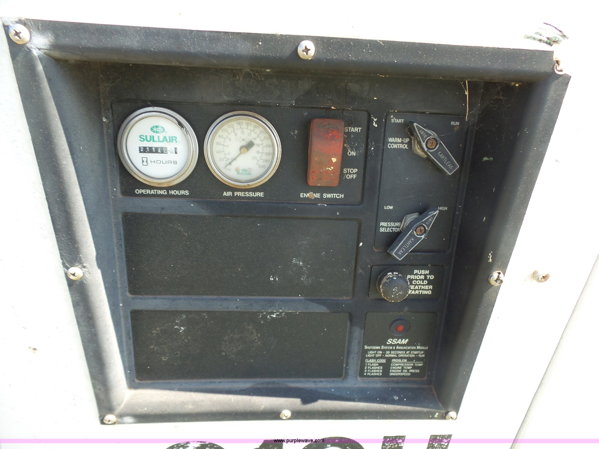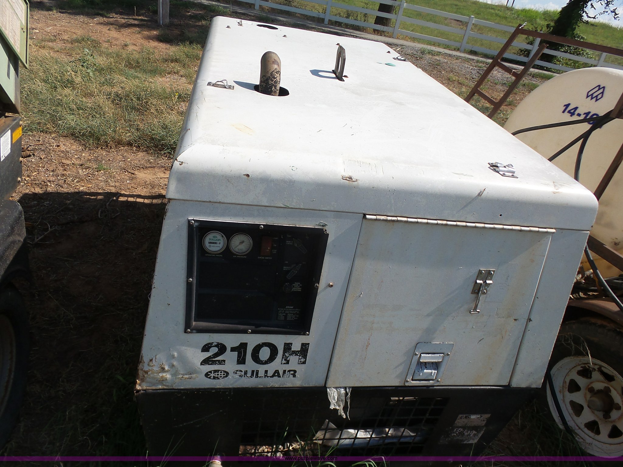 Purple Wave is selling a used Air Compressor in Oklahoma. This item is a 2004 Sullair 210H air compressor with the following: 2,114 hours on meter, Caterpillar four cylinder turbo diesel engine, 210 CFM, 150 psi, Serial 004-150625, Unit# 99-07