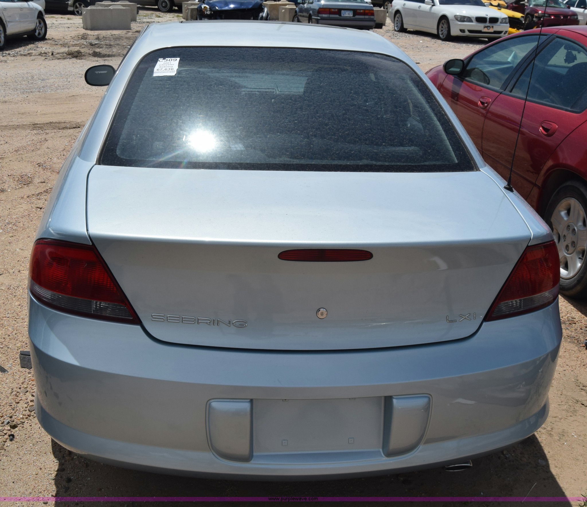 Purple Wave is selling a used Passenger Vehicle in Kansas. This item is a 2001 Chrysler Sebring with the following: Unknown miles on odometer, 2.7L V6 DOHC 24V gas engine, Automatic transmission, AC and heat, Tilt, Cruise, AM/FM/CD, Power windows, locks, and mirrors, Vinyl interior, Sunroof, Fog lights, 205/60R16 tires, Doors locked, Case# 16C040896