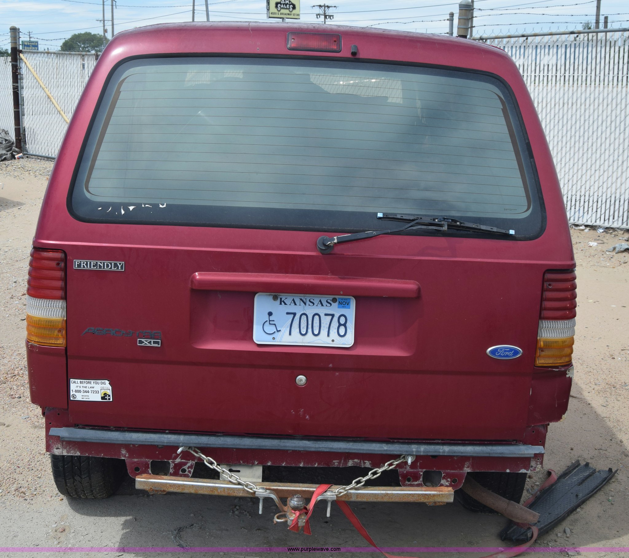 Purple Wave is selling a used Passenger Vehicle in Kansas. This item is a 1994 Ford Aerostar van with the following: Unknown miles on odometer, 3.0L V6 OHV 12V gas engine, Automatic transmission, AC and heat, Cruise, Manual windows and locks, Cloth interior, Receiver hitch, 215/70R14 tires, Front end damage, Stereo removed, Hood will not open, Cracked windshield, Case# 16C041644