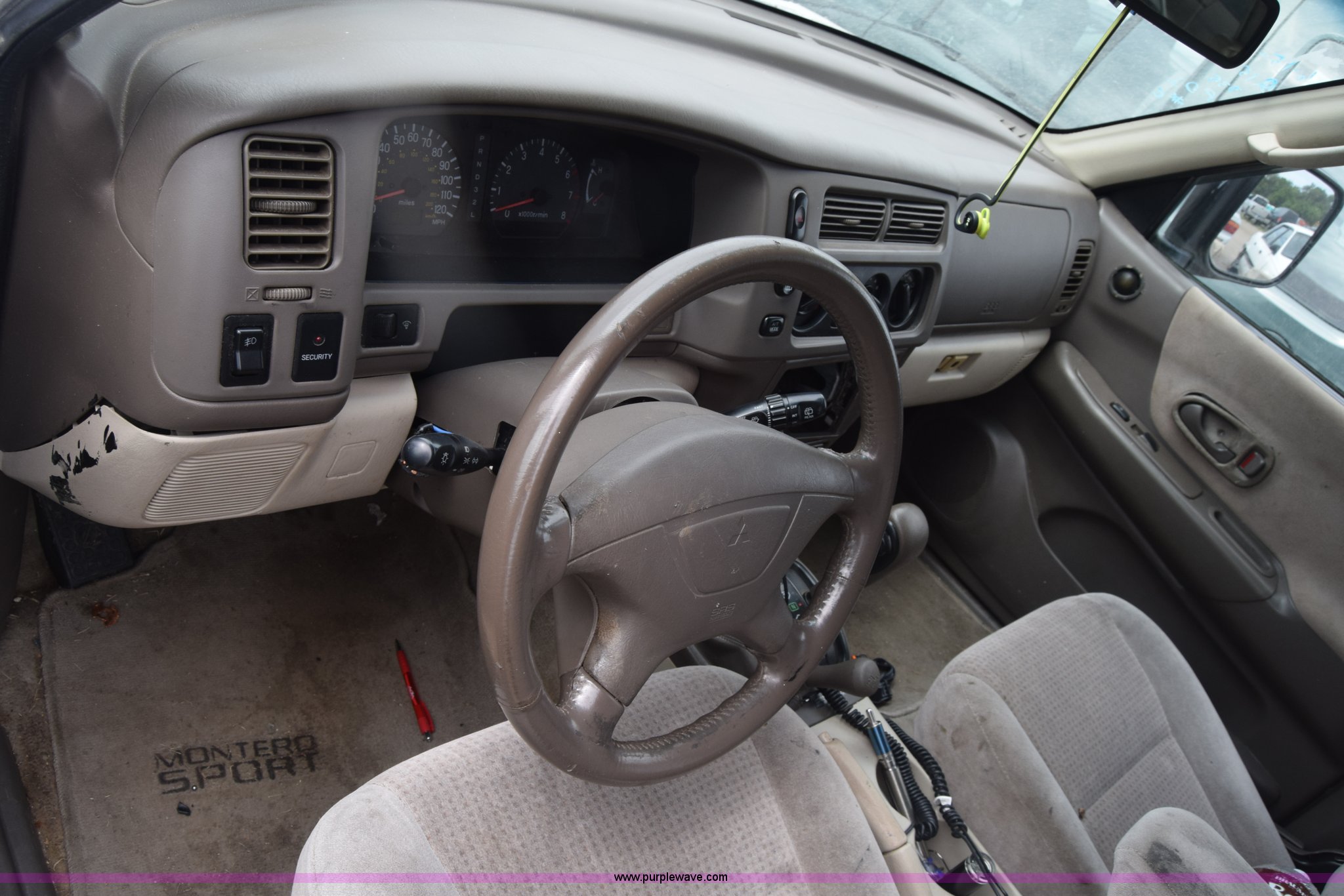 Purple Wave is selling a used Passenger Vehicle in Kansas. This item is a 2000 Mitsubishi Montero Sport SUV with the following: Unknown miles on odometer, 3.0L V6 SOHC 24V gas engine, Automatic transmission, Four wheel drive, AC and heat, Tilt, Cruise, Power windows, locks, and mirrors, Cloth interior, Fog lights, Running boards, Receiver hitch, Front bumper damage, Stereo removed, Hood will not open, Case# 16C030835