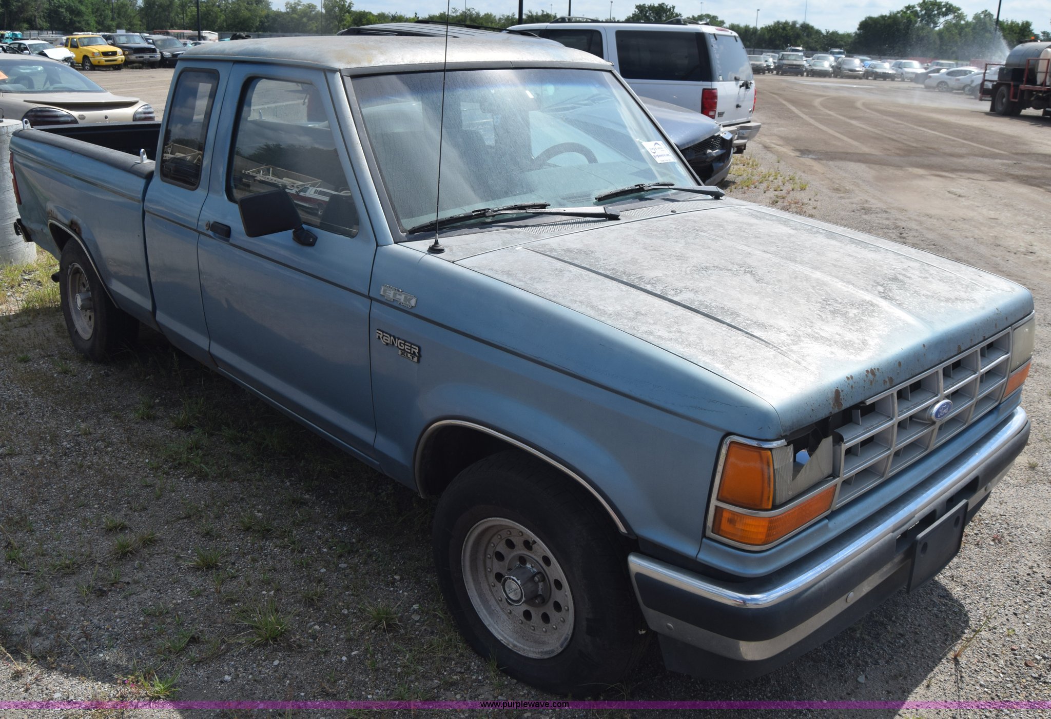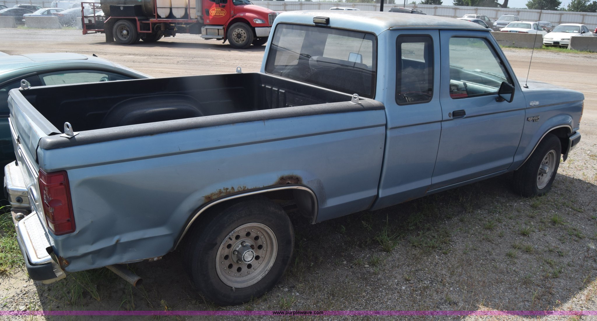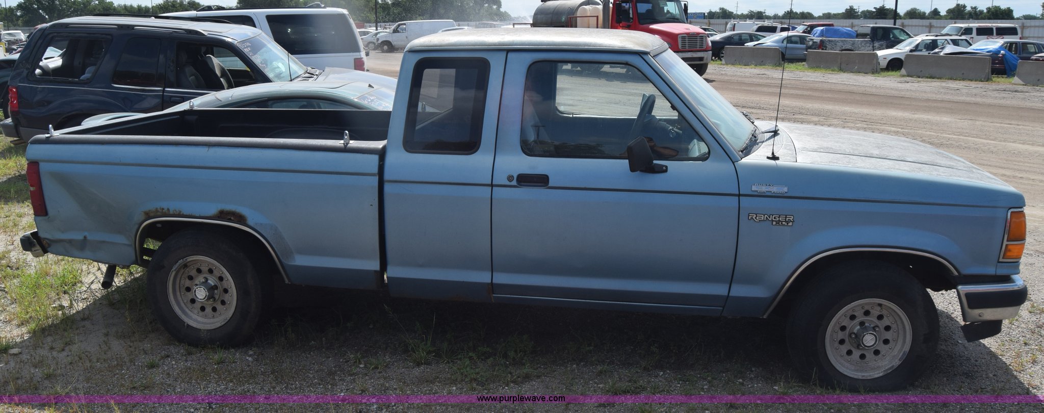 Purple Wave is selling a used Compact Pickup or Van in Kansas. This item is a 1990 Ford Ranger SuperCab pickup truck with the following: 62,828 miles on odometer, 2.9L V6 OHV 12V gas engine, Five speed manual transmission, AC and heat, Tilt, Cruise, Manual windows and locks, Cloth interior, 215/75R14 tires, Rust, Paint faded, Stereo removed, Case# 16C038258