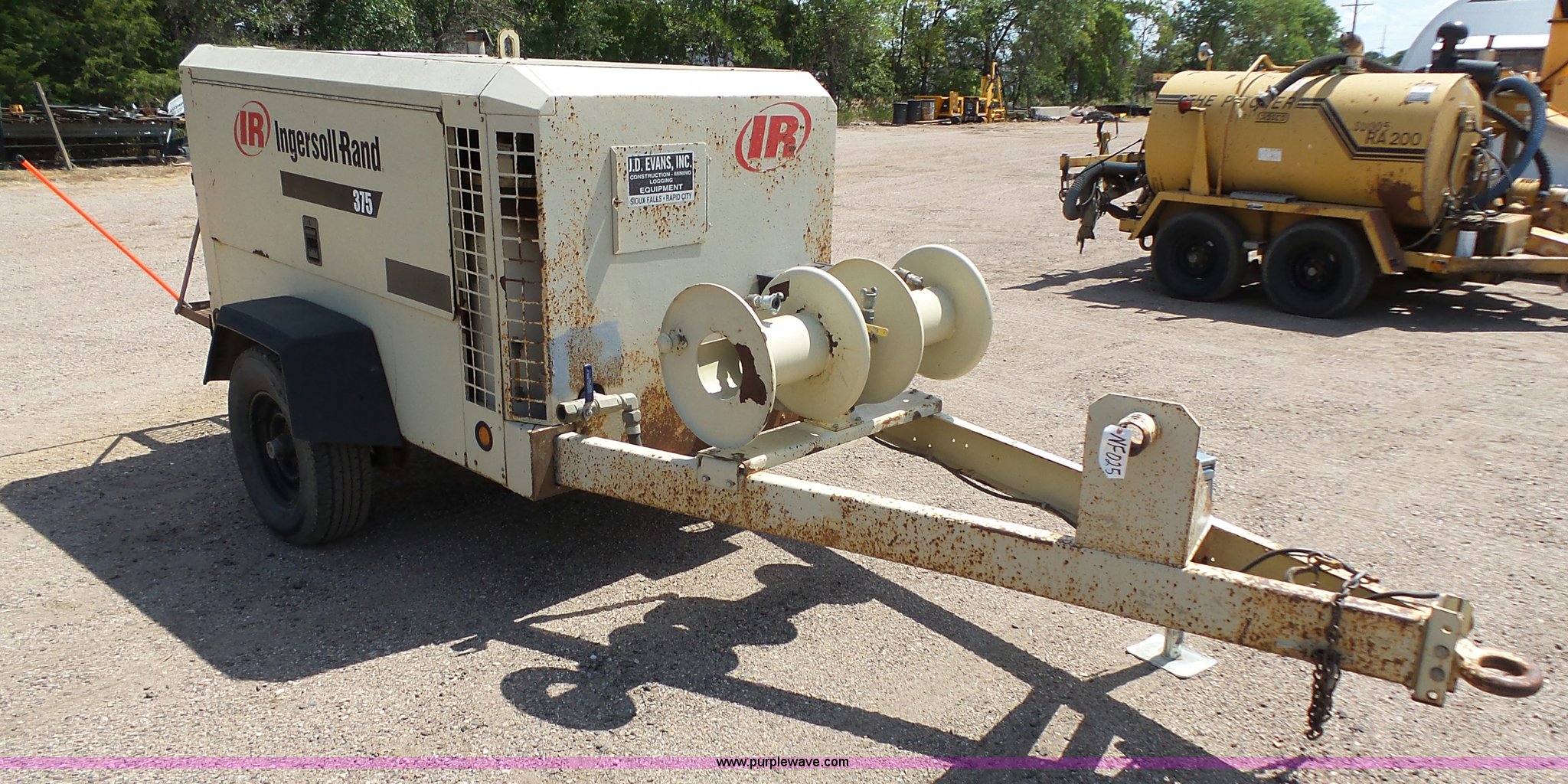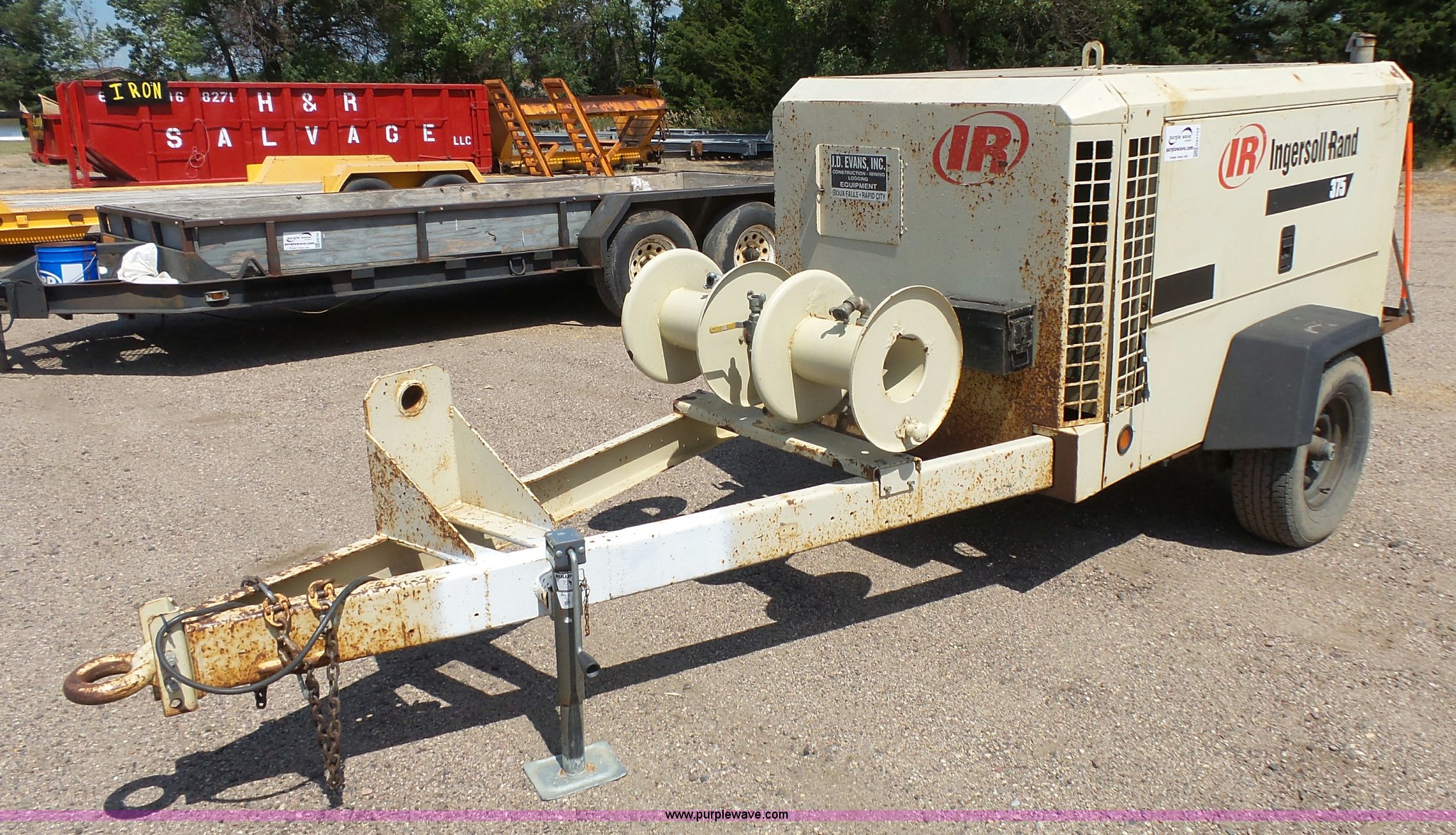 Purple Wave is selling a used Air Compressor in South Dakota. This item is a 1998 Ingersoll Rand 375 air compressor with the following: 1,520 hours on meter, John Deere 4045 4.5L four cylinder turbo diesel engine, 375 cfm, Pintle hitch, 225/75R15 tires, Equip ID NF025, Serial 291861U6I414, Asset# 330072