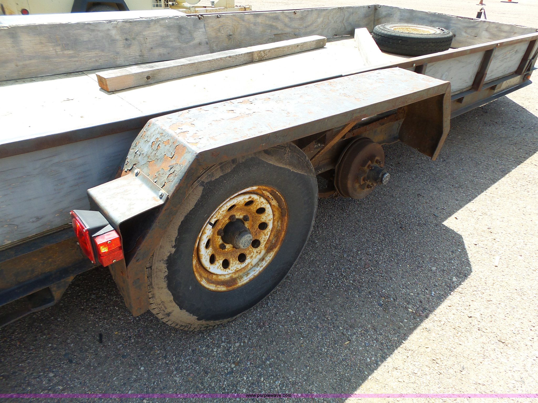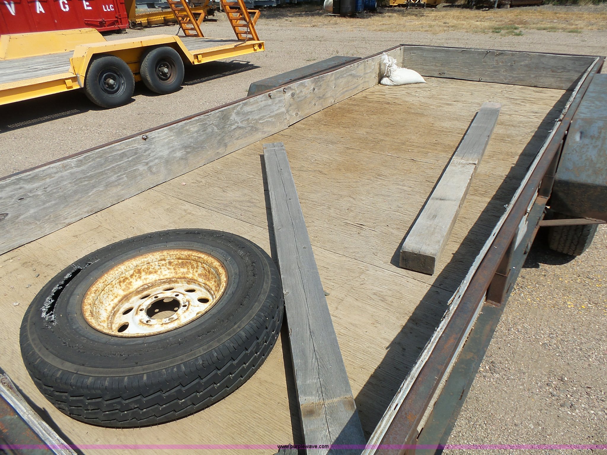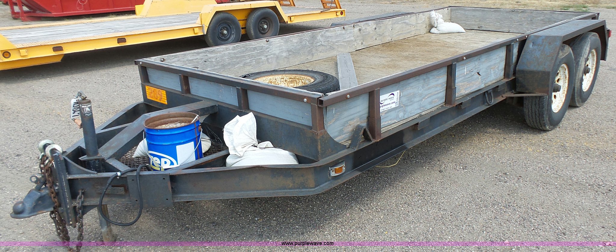 Purple Wave is selling a used Equip. Trailer in South Dakota. This item is a 1988 shop built equipment trailer with the following: 22'L x 8'W, Wood deck, Damaged, Bumper pull, Spring suspension, Electric brakes, Tandem axles, LT235/85R16 tires, Front axle bent, One tire needs replaced, Equip ID HJ067, Asset# 10137771