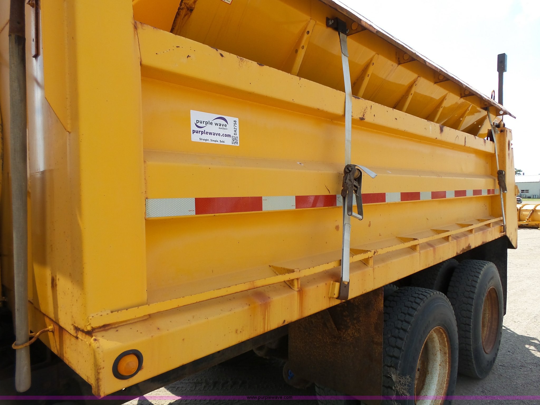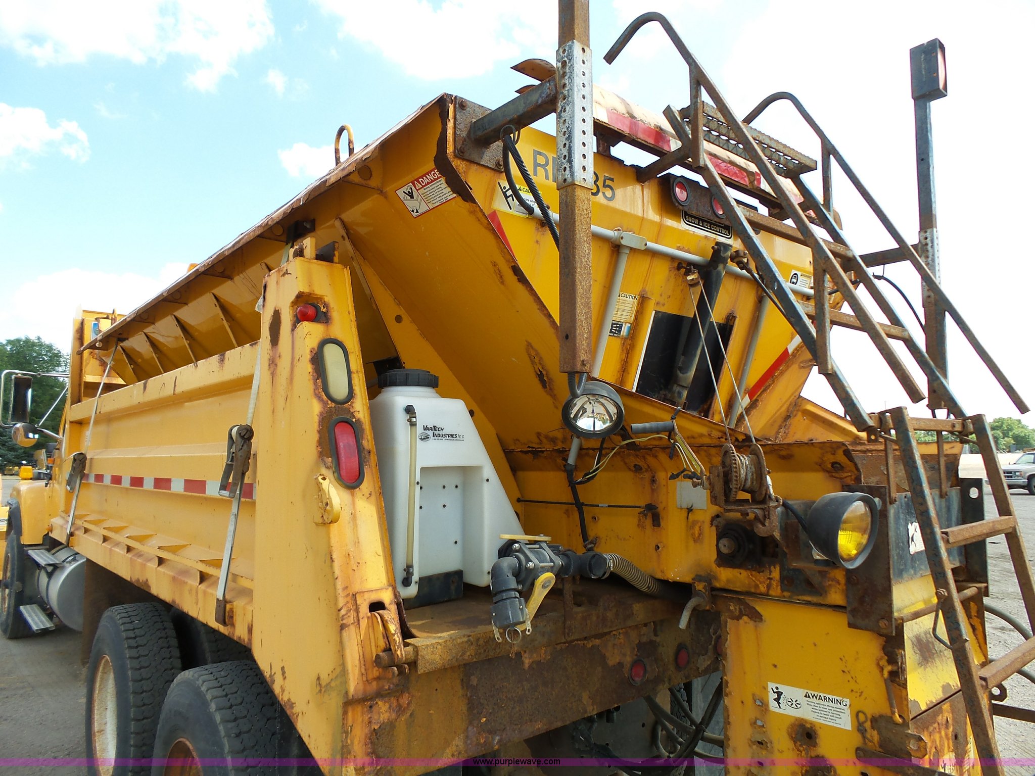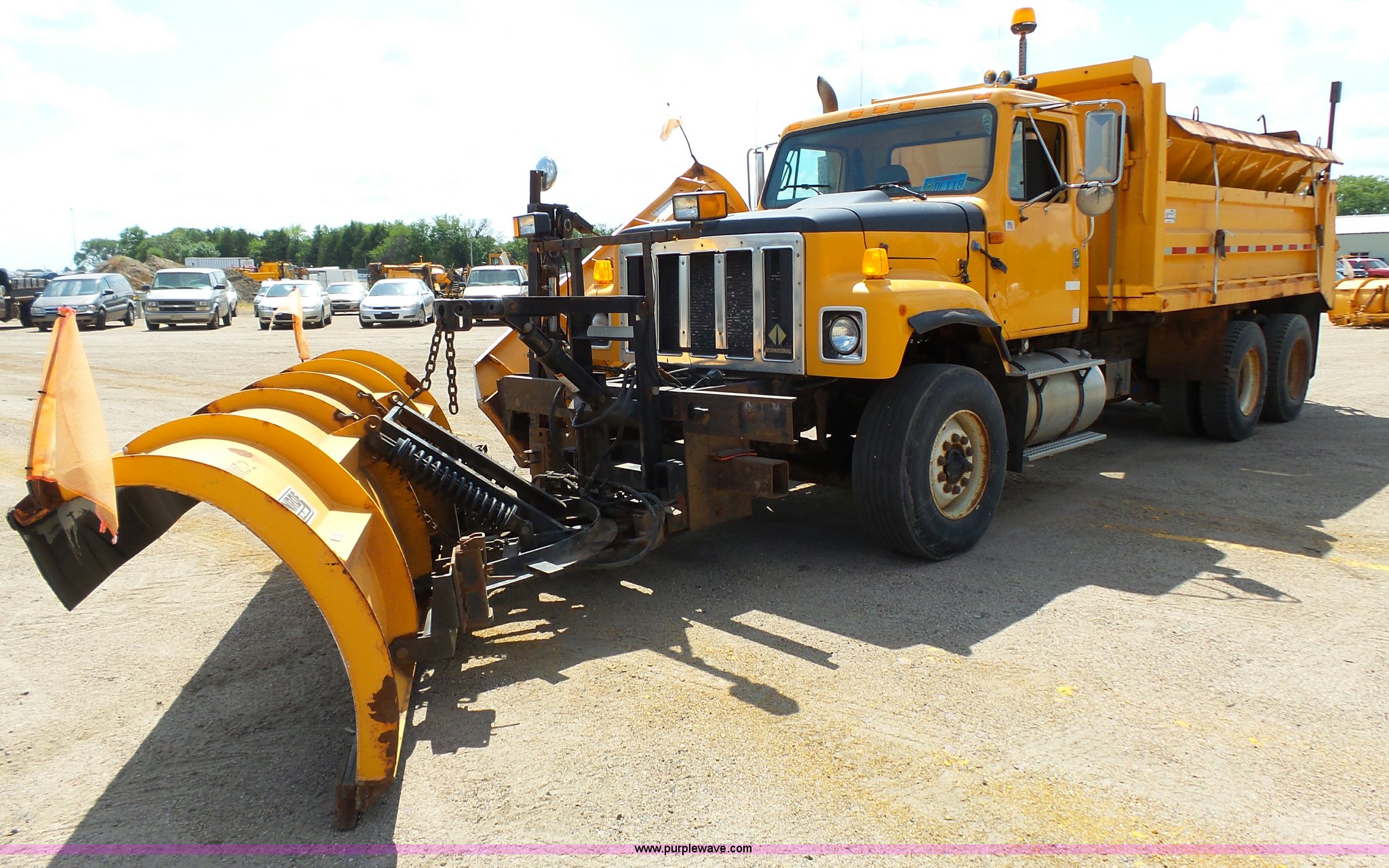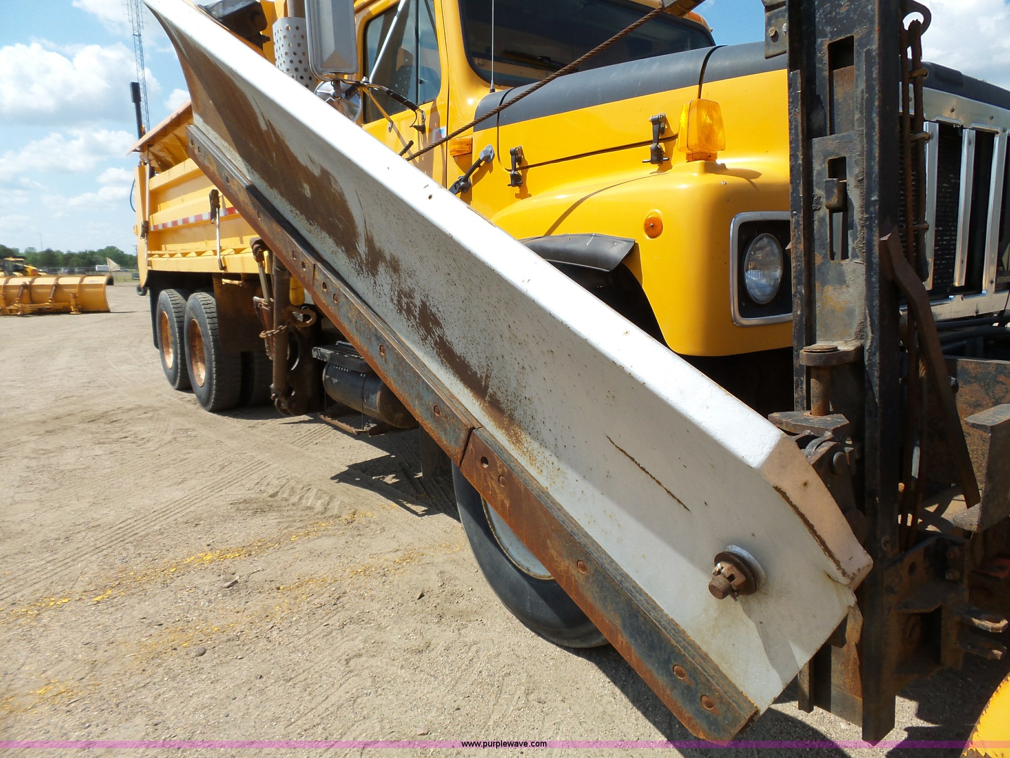 Purple Wave is selling a used Construction Dump Truck in South Dakota. This item is a 1996 International 2554 dump truck with the following: 118,641 miles on odometer, 5,406 hours on meter, International DT530 8.7L L6 turbo diesel engine, Eight speed manual transmission, Tandem axle, Heat, AM/FM, Air suspension seat, Plow and spreader controls, Front mount PTO, 15'L x 8'W steel dump bed, 30.5" side height, Monroe plow, 12'W, Equip ID RD152, Monroe leveling wing, 10'W, Worn, Equip ID RR322, Monroe MSV168-84 spreader, 15'L x 8'W, Equip ID RN285, Asset# 344349, Single fuel tank, Spring over walking beam suspension, Air brakes, 210" wheelbase, 385/65R22.5 front tires, 11R22.5 rear tires, Rust, Headlights work intermittently, Coolant leaks, Fuel shut-off issues, Hydraulic leaks, Weak batteries, Air leaks, Electrical issues, Frog on plow bent, Equip ID DL118, Asset# 320040