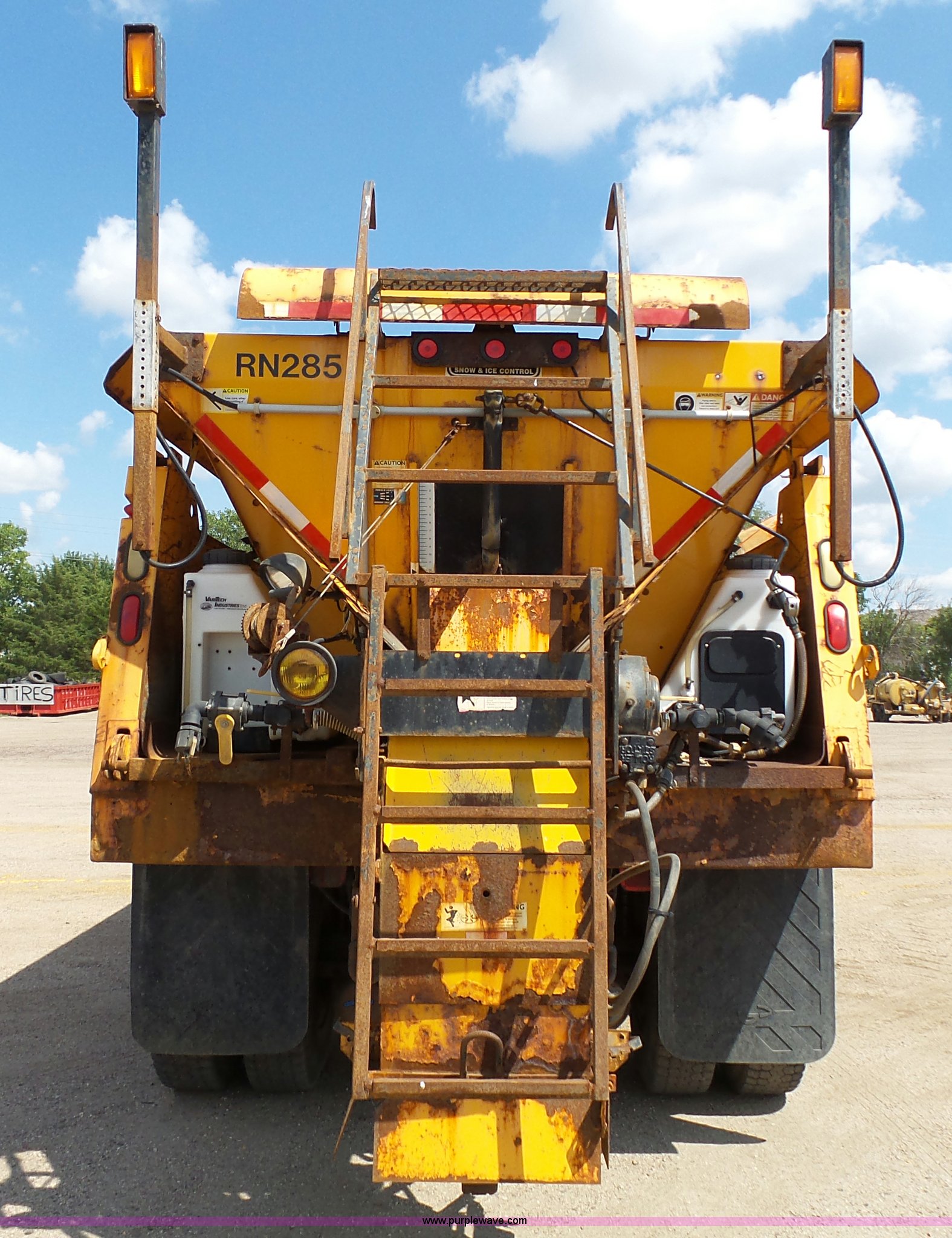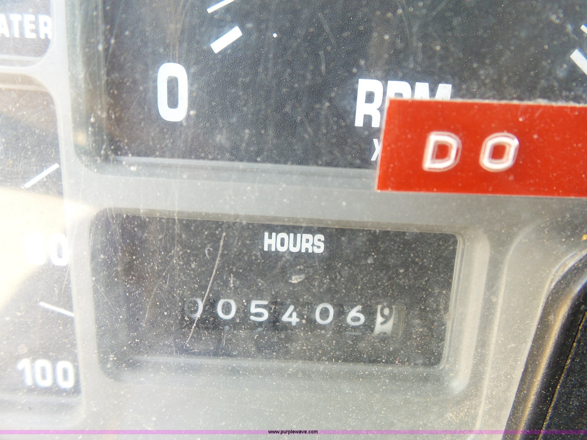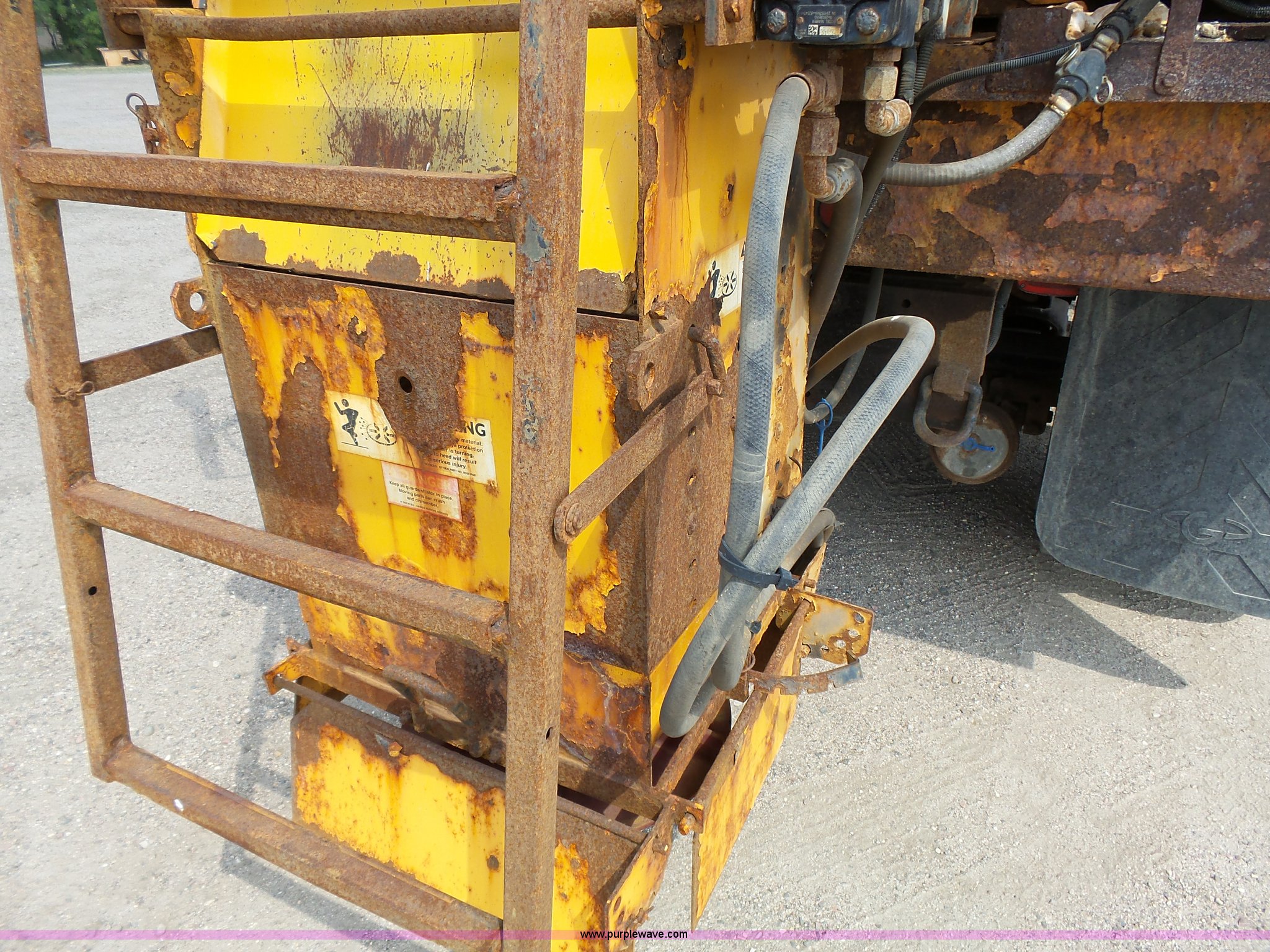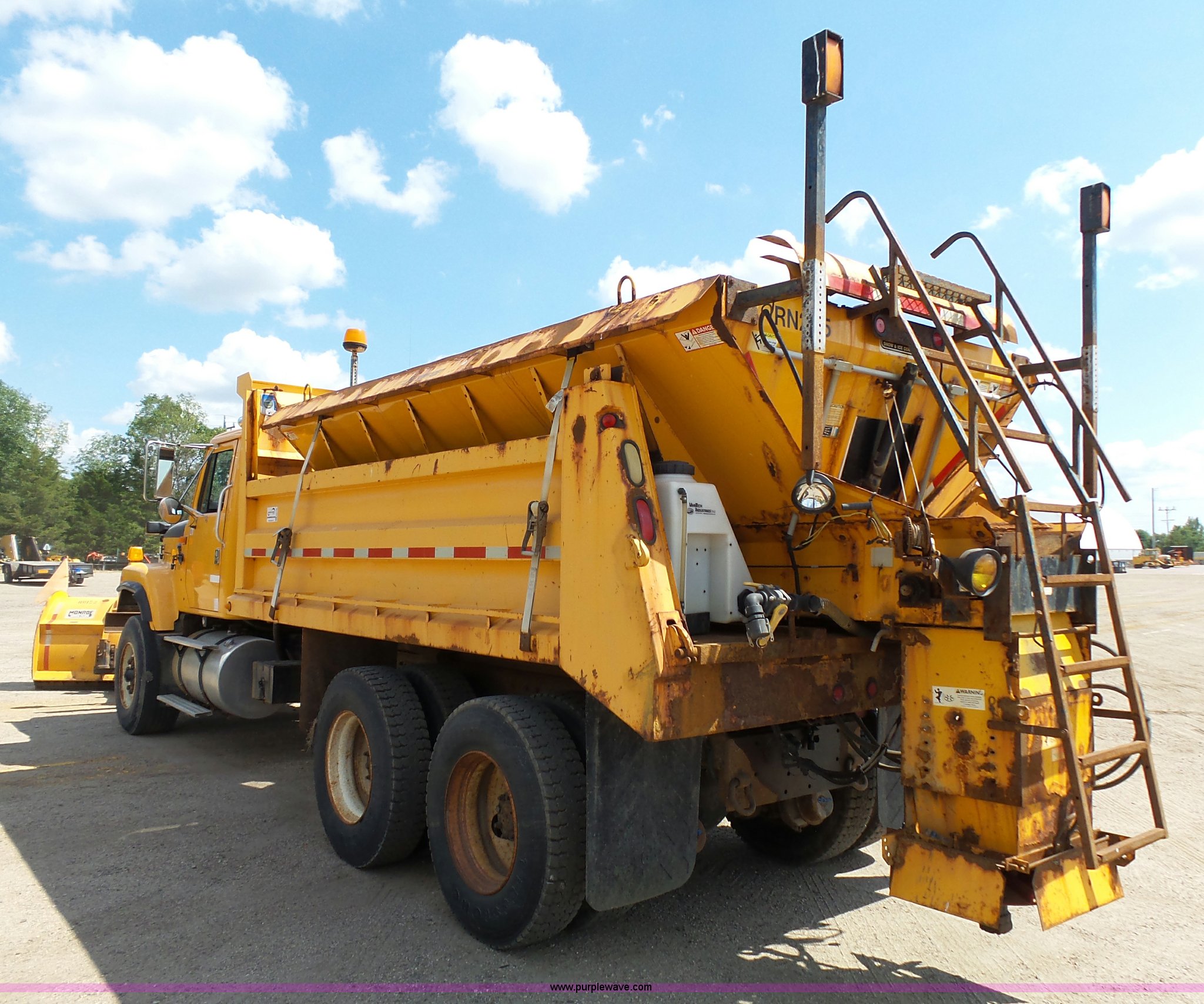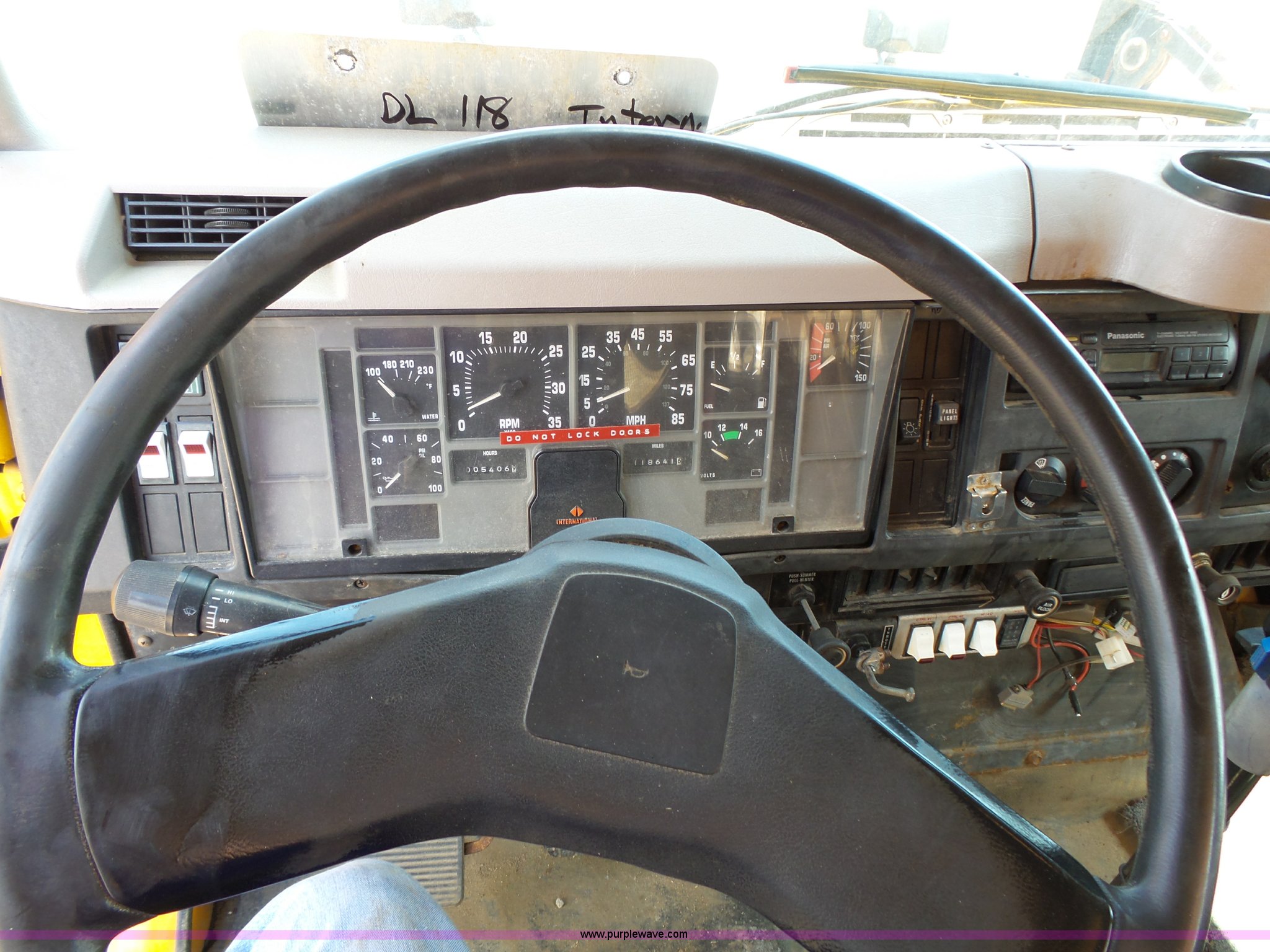 Purple Wave is selling a used Construction Dump Truck in South Dakota. This item is a 1996 International 2554 dump truck with the following: 118,641 miles on odometer, 5,406 hours on meter, International DT530 8.7L L6 turbo diesel engine, Eight speed manual transmission, Tandem axle, Heat, AM/FM, Air suspension seat, Plow and spreader controls, Front mount PTO, 15'L x 8'W steel dump bed, 30.5" side height, Monroe plow, 12'W, Equip ID RD152, Monroe leveling wing, 10'W, Worn, Equip ID RR322, Monroe MSV168-84 spreader, 15'L x 8'W, Equip ID RN285, Asset# 344349, Single fuel tank, Spring over walking beam suspension, Air brakes, 210" wheelbase, 385/65R22.5 front tires, 11R22.5 rear tires, Rust, Headlights work intermittently, Coolant leaks, Fuel shut-off issues, Hydraulic leaks, Weak batteries, Air leaks, Electrical issues, Frog on plow bent, Equip ID DL118, Asset# 320040