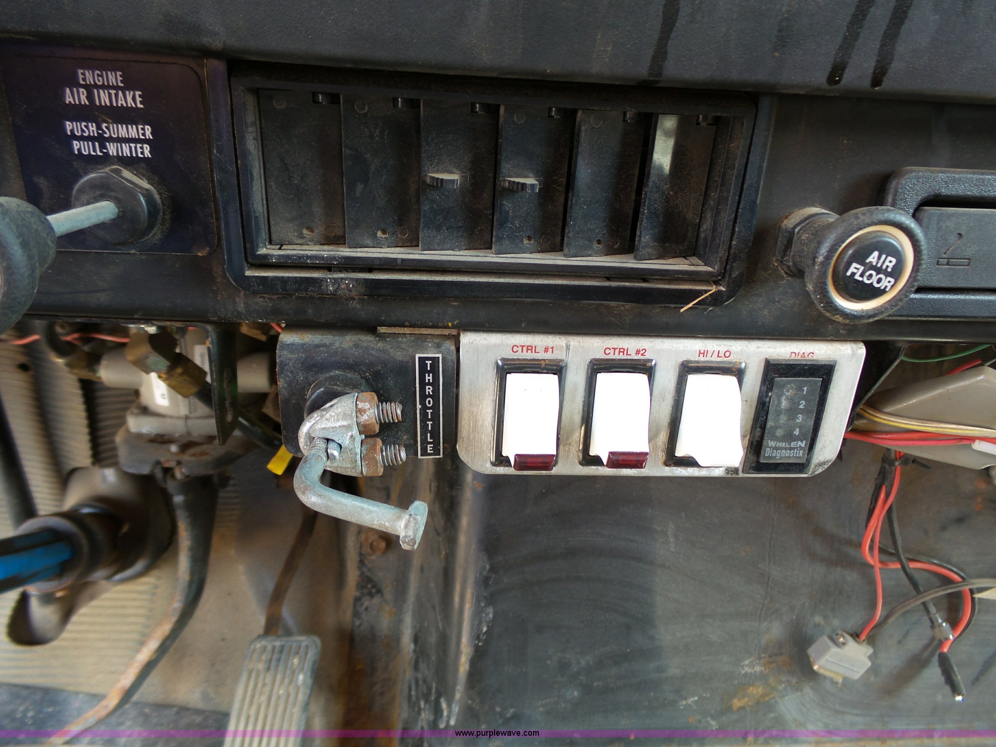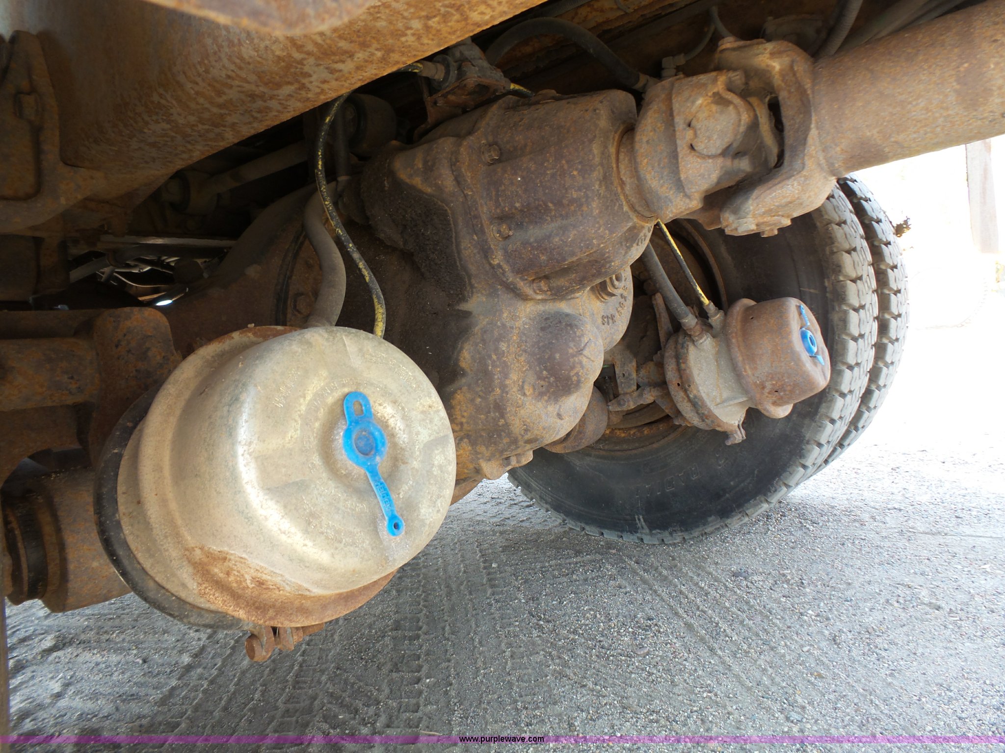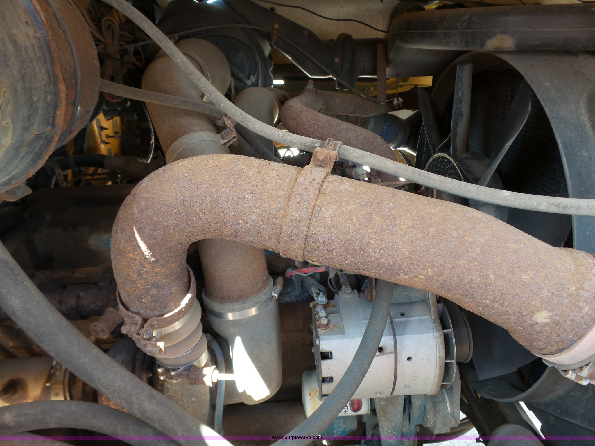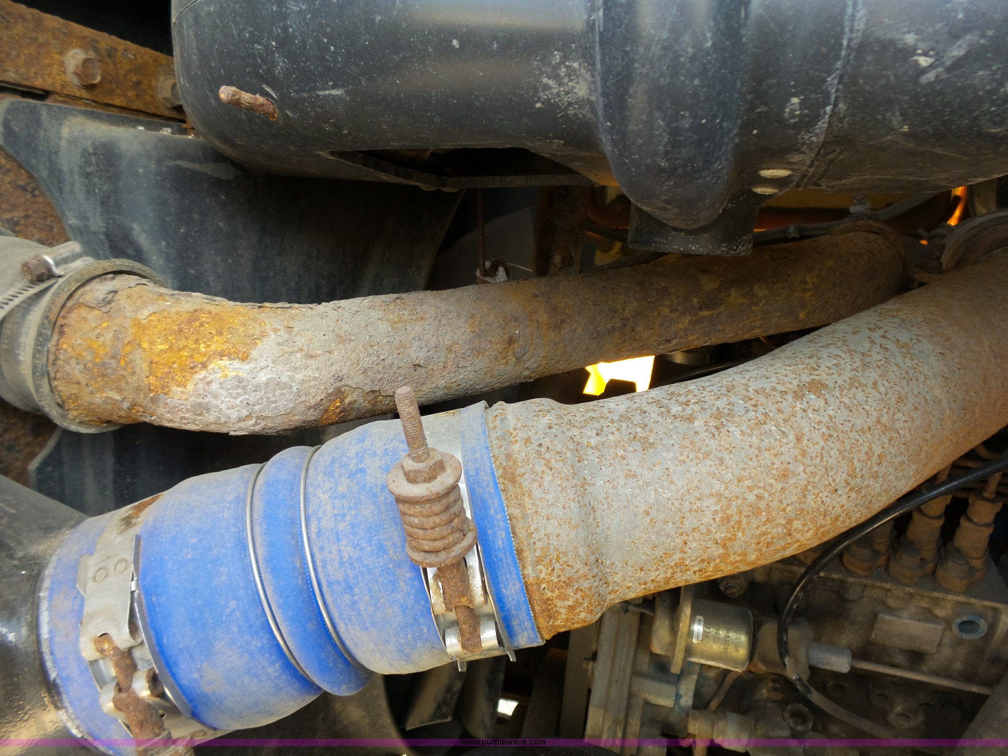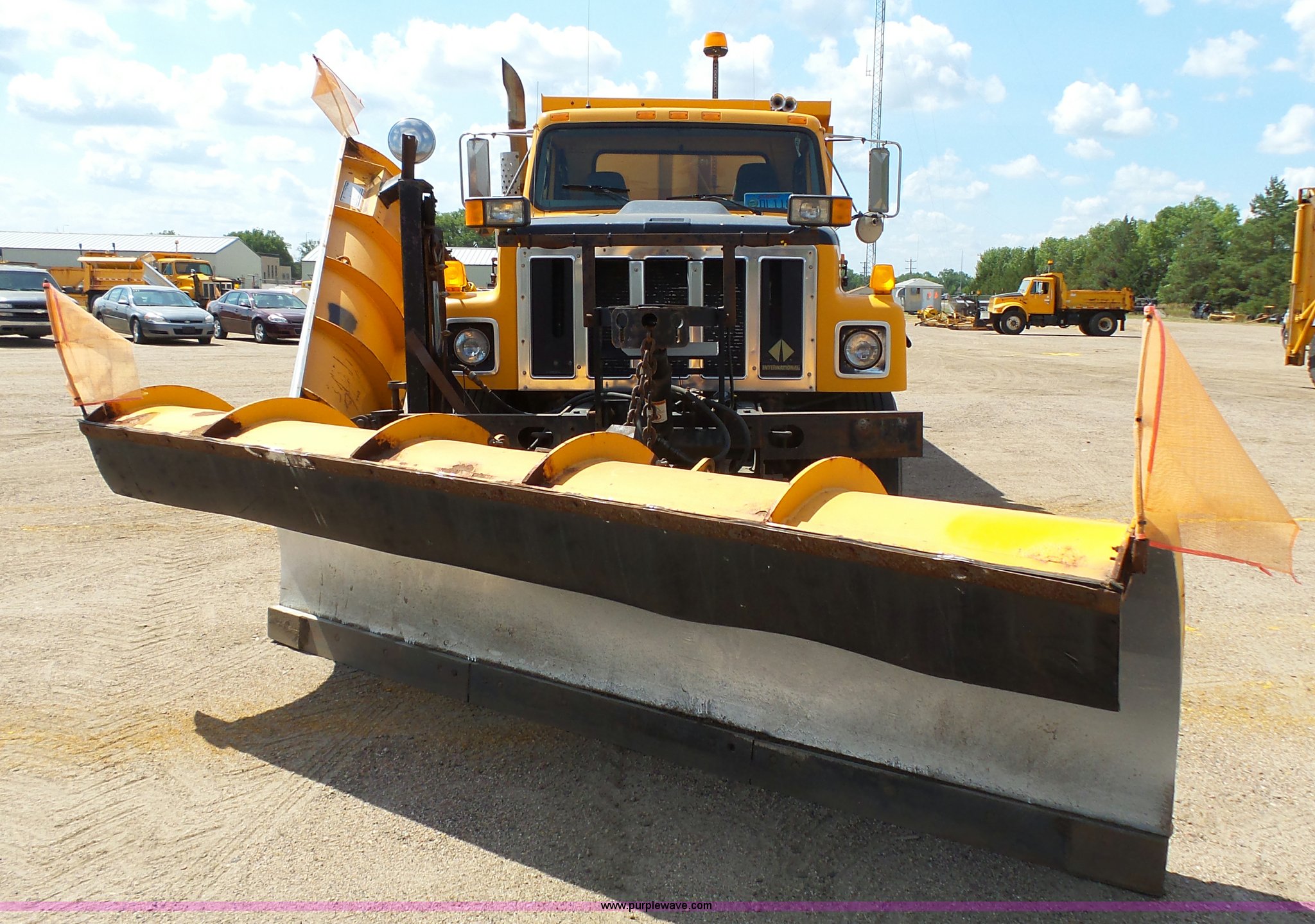Purple Wave is selling a used Construction Dump Truck in South Dakota. This item is a 1996 International 2554 dump truck with the following: 118,641 miles on odometer, 5,406 hours on meter, International DT530 8.7L L6 turbo diesel engine, Eight speed manual transmission, Tandem axle, Heat, AM/FM, Air suspension seat, Plow and spreader controls, Front mount PTO, 15'L x 8'W steel dump bed, 30.5" side height, Monroe plow, 12'W, Equip ID RD152, Monroe leveling wing, 10'W, Worn, Equip ID RR322, Monroe MSV168-84 spreader, 15'L x 8'W, Equip ID RN285, Asset# 344349, Single fuel tank, Spring over walking beam suspension, Air brakes, 210" wheelbase, 385/65R22.5 front tires, 11R22.5 rear tires, Rust, Headlights work intermittently, Coolant leaks, Fuel shut-off issues, Hydraulic leaks, Weak batteries, Air leaks, Electrical issues, Frog on plow bent, Equip ID DL118, Asset# 320040