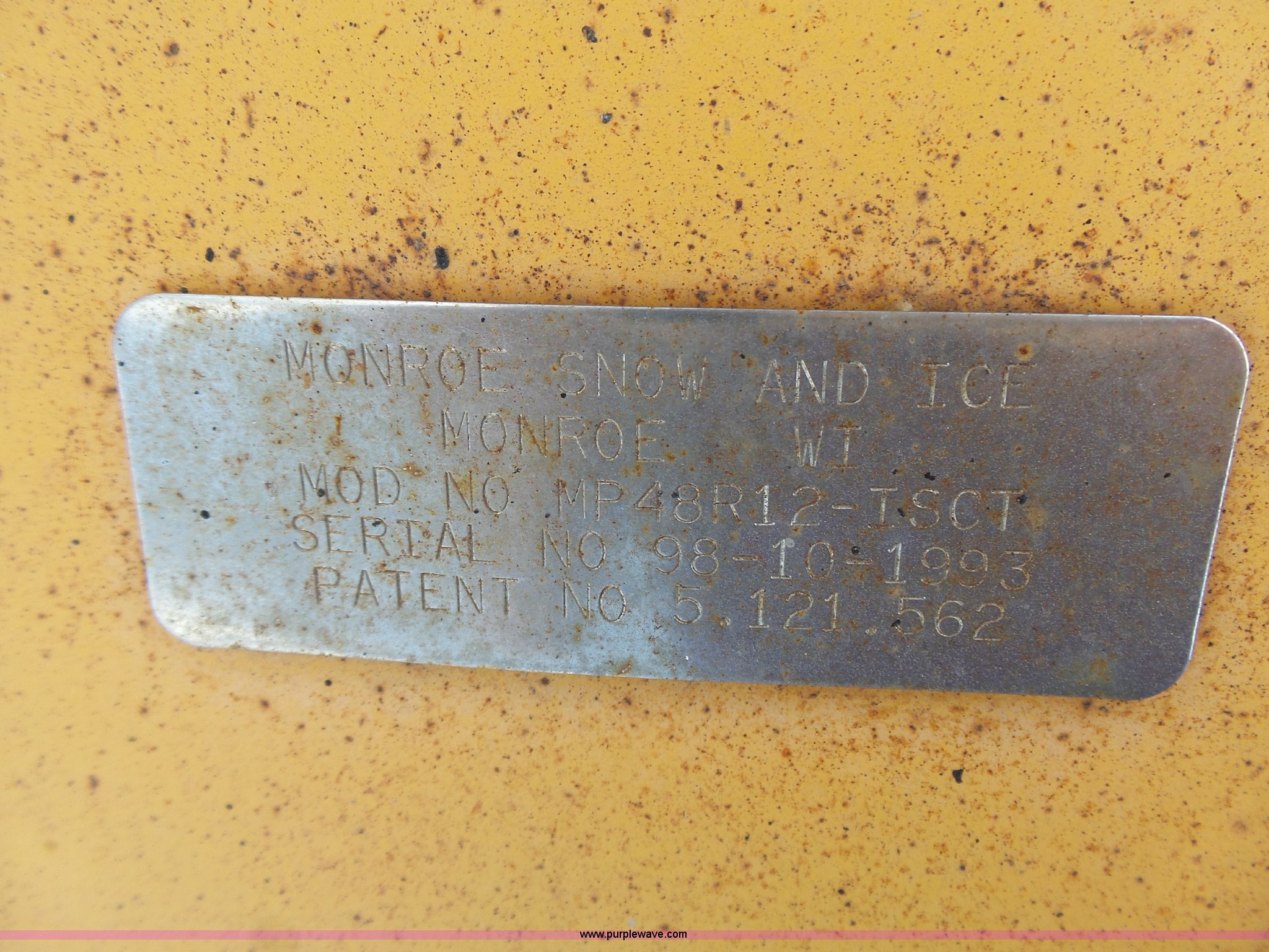 1996 International 2554 dump truck. 118,641 miles on odometer, 5,406 hours on meter, International DT530 8.7L L6 turbo diesel engine, Eight speed manual transmission, Tandem axle, Heat, AM/FM, Air suspension seat, Plow and spreader controls, Front mount PTO, 15'L x 8'W steel dump bed 30.5" side height, Monroe plow 12'W, Equip ID RD152, Monroe leveling wing 10'W, Worn, Equip ID RR322, Monroe MSV168-84 spreader 15'L x 8'W, Equip ID RN285, Asset# 344349, Single fuel tank, Spring over walking beam suspension, Air brakes, 210" wheelbase, 385/65R22.5 front tires, 11R22.5 rear tires, Rust, Headlights work intermittently, Coolant leaks, Fuel shut-off issues, Hydraulic leaks, Weak batteries, Air leaks, Electrical issues, Frog on plow bent, Equip ID DL118, Asset# 320040. South Dakota title. 1HTGCADR2TH374400. South Dakota Property Management. Mitchell, SD 57301