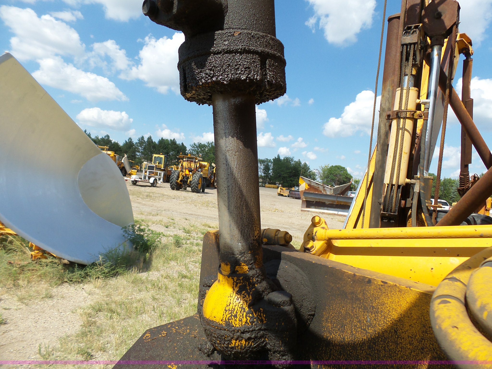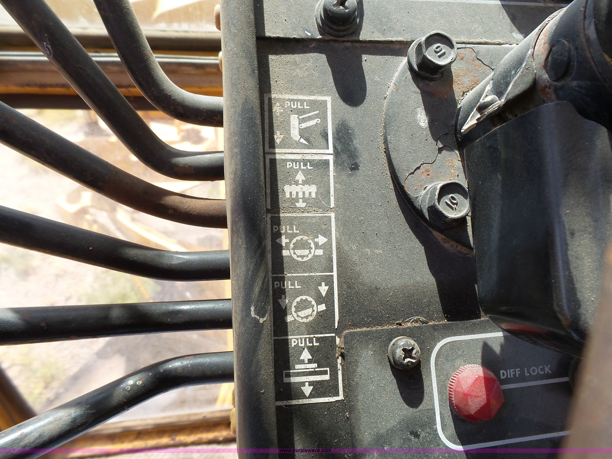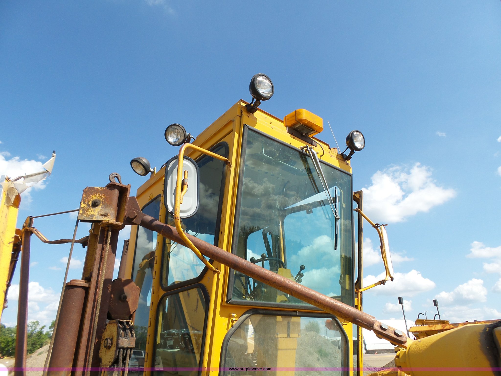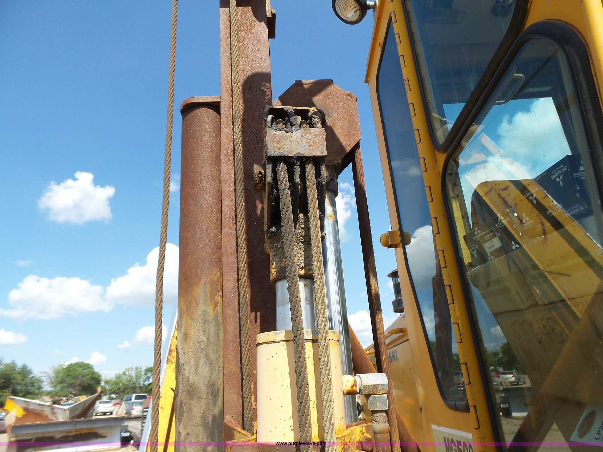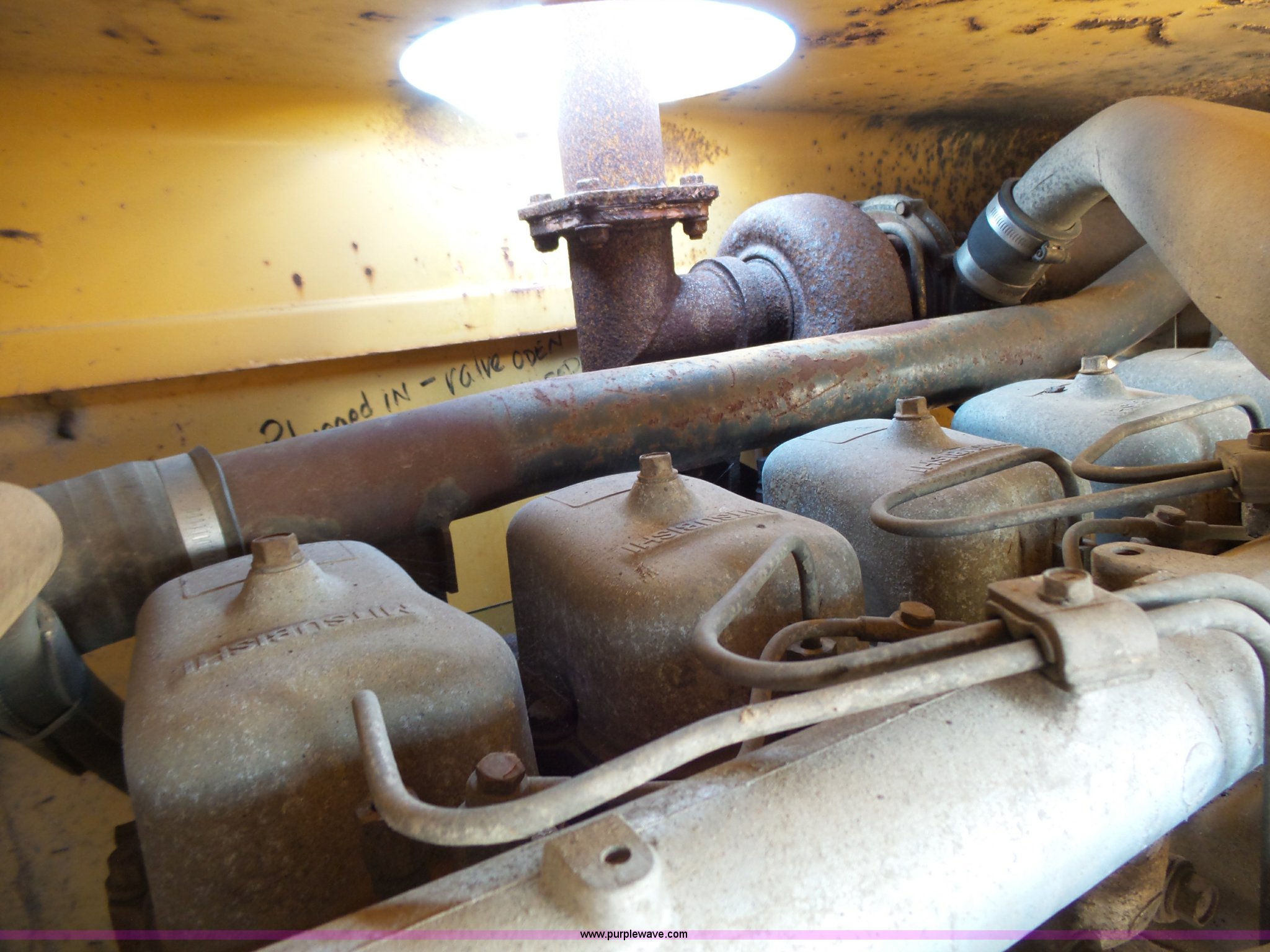 Purple Wave is selling a used Motor Grader in South Dakota. This item is a 1985 Mitsubishi MG500 motor grader with the following: 1,495 hours on meter, Six cylinder turbo diesel engine, Powershift transmission, 6F-6R gears, Differential lock, EROPS, Heat, Suspension seat, Front work lights, 14'W moldboard, Tip control, Side shift, Falls V-90 snow plow, 12'W, Equip ID RE606, Falls W12 snow wing, 12'W, Equip ID RR182, 14.00R24 tires, Differential lock leaks and is broken, Rust, Transmission issues, will not move forward, Unknown operating condition, Equip ID FJ645, Serial 5G000205, Asset# 303309