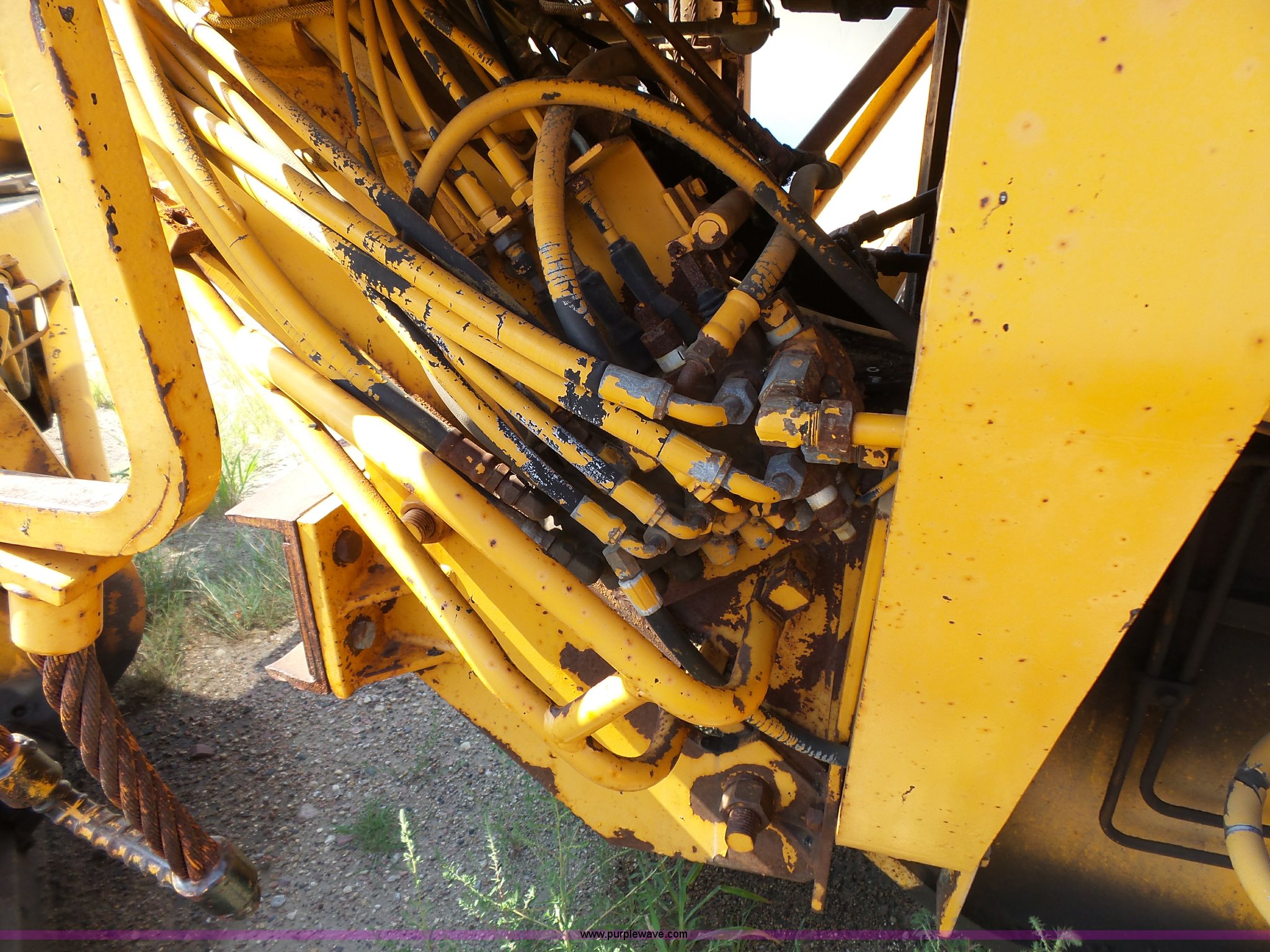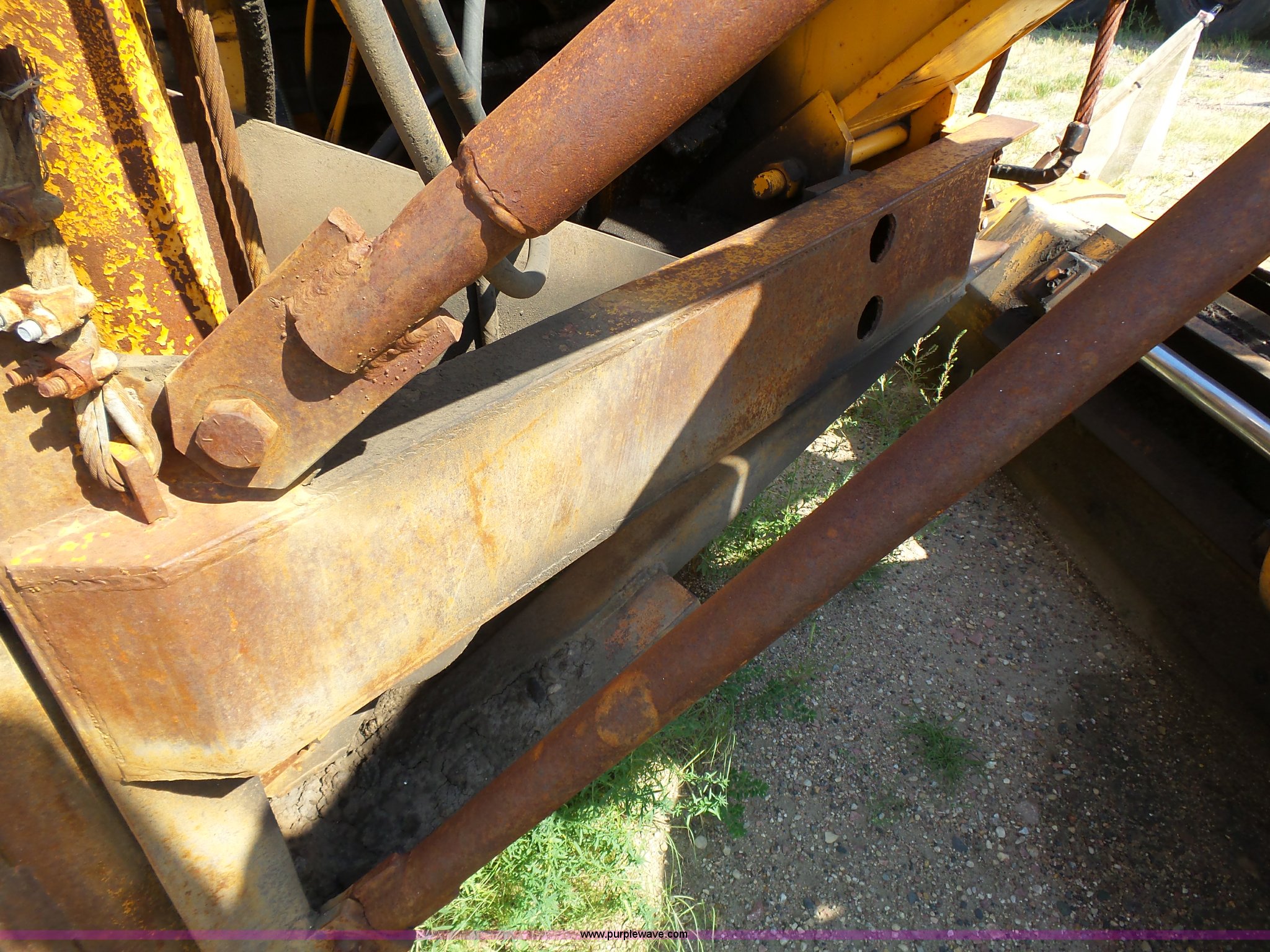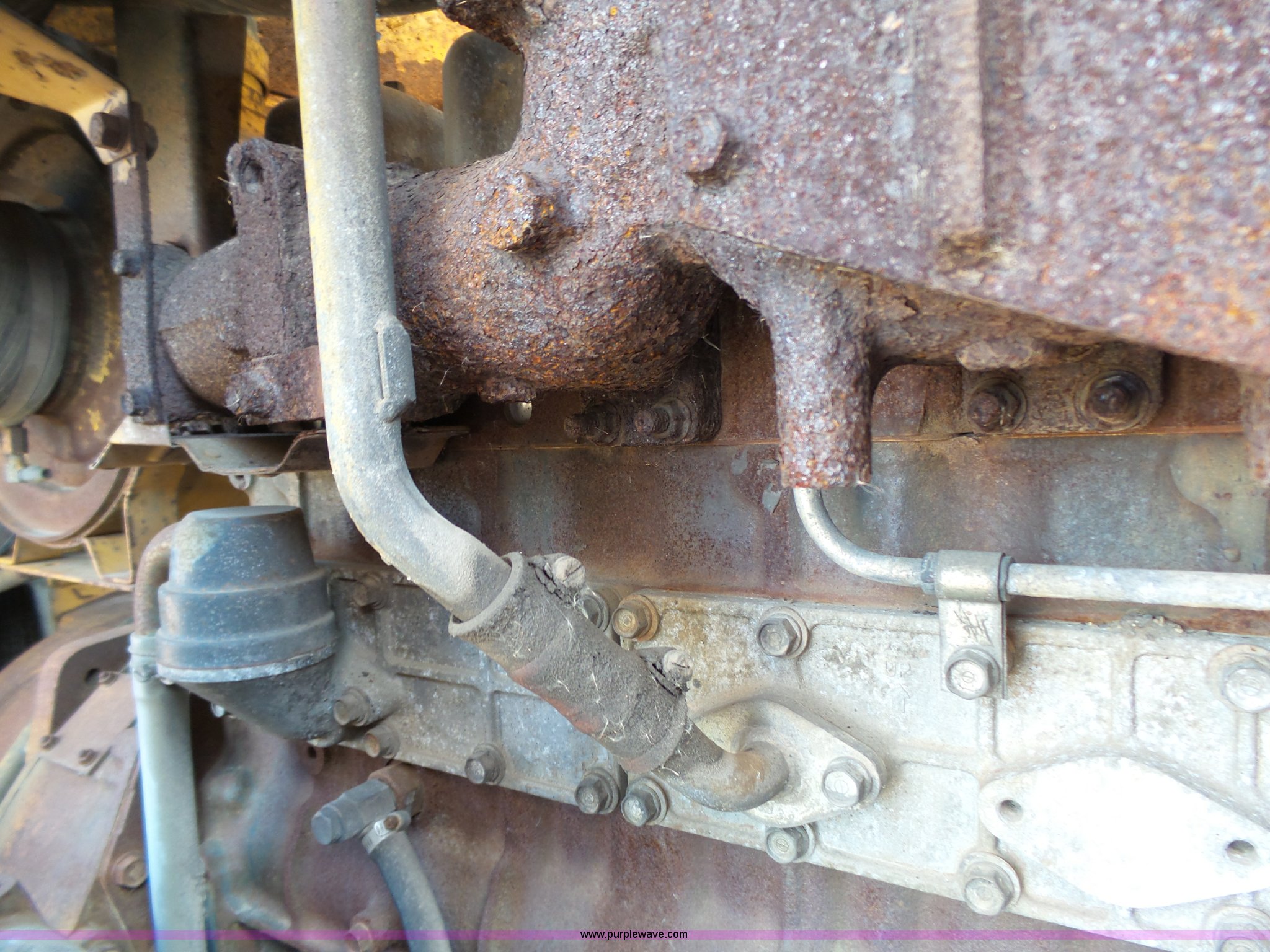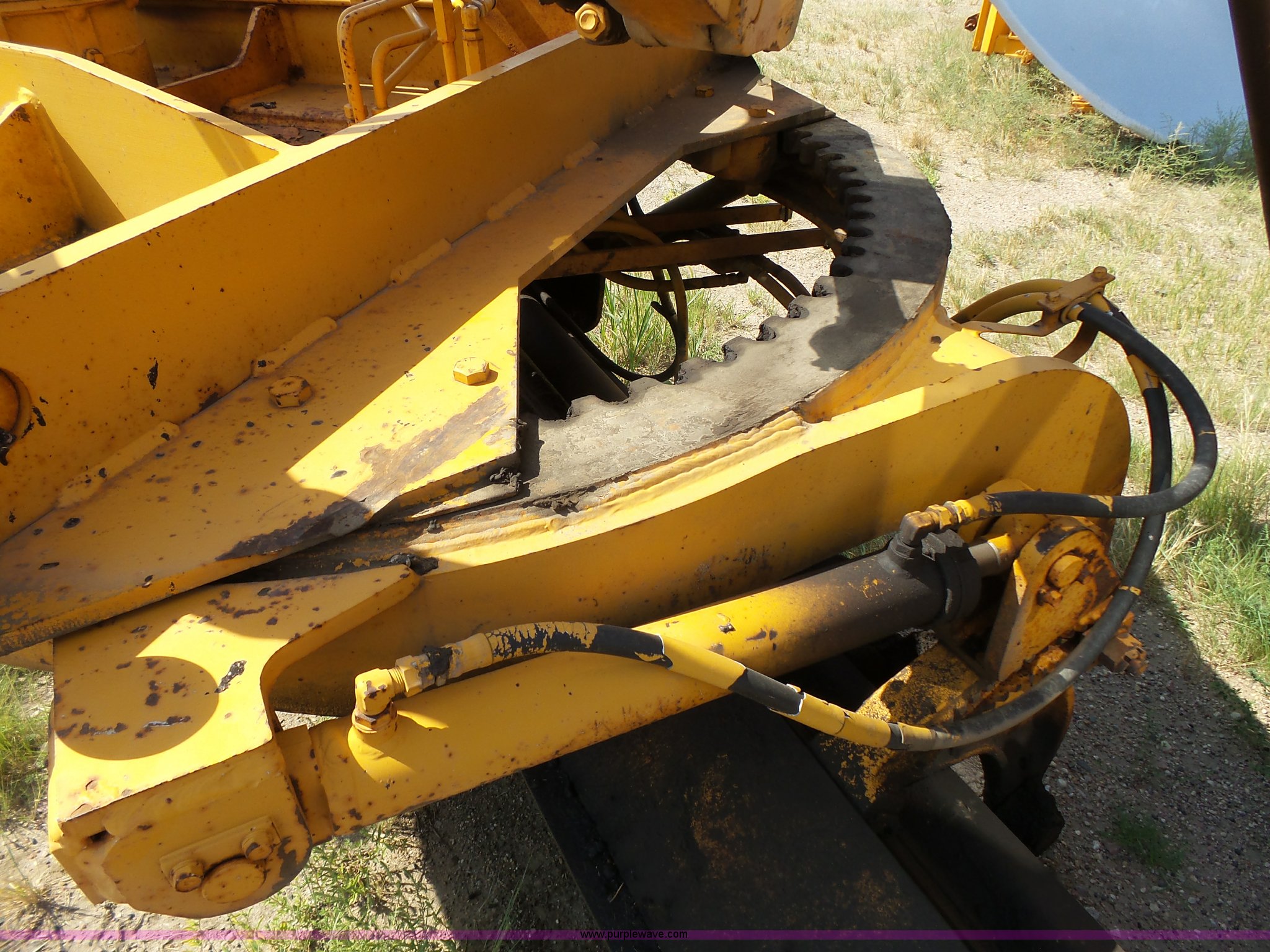 Purple Wave is selling a used Motor Grader in South Dakota. This item is a 1985 Mitsubishi MG500 motor grader with the following: 1,495 hours on meter, Six cylinder turbo diesel engine, Powershift transmission, 6F-6R gears, Differential lock, EROPS, Heat, Suspension seat, Front work lights, 14'W moldboard, Tip control, Side shift, Falls V-90 snow plow, 12'W, Equip ID RE606, Falls W12 snow wing, 12'W, Equip ID RR182, 14.00R24 tires, Differential lock leaks and is broken, Rust, Transmission issues, will not move forward, Unknown operating condition, Equip ID FJ645, Serial 5G000205, Asset# 303309