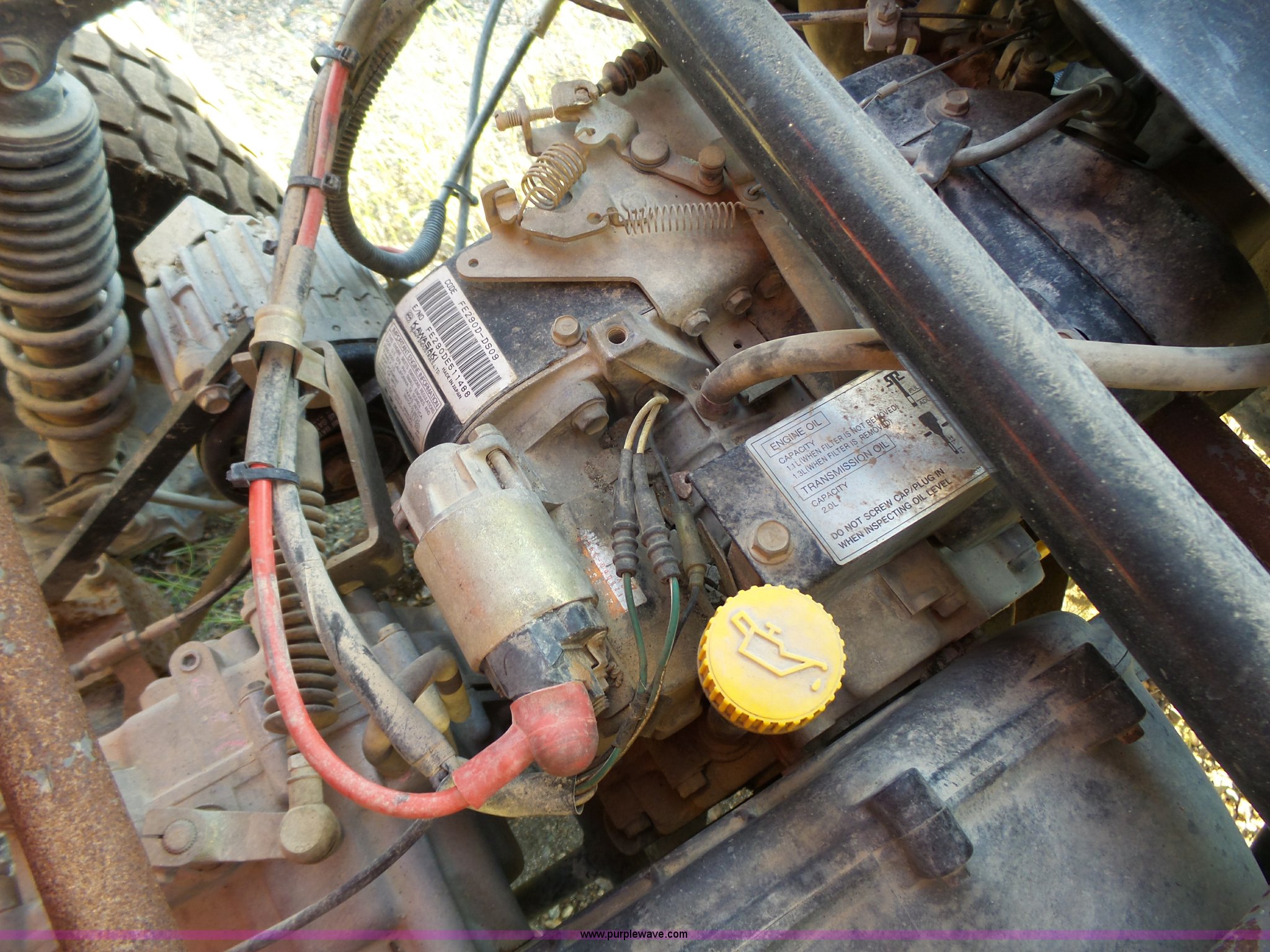 Purple Wave is selling a used Utility Vehicle in South Dakota. This item is a Kawasaki KAF300C utility vehicle with the following: 1,275 hours on meter, Kawasaki gas engine, Manual transmission, 38"L x 43"W, 20x8.00 tires, Equip ID IB129, Asset# 349860