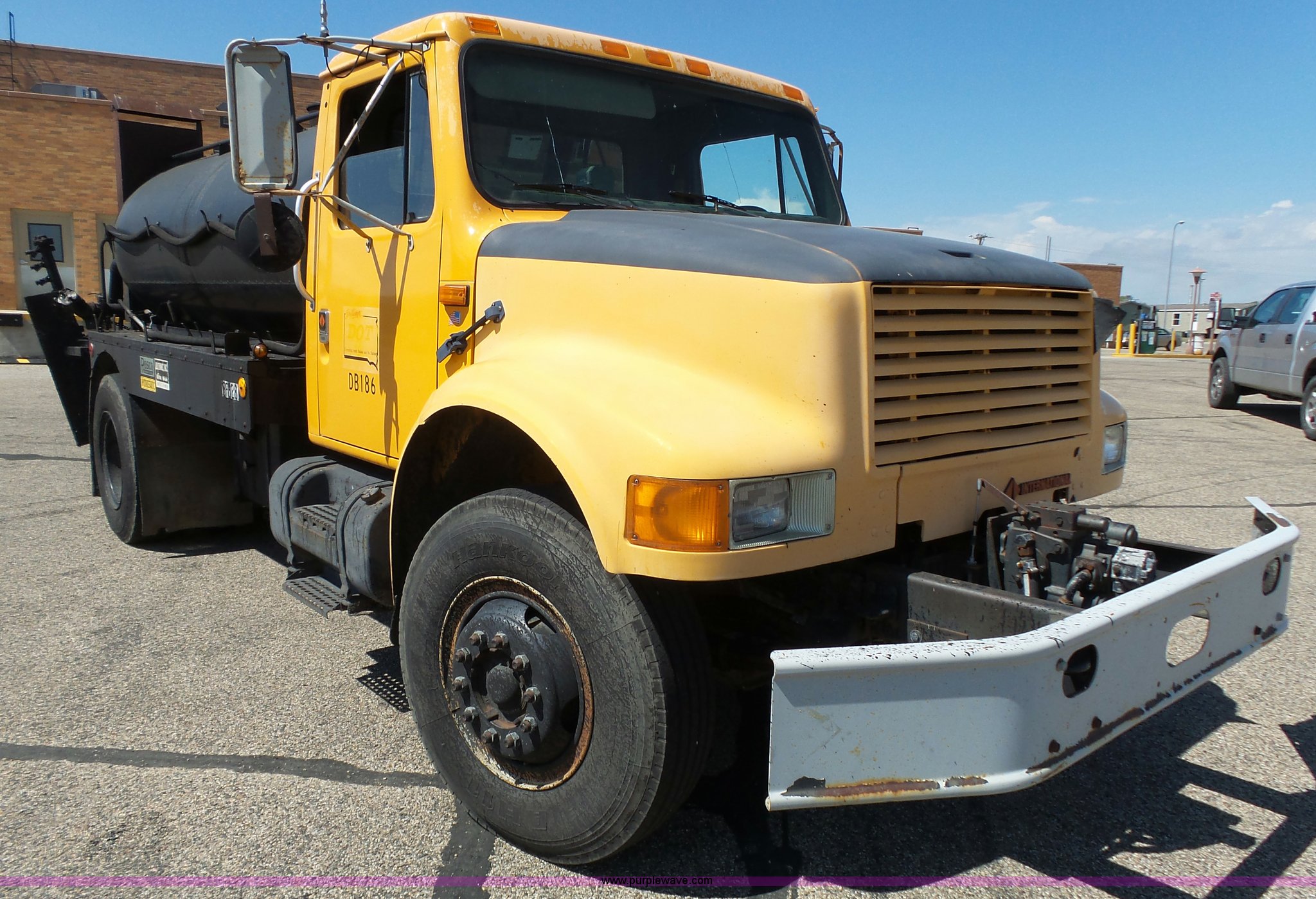 1990 International 4700 oil distributor truck. 44,365 miles on odometer, International DT360 5.9L L6 turbo diesel engine, Automatic transmission, Single axle, Heat, Suspension seat, Front mount PTO, Roscoe RRH oil distributor bed 14.5'L x 8'W, 1,250 gallon capacity, Propane burner, In-cab controls, Spray wand, 12'W folding spray boom (42) nozzles, Asset# 282312, Equip ID SF828, Dual fuel tanks, Spring suspension, Air brakes, 170" wheelbase, 10.00R20 tires, Decals will be removed prior to auction, Uses oil, Driver's door latch issues, Equip ID DB186, Asset# 281608. South Dakota title. 1HTSCCFN6LH222961. South Dakota Property Management. 2735 US 12. Aberdeen, SD 57401