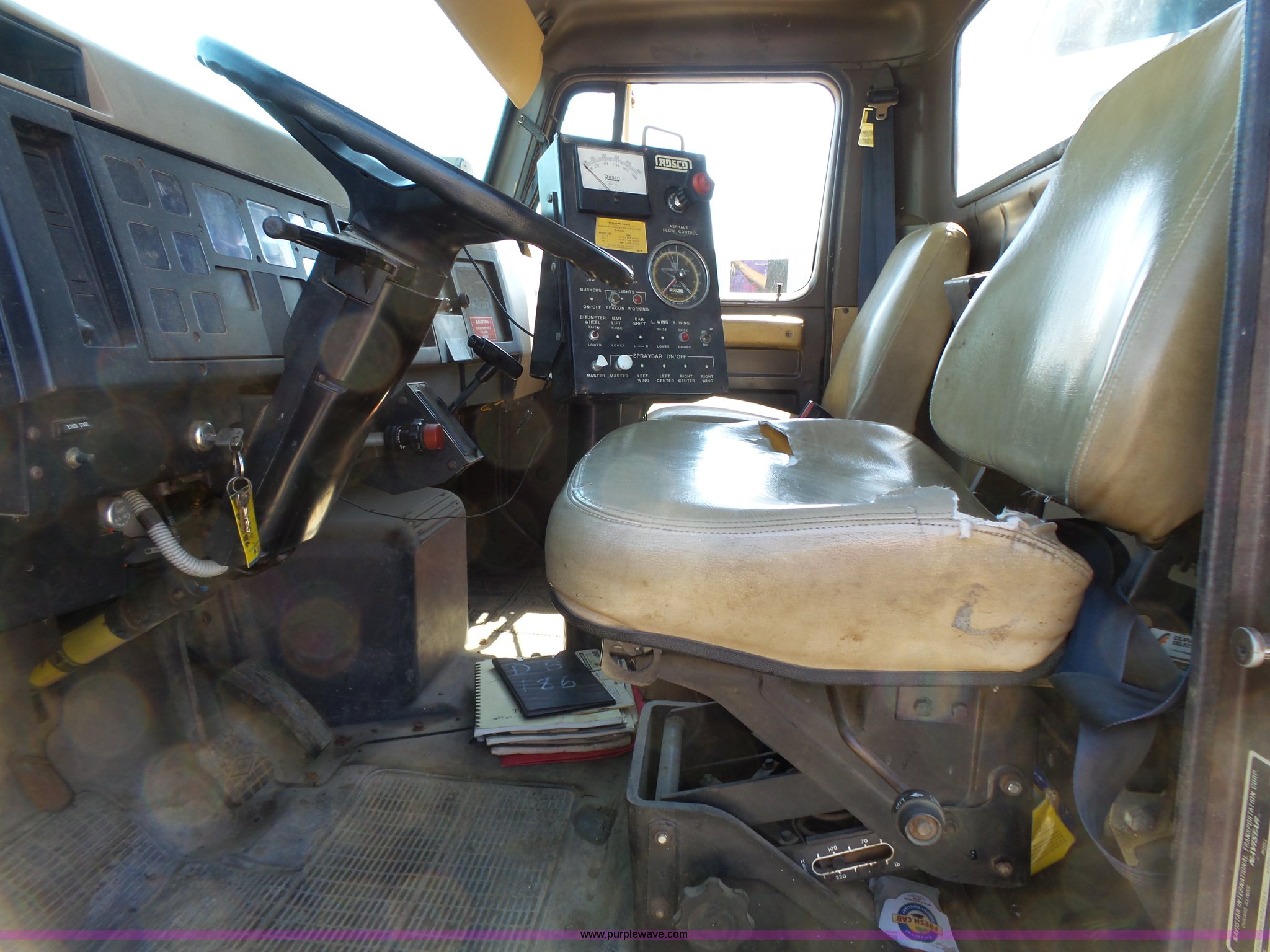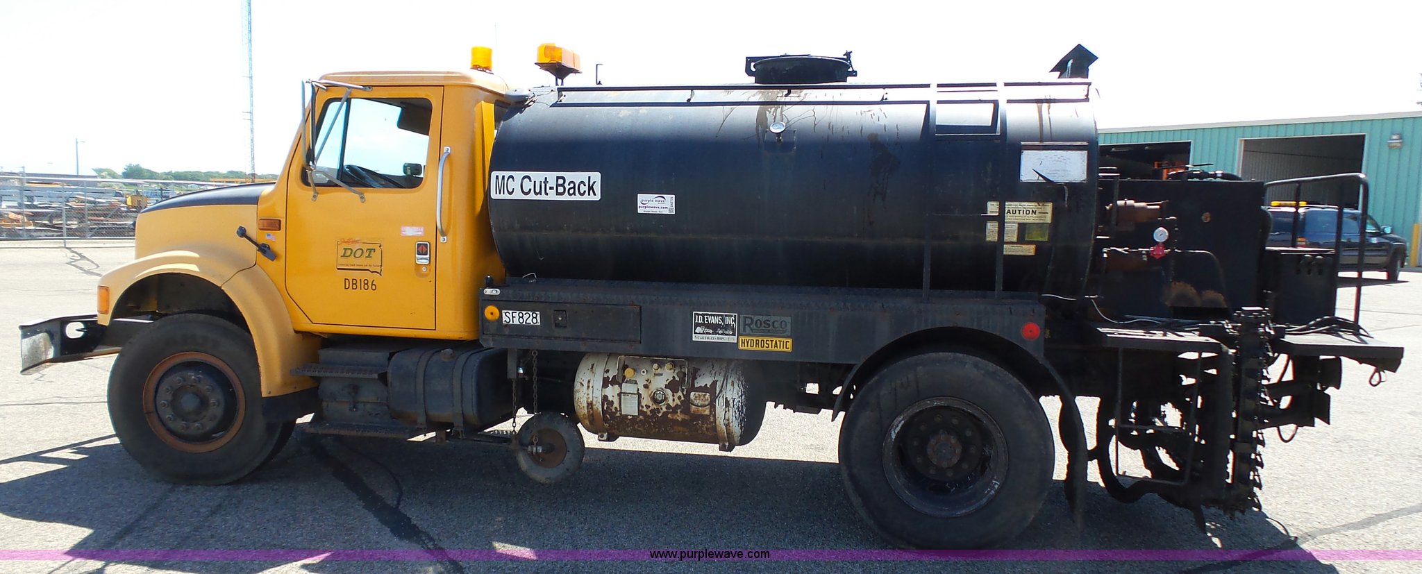 Purple Wave is selling a used Oil Distributor Truck in South Dakota. This item is a 1990 International 4700 oil distributor truck with the following: 44,365 miles on odometer, International DT360 5.9L L6 turbo diesel engine, Automatic transmission, Single axle, Heat, Suspension seat, Front mount PTO, Roscoe RRH oil distributor bed, 14.5'L x 8'W, 1,250 gallon capacity, Propane burner, In-cab controls, Spray wand, 12'W folding spray boom, (42) nozzles, Asset# 282312, Equip ID SF828, Dual fuel tanks, Spring suspension, Air brakes, 170" wheelbase, 10.00R20 tires, Decals will be removed prior to auction, Uses oil, Driver's door latch issues, Equip ID DB186, Asset# 281608