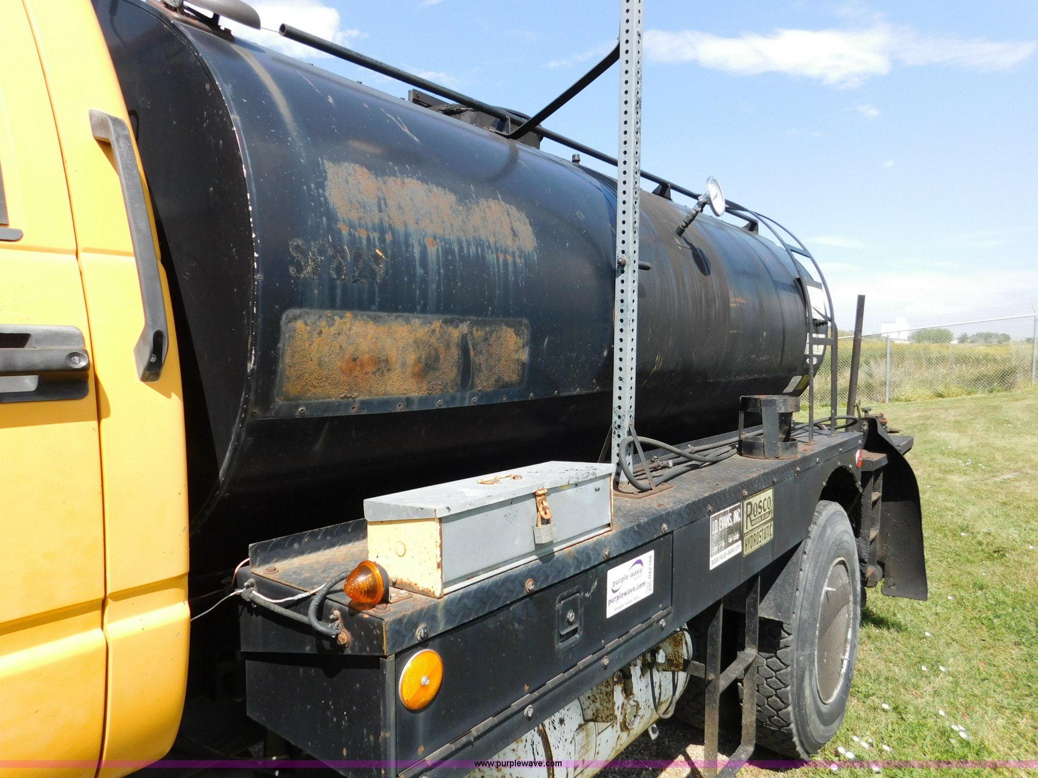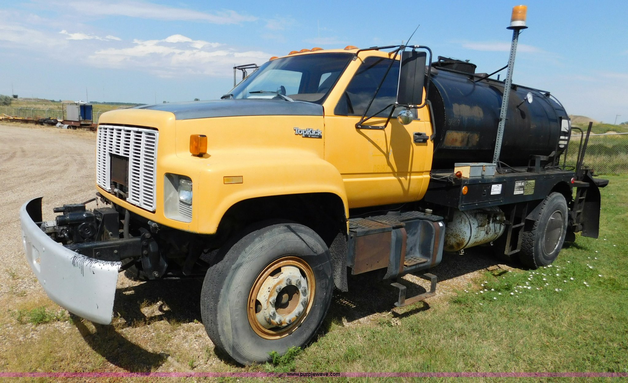 1990 GMC TopKick oil distributor truck. 55,418 miles on odometer, Caterpillar 3116 6.6L six cylinder diesel engine, Automatic transmission, Single axle, Heat, AM/FM, Suspension seat, Front mount PTO, Roscoe RRH oil distributor bed 14.5'L x 8'W, 1,250 gallon capacity, 49 x 74 x 120 tank, Propane burner, In-cab controls, Spray wand, 12'W folding spray boom, (42) nozzles, Equip Id SF829, Asset # 288310, Spring suspension, Air brakes, 176" wheelbase, 10R20 tires, GVWR approx. 33,000 lbs, Equip Id DB187, Asset# 288311. South Dakota title. 1GDM7H1J2LJ610253. South Dakota Property Management. 2735 US 12. Aberdeen, SD 57401
