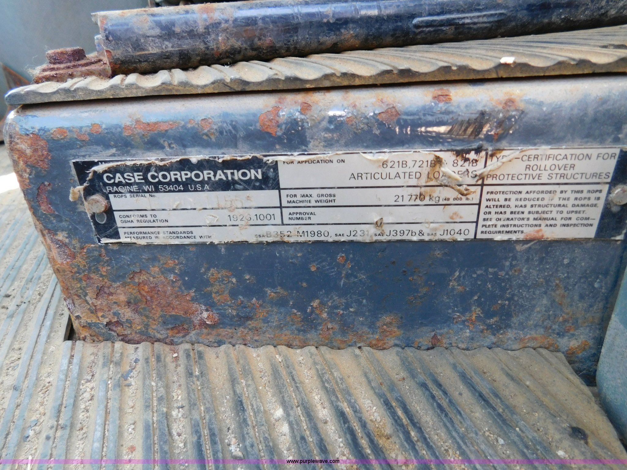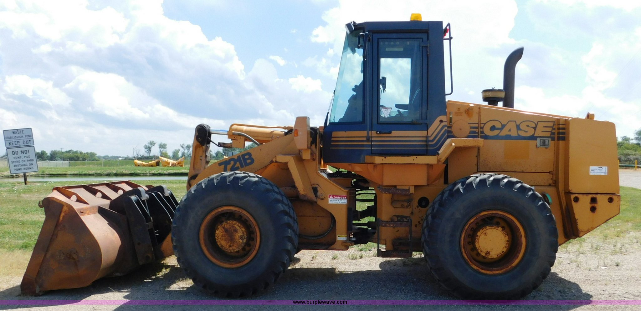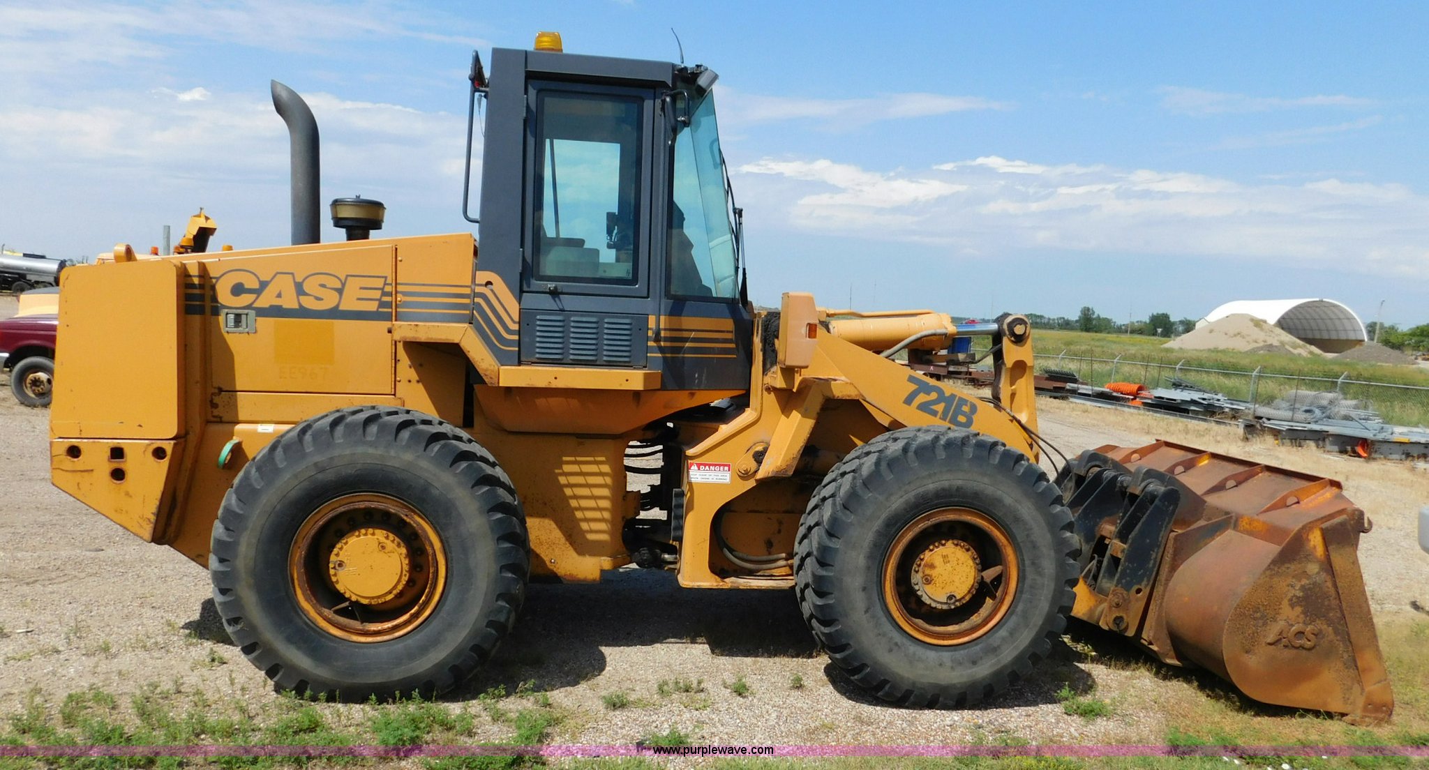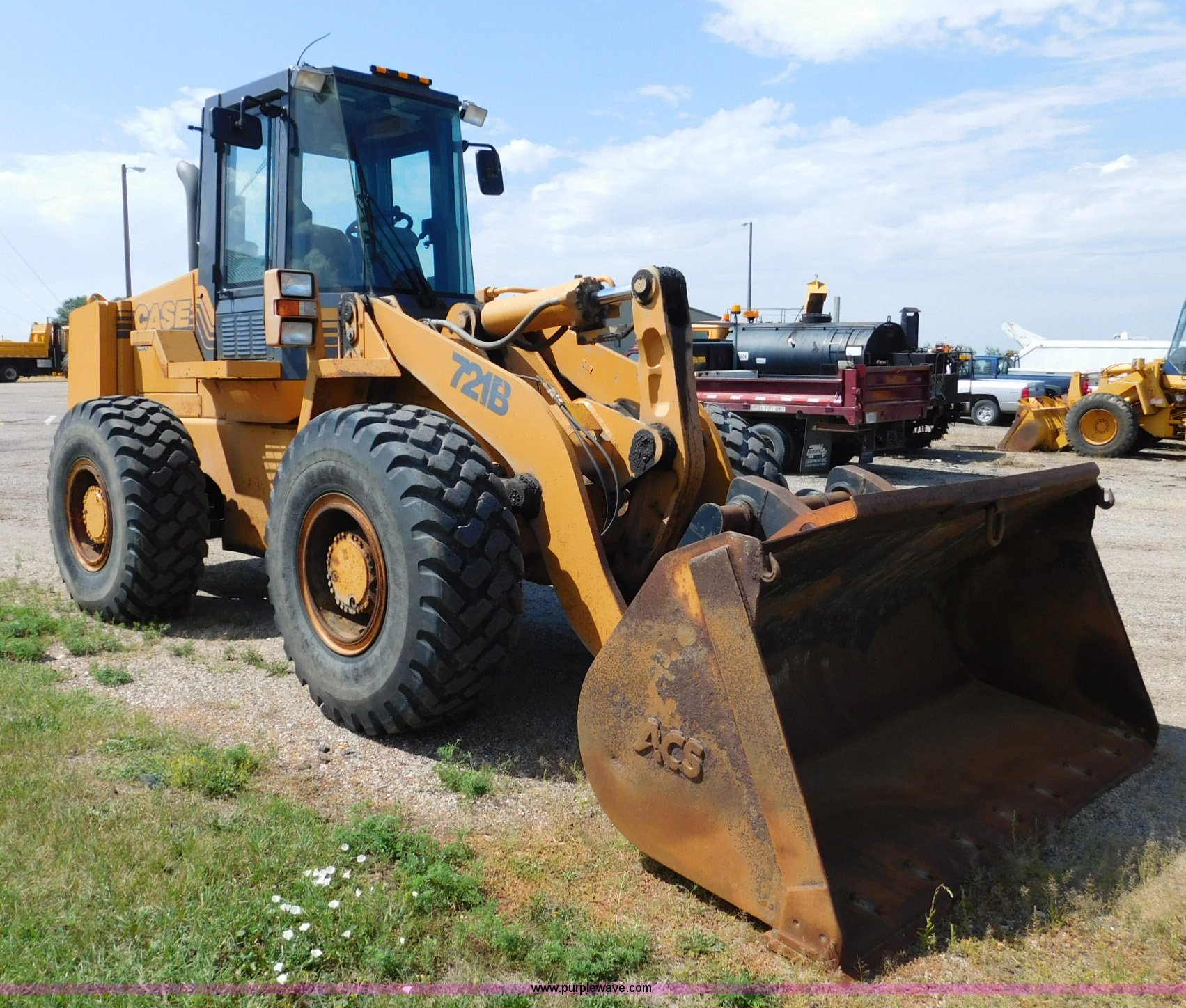 Purple Wave is selling a used Wheel Loader in South Dakota. This item is a 1997 Case 721B wheel loader with the following: 3,174 hours on meter, Six cylinder turbo diesel engine, Hydrostatic transmission, 4F-4R gears, EROPS, Heat, Tilt steering wheel, Suspension seat, Joystick bucket controls, Front work lights, Hydraulic quick coupler, ACS bucket, 8'5"W, 2 1/4" cu. yd. capacity, Counterweight, 20.5R25 tires, 28,479 lbs. base operating weight, Rust, Transmission issues, intermittently does not shift into forward gears, Equip ID EE967, Serial JEE0053957, Asset# 324698