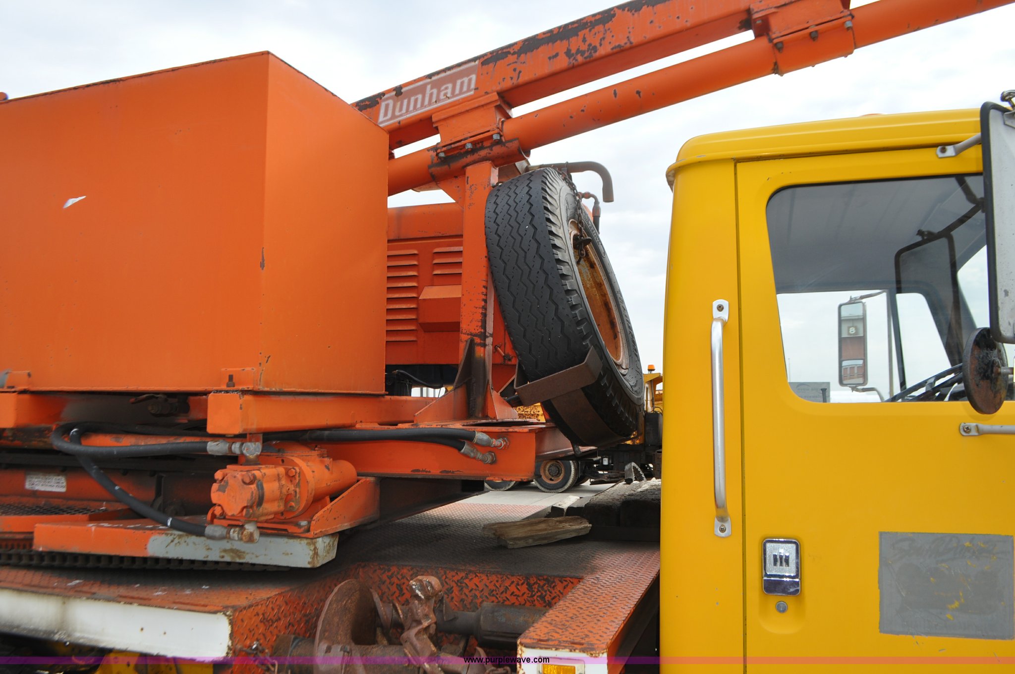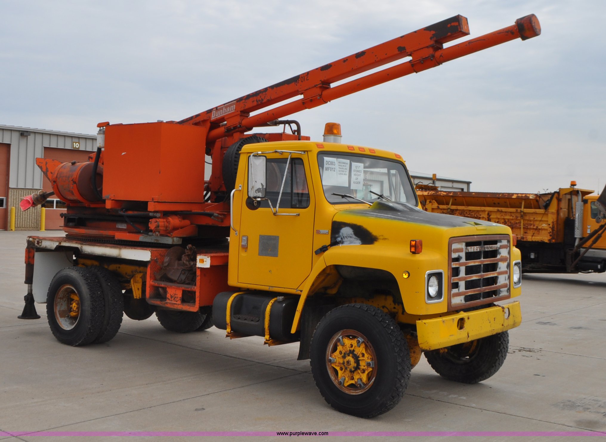 Purple Wave is selling a used Drilling Rig Truck in South Dakota. This item is a 1981 International 1824 drilling rig truck with the following: 41,536 miles on odometer, International 392 C.I.D. V8 gas engine, Five speed manual transmission, Two speed rear end, Four wheel drive, Dunham MP225 drill rig, 4,499 hours on meter, Ford 300 gas engine, 20' digging depth, 10 control sticks, (6) bits, 5" to 18" diameters, Rotate and tilt, Stabilizers, Serial 133018-MP-225, Asset# 281017, Equip ID MF012, Spring suspension, Hydraulic brakes, 170" wheelbase, Equip ID DC003, Asset# 228736