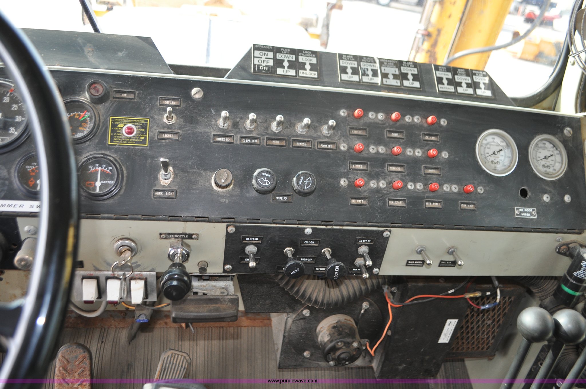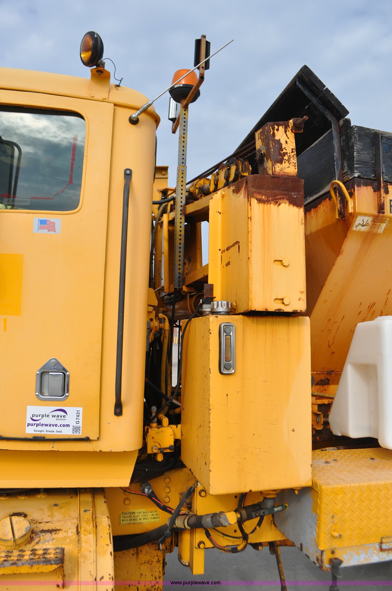 Purple Wave is selling a used Construction Dump Truck in South Dakota. This item is a 1989 Oshkosh P25261 plow/spreader truck with the following: 104,965 miles on odometer, 4,915 hours on meter, Caterpillar 3306B 10.5L L6 turbo diesel engine, Eaton Fuller 13 speed manual transmission, Four wheel drive, Single axle, Air suspension seat, Front and rear auxiliary hydraulics, Front mount quick attach, Monroe spreader, 9'W, Equip ID RM196, Schmidt-Wausau reversible plow, 12'W, Asset# 330917, Equip ID RD146, Schmidt-Wausau snow wing, 11'W, Asset# 280366, Equip ID RR145, Schimidt-Wausau snow v-plow, Asset# 280365, Equip ID RE006, Dual fuel tanks, 445/65R22.5 tires, Equip ID DH041, Asset# 280367