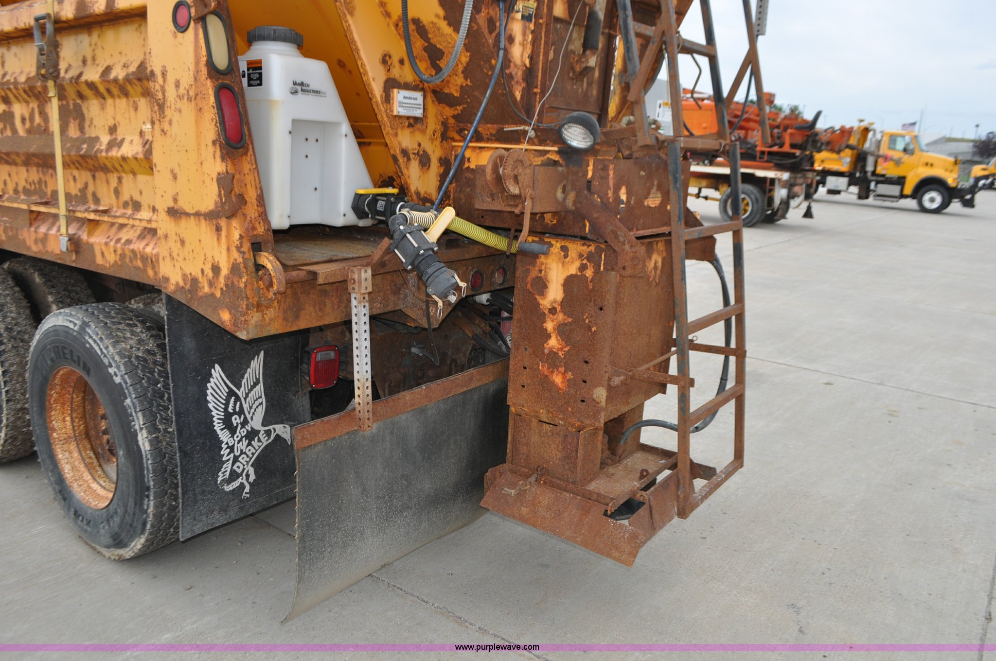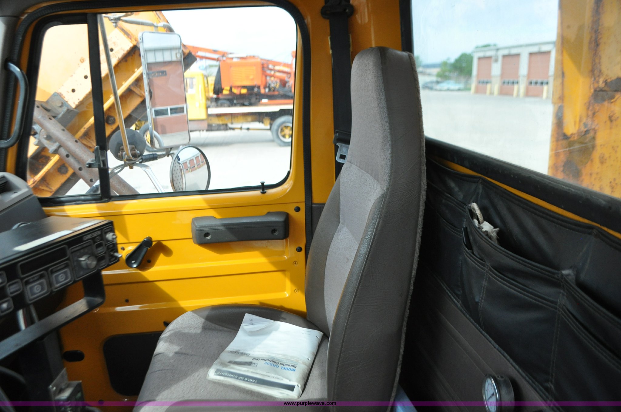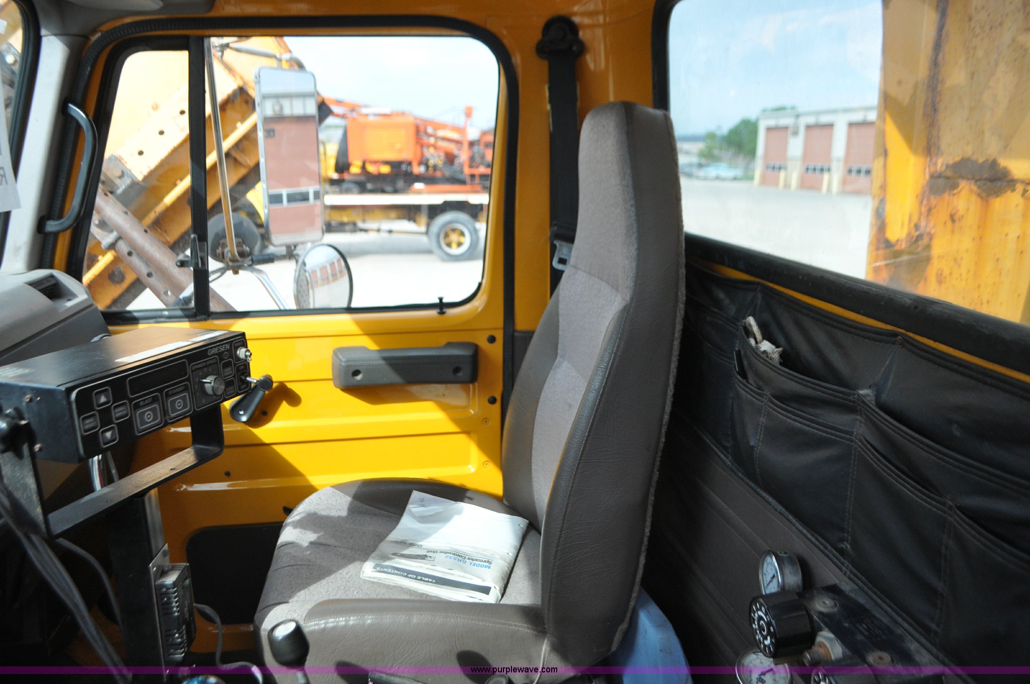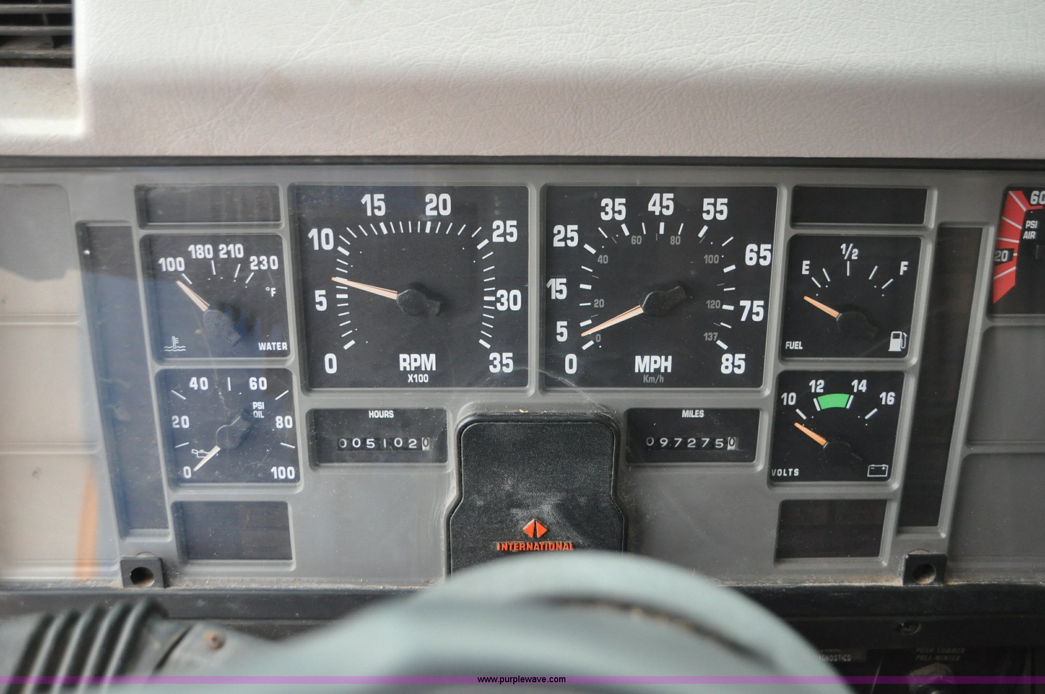 Purple Wave is selling a used Construction Dump Truck in South Dakota. This item is a 1998 International 2554 dump truck with the following: 97,275 miles on odometer, 5,102 hours on meter, International DT530 8.7L L6 turbo diesel engine, Eaton Fuller 10 speed manual transmission, Tandem axle, Inter-axle differential lock, Tilt, Telescoping steering wheel, AM/FM, Air suspension seat, Front mount PTO, 15'L 96"W steel dump bed, 35" side height, Single ram hoist, Air operated end gate, Monroe MP48R12-ISCT plow, 12'W, Equip ID RD067, Henderson WSHX14X50 spreader, 14'L, Equip ID RN222, Monroe snow wing, 10'W, Equip ID RR330, Tennco underbody scraper, 8'W, Equip ID RA069, Single fuel tank, Pintle hitch, Spring over walking beam suspension, Air brakes, 210" wheelbase, 385/65R22.5 front tires, 11R22.5 rear tires, GVWR 54,500 lbs, FAWR 14,500 lbs, IAWR 20,000 lbs, RAWR 20,000 lbs, Equip ID DL157, Asset# 0325987