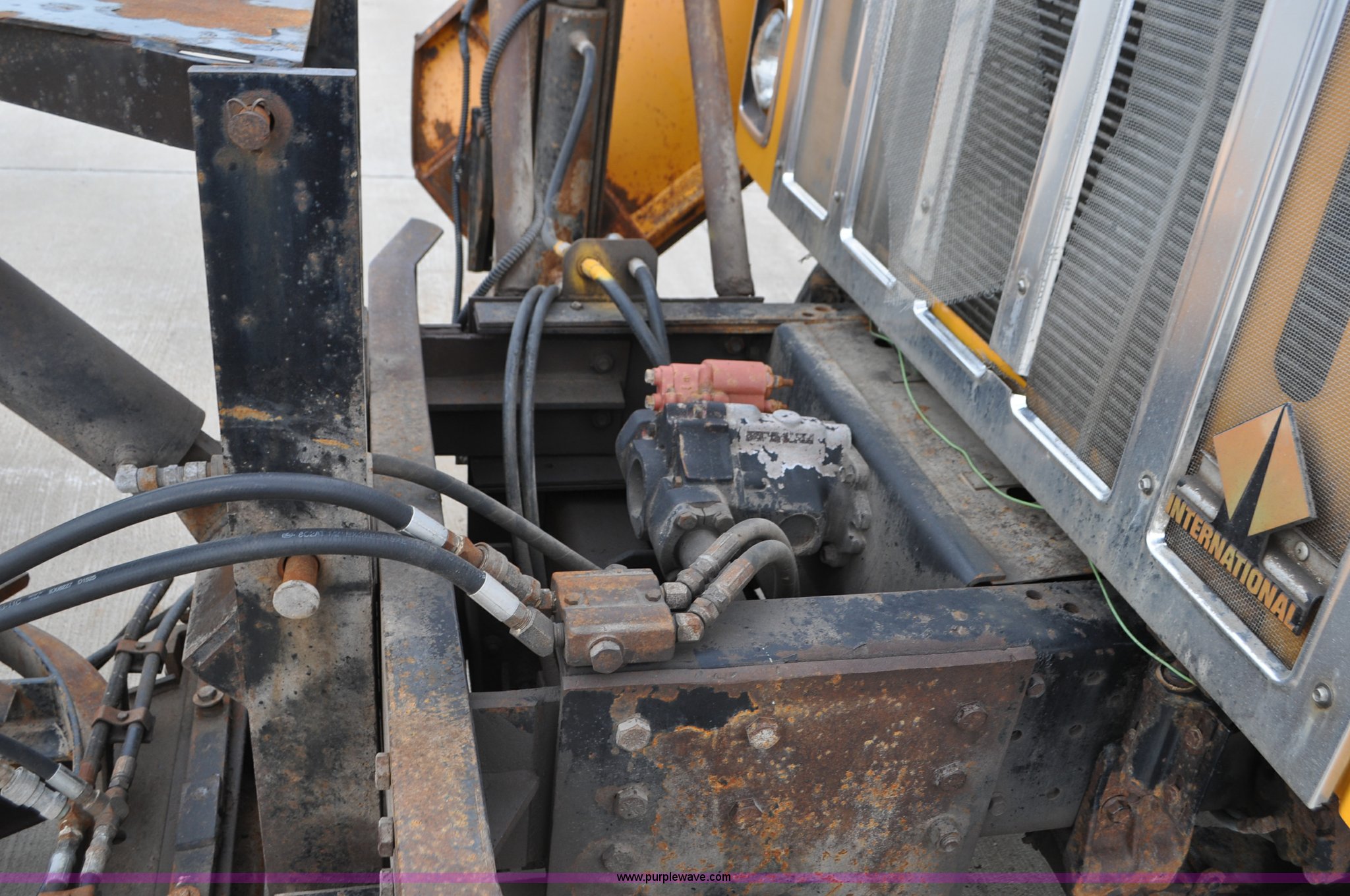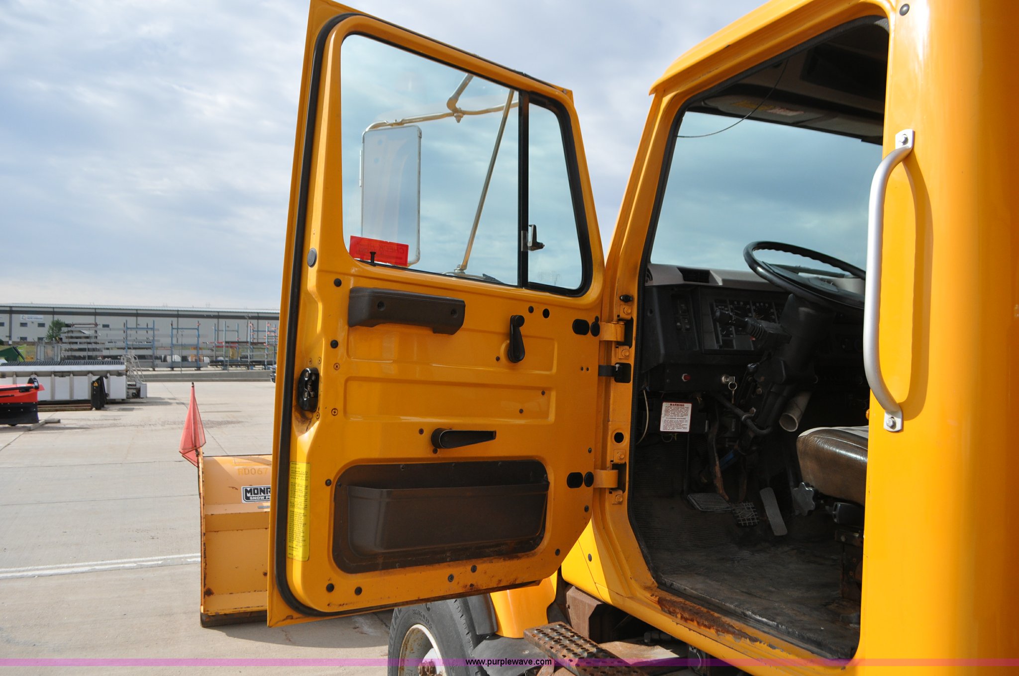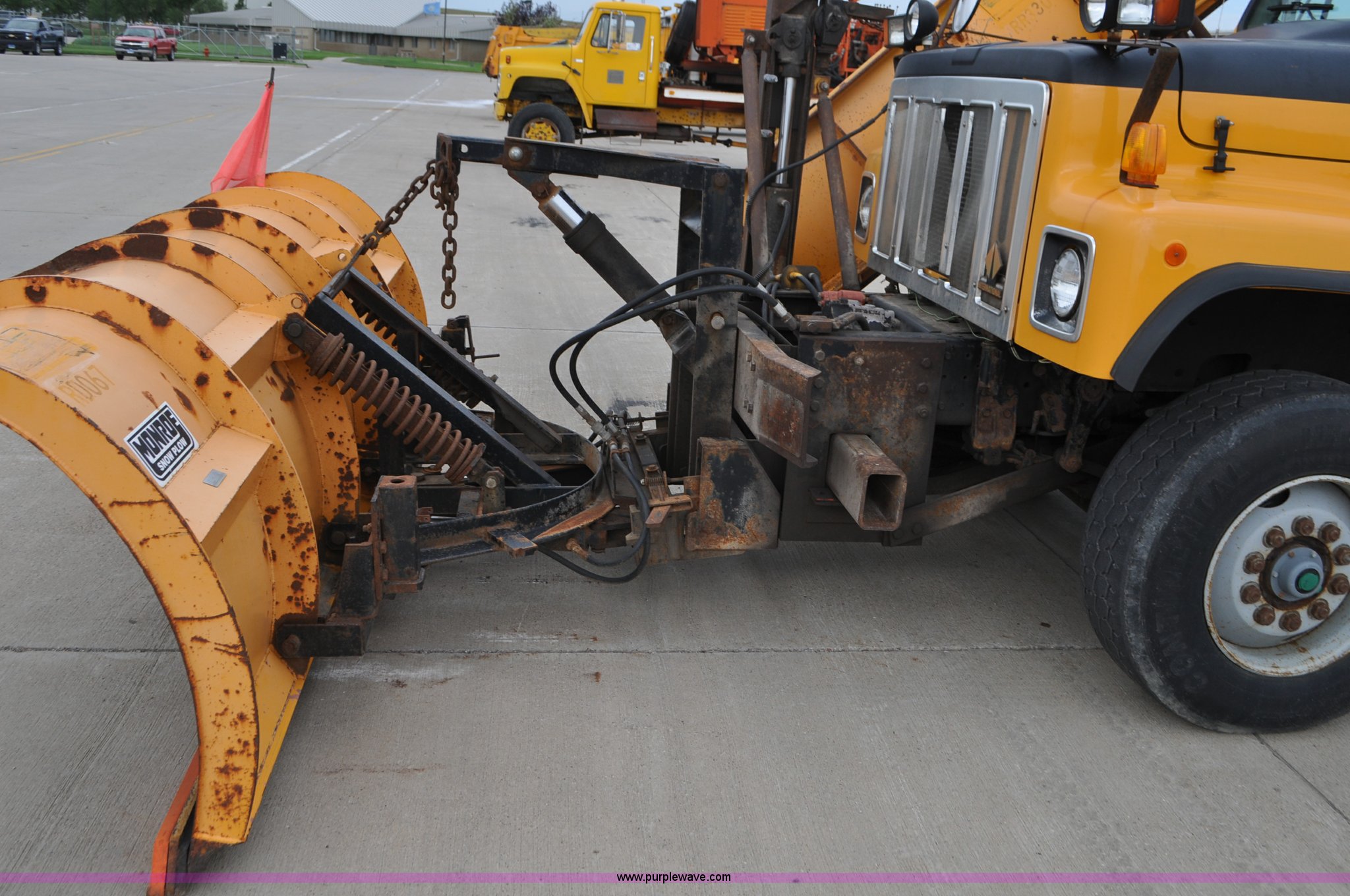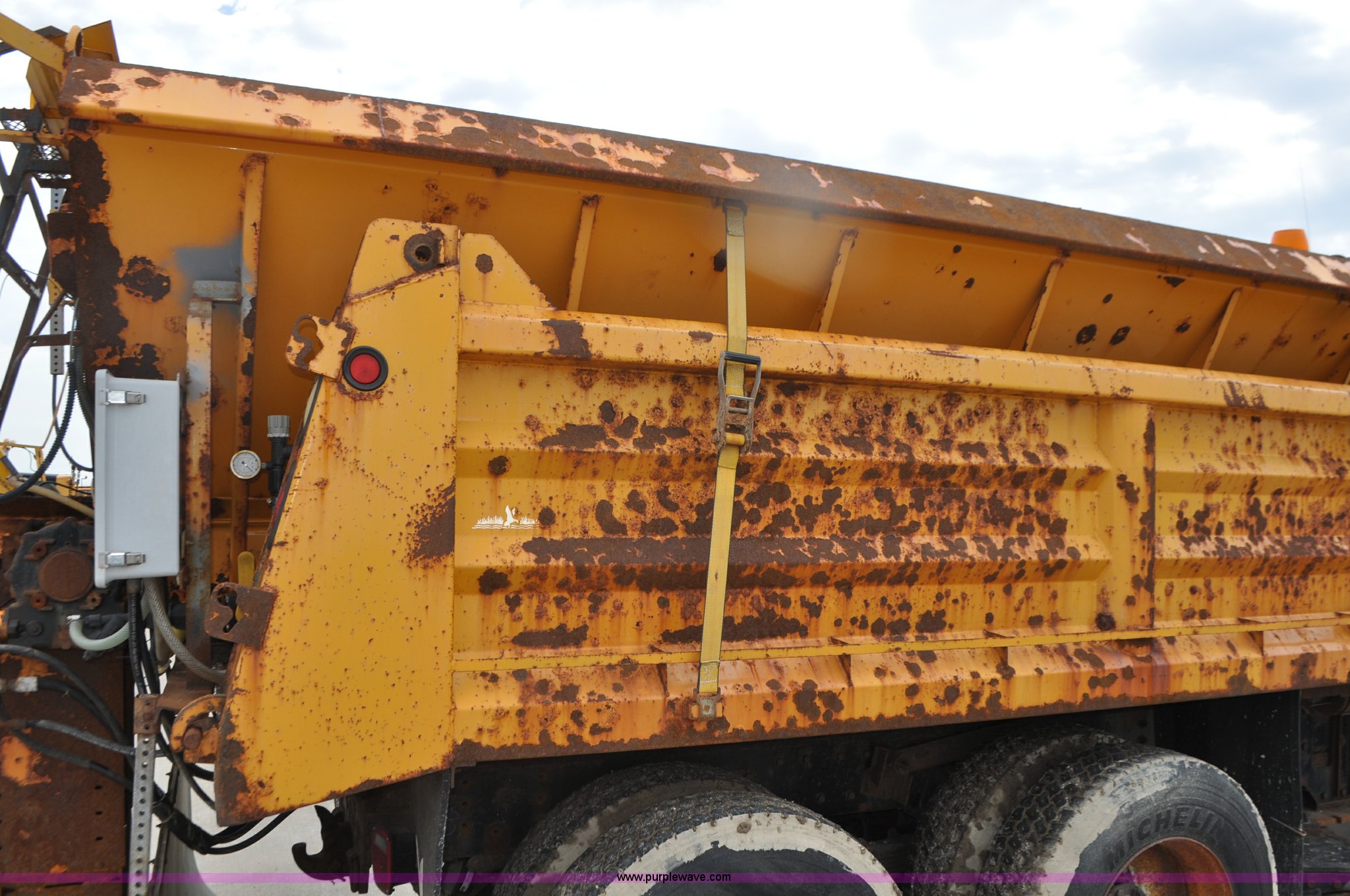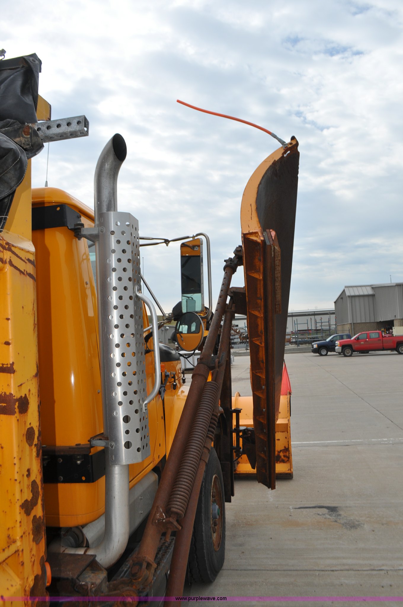 Purple Wave is selling a used Construction Dump Truck in South Dakota. This item is a 1998 International 2554 dump truck with the following: 97,275 miles on odometer, 5,102 hours on meter, International DT530 8.7L L6 turbo diesel engine, Eaton Fuller 10 speed manual transmission, Tandem axle, Inter-axle differential lock, Tilt, Telescoping steering wheel, AM/FM, Air suspension seat, Front mount PTO, 15'L 96"W steel dump bed, 35" side height, Single ram hoist, Air operated end gate, Monroe MP48R12-ISCT plow, 12'W, Equip ID RD067, Henderson WSHX14X50 spreader, 14'L, Equip ID RN222, Monroe snow wing, 10'W, Equip ID RR330, Tennco underbody scraper, 8'W, Equip ID RA069, Single fuel tank, Pintle hitch, Spring over walking beam suspension, Air brakes, 210" wheelbase, 385/65R22.5 front tires, 11R22.5 rear tires, GVWR 54,500 lbs, FAWR 14,500 lbs, IAWR 20,000 lbs, RAWR 20,000 lbs, Equip ID DL157, Asset# 0325987