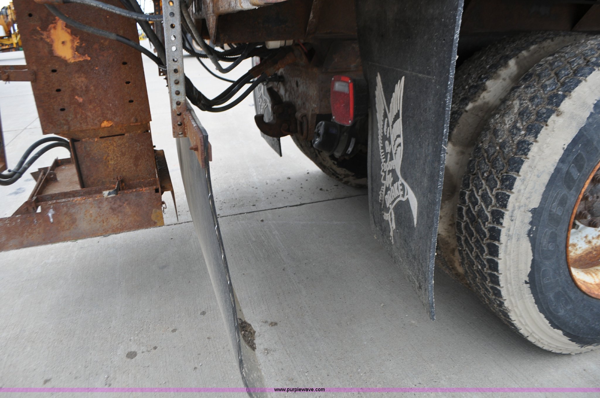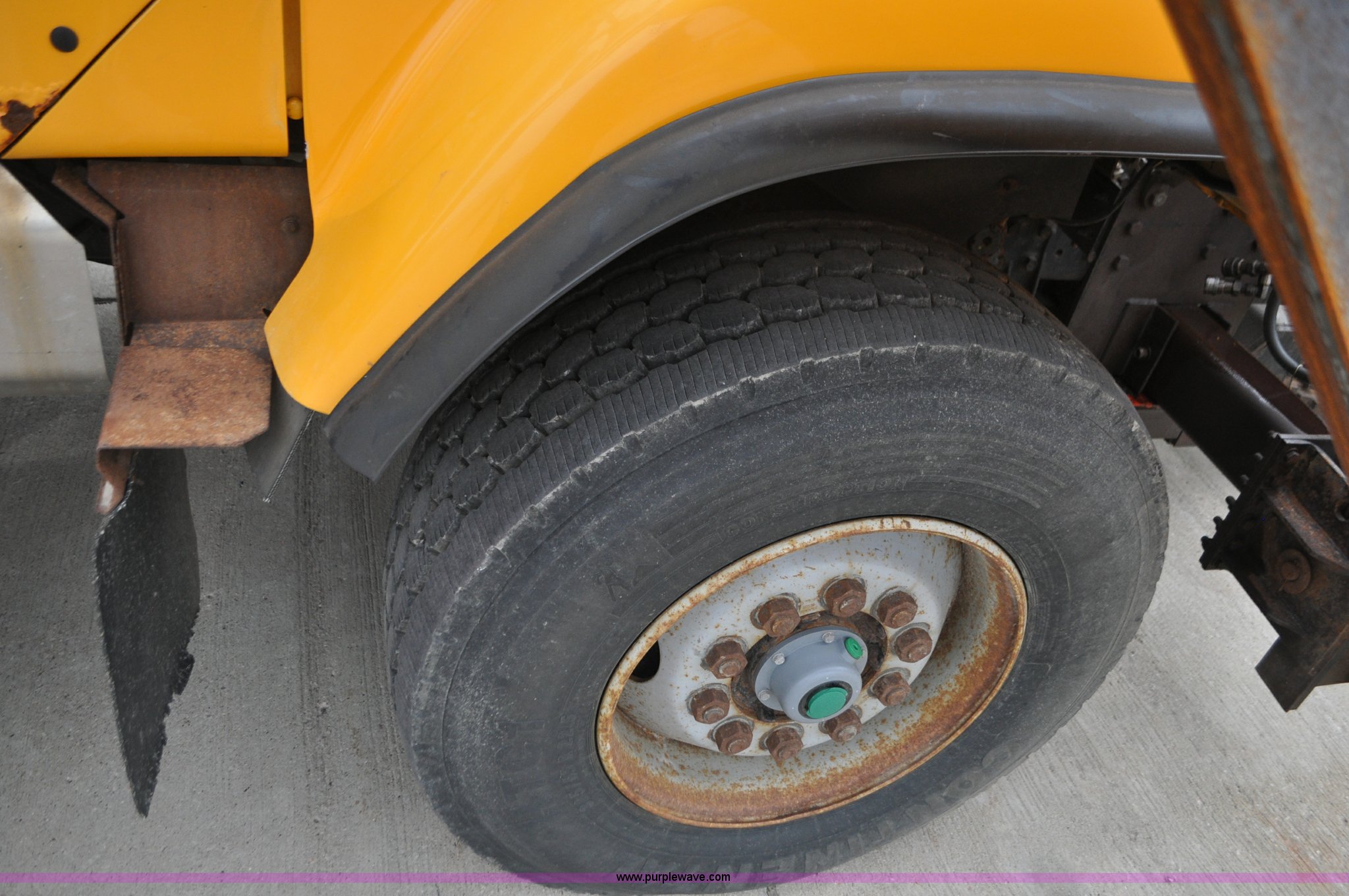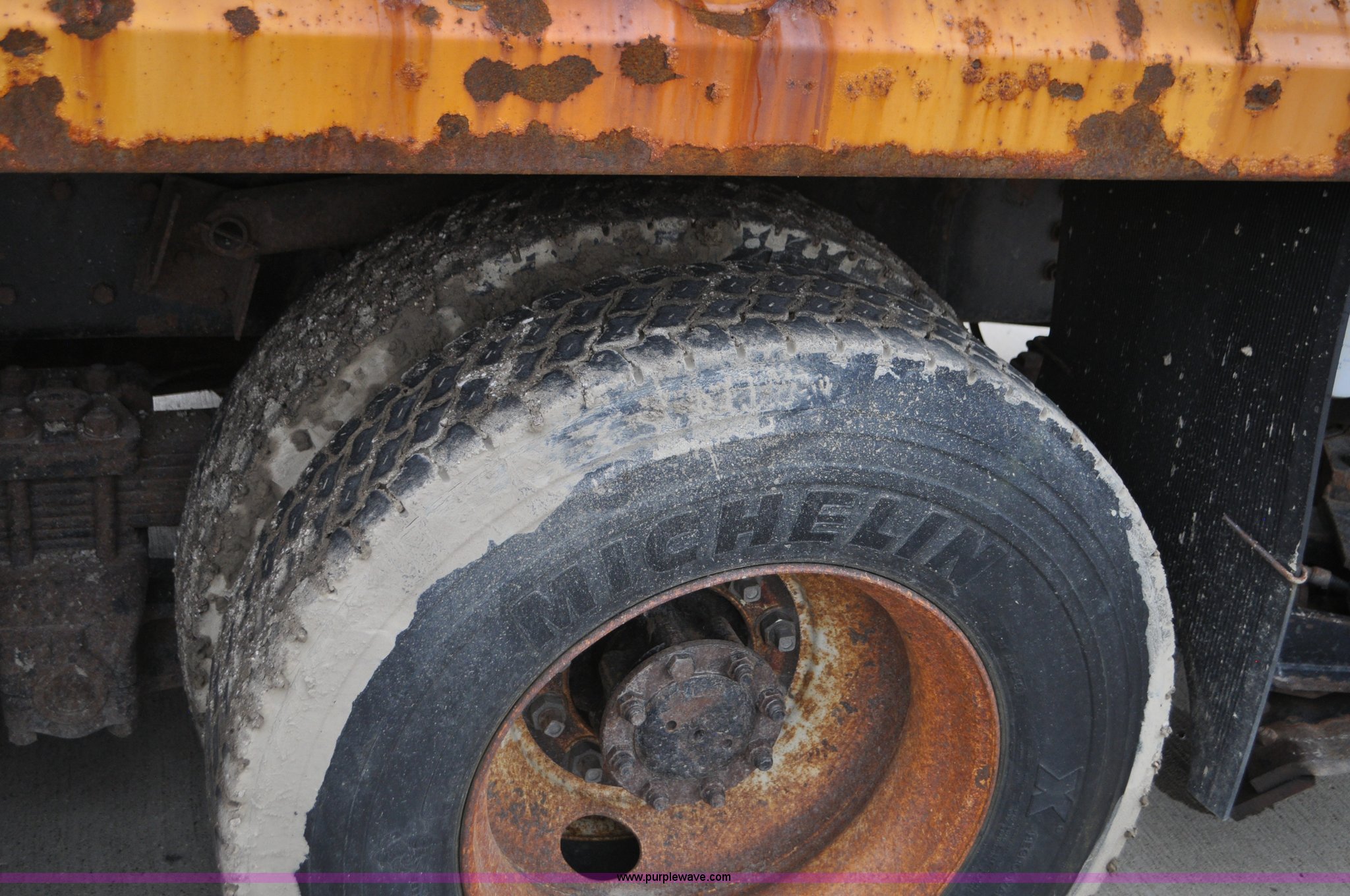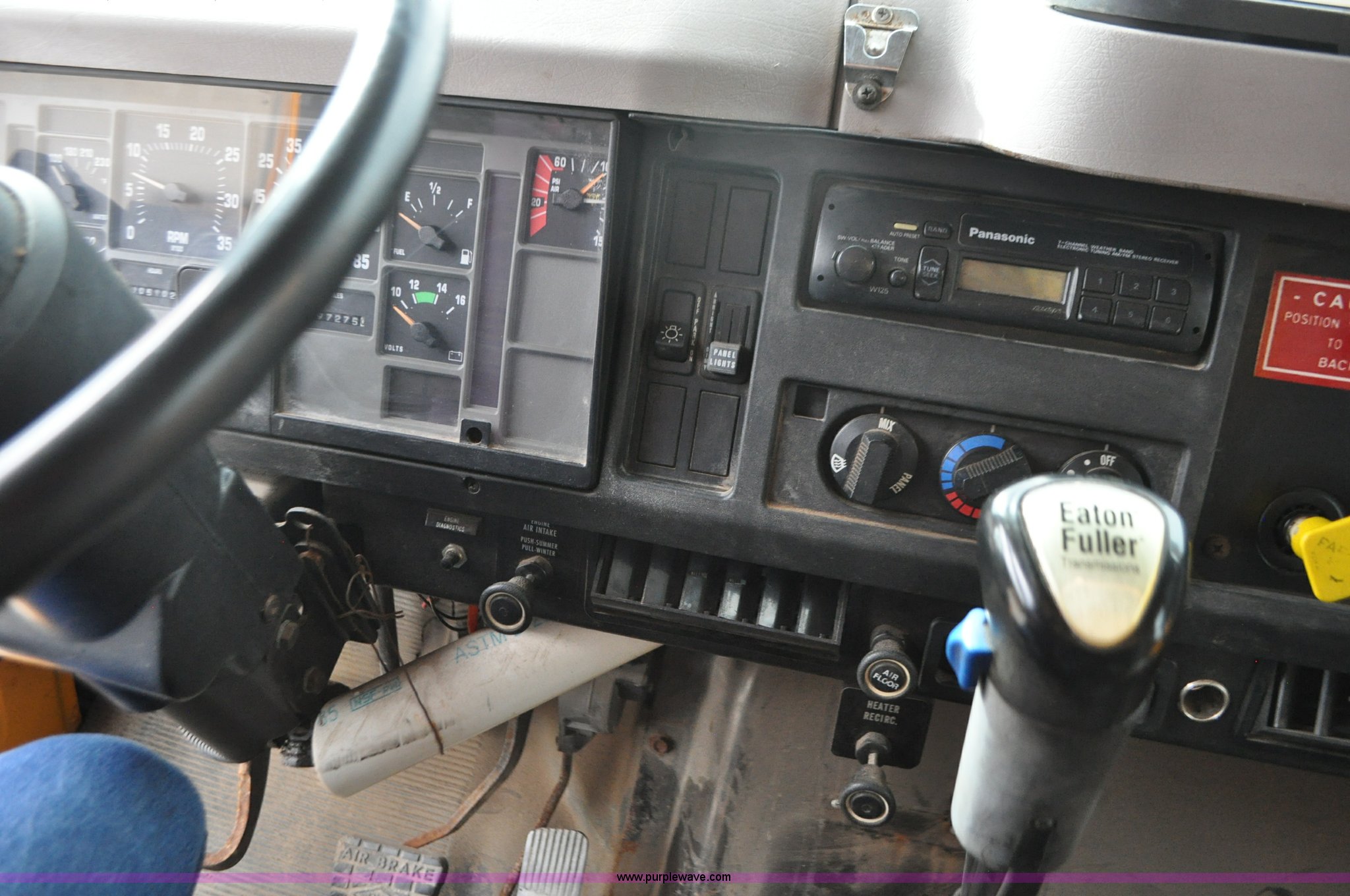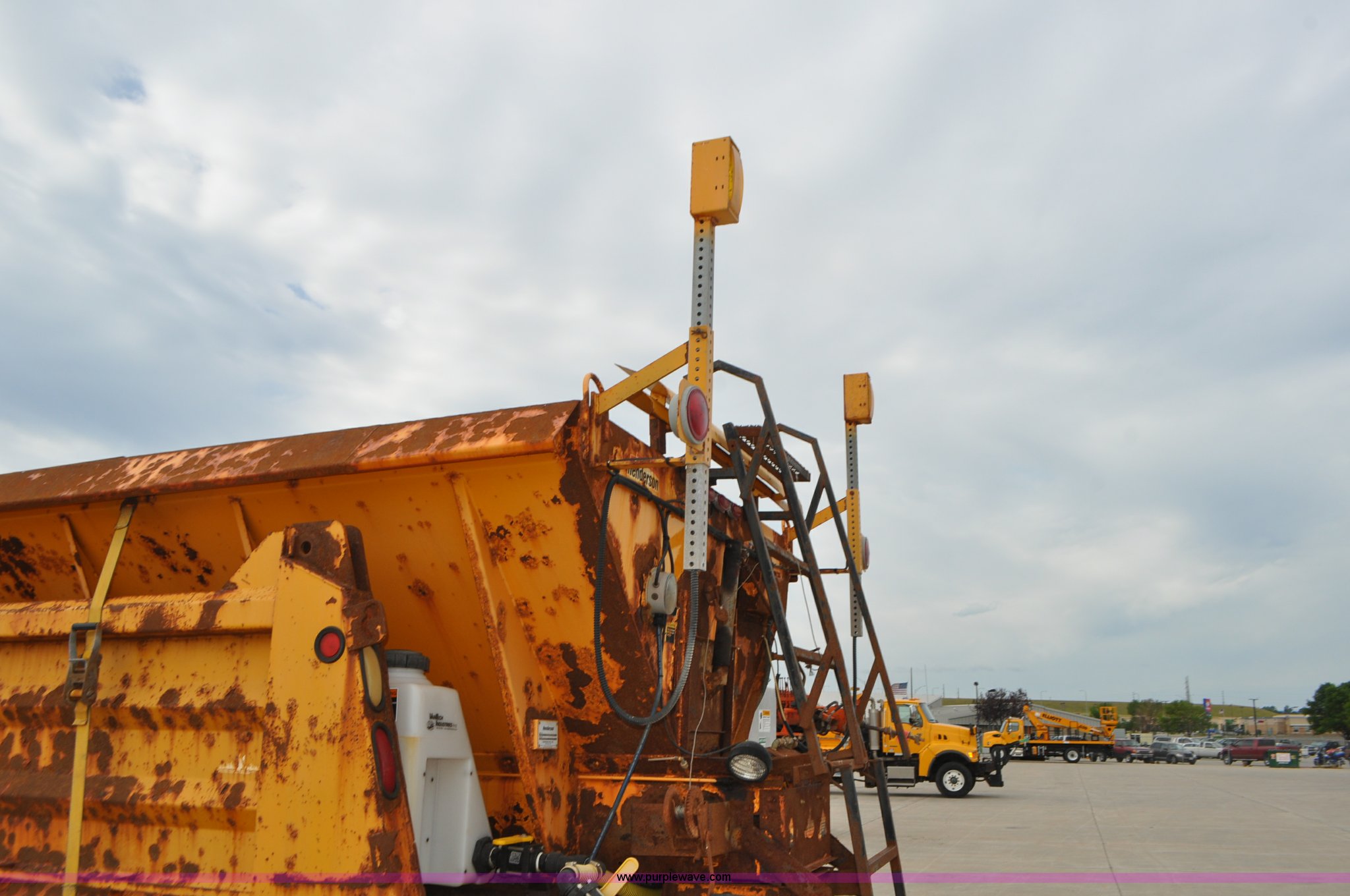 Purple Wave is selling a used Construction Dump Truck in South Dakota. This item is a 1998 International 2554 dump truck with the following: 97,275 miles on odometer, 5,102 hours on meter, International DT530 8.7L L6 turbo diesel engine, Eaton Fuller 10 speed manual transmission, Tandem axle, Inter-axle differential lock, Tilt, Telescoping steering wheel, AM/FM, Air suspension seat, Front mount PTO, 15'L 96"W steel dump bed, 35" side height, Single ram hoist, Air operated end gate, Monroe MP48R12-ISCT plow, 12'W, Equip ID RD067, Henderson WSHX14X50 spreader, 14'L, Equip ID RN222, Monroe snow wing, 10'W, Equip ID RR330, Tennco underbody scraper, 8'W, Equip ID RA069, Single fuel tank, Pintle hitch, Spring over walking beam suspension, Air brakes, 210" wheelbase, 385/65R22.5 front tires, 11R22.5 rear tires, GVWR 54,500 lbs, FAWR 14,500 lbs, IAWR 20,000 lbs, RAWR 20,000 lbs, Equip ID DL157, Asset# 0325987
