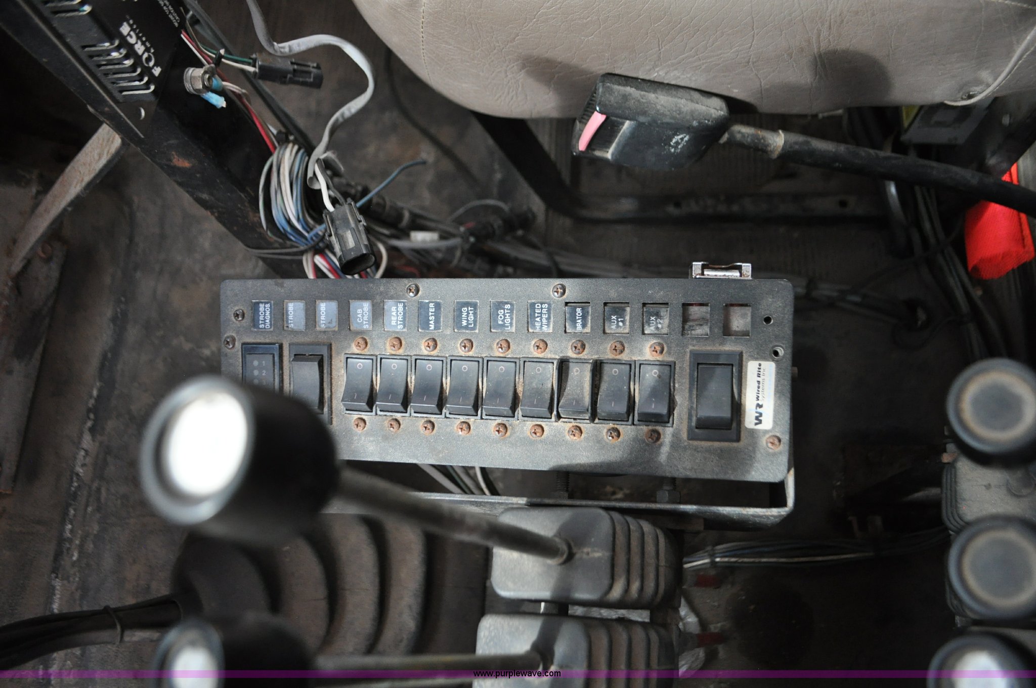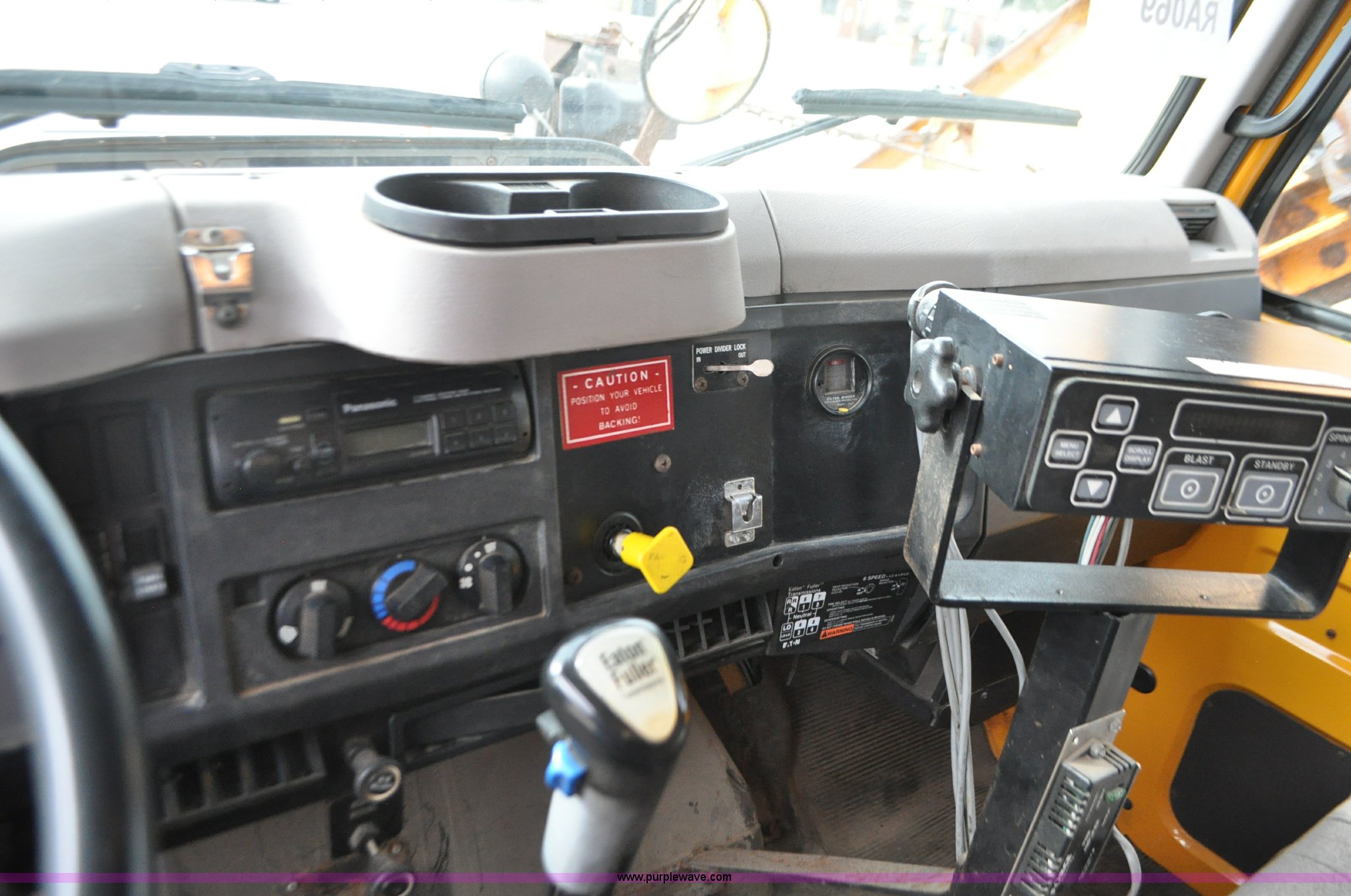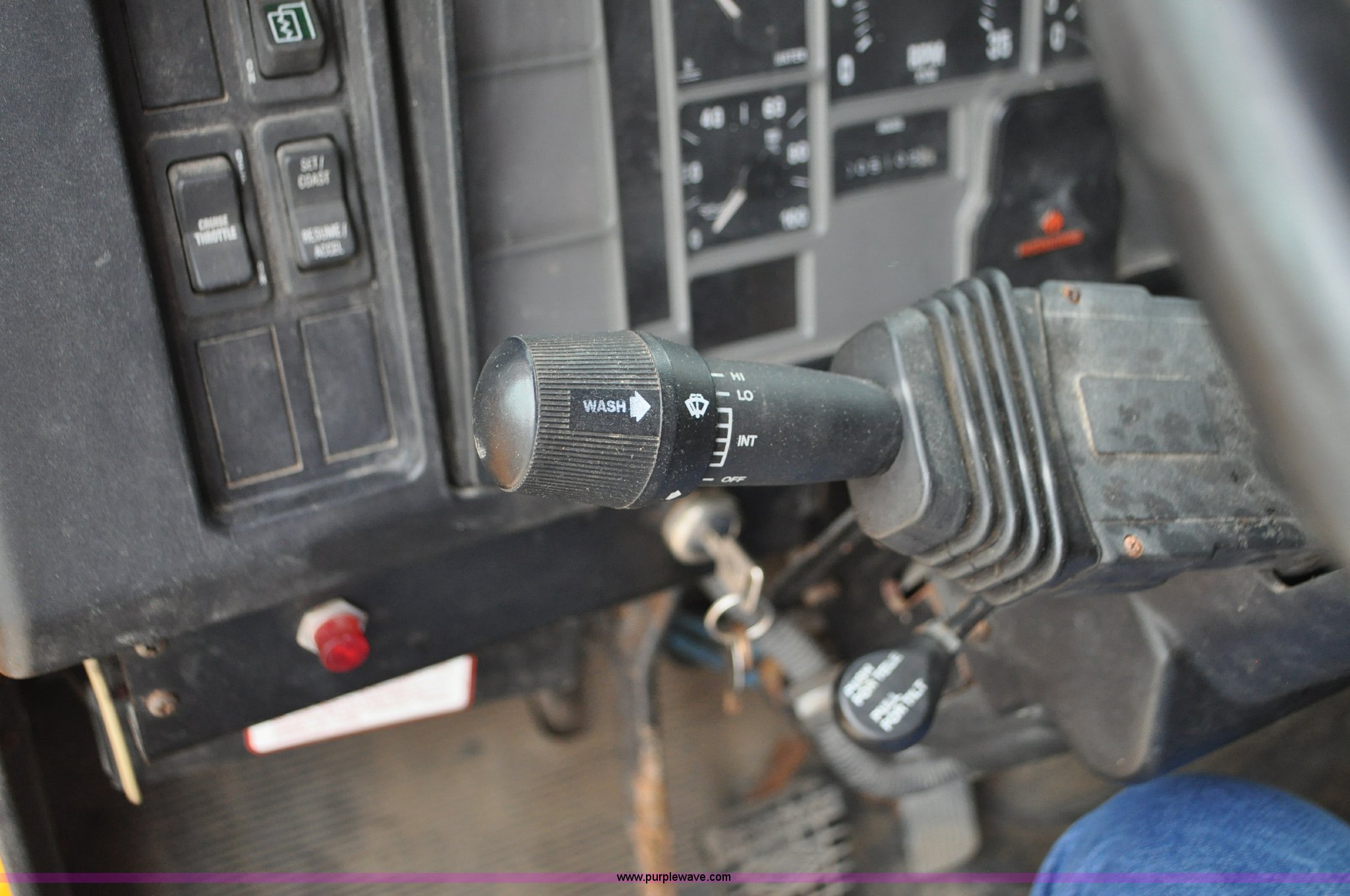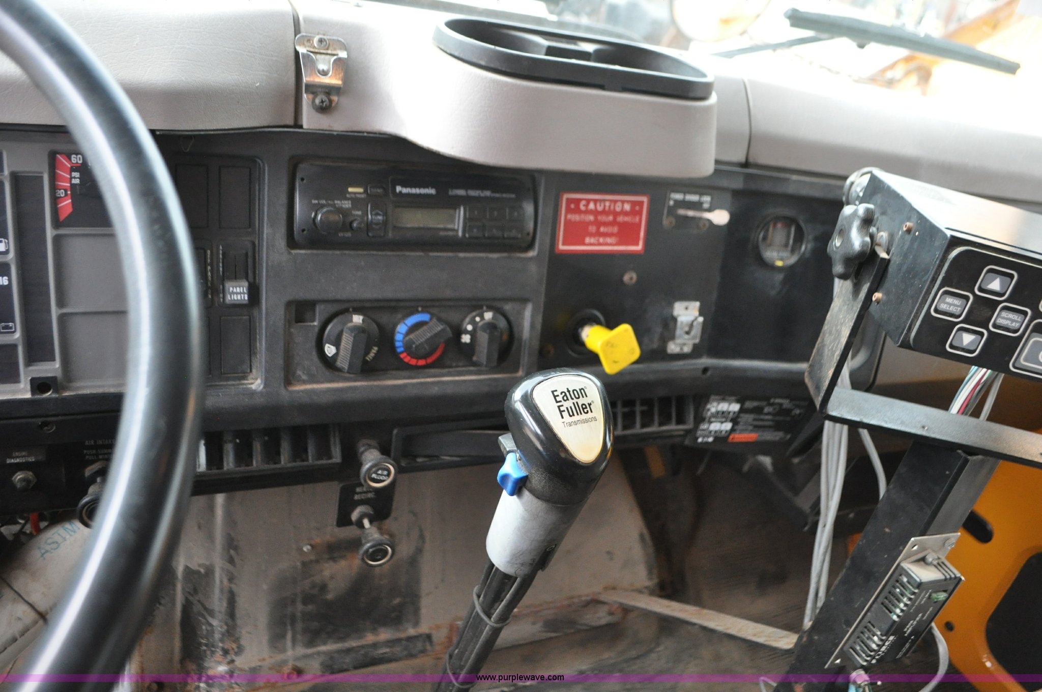 Purple Wave is selling a used Construction Dump Truck in South Dakota. This item is a 1998 International 2554 dump truck with the following: 97,275 miles on odometer, 5,102 hours on meter, International DT530 8.7L L6 turbo diesel engine, Eaton Fuller 10 speed manual transmission, Tandem axle, Inter-axle differential lock, Tilt, Telescoping steering wheel, AM/FM, Air suspension seat, Front mount PTO, 15'L 96"W steel dump bed, 35" side height, Single ram hoist, Air operated end gate, Monroe MP48R12-ISCT plow, 12'W, Equip ID RD067, Henderson WSHX14X50 spreader, 14'L, Equip ID RN222, Monroe snow wing, 10'W, Equip ID RR330, Tennco underbody scraper, 8'W, Equip ID RA069, Single fuel tank, Pintle hitch, Spring over walking beam suspension, Air brakes, 210" wheelbase, 385/65R22.5 front tires, 11R22.5 rear tires, GVWR 54,500 lbs, FAWR 14,500 lbs, IAWR 20,000 lbs, RAWR 20,000 lbs, Equip ID DL157, Asset# 0325987