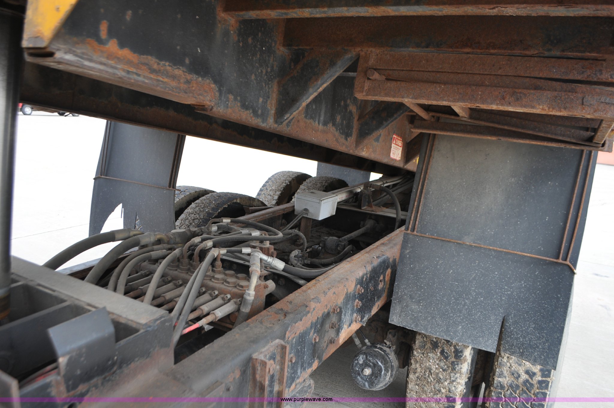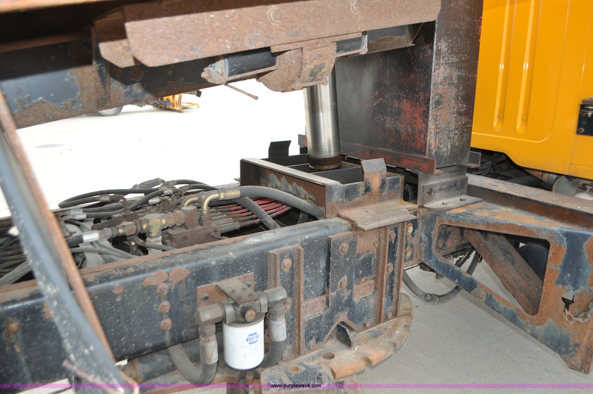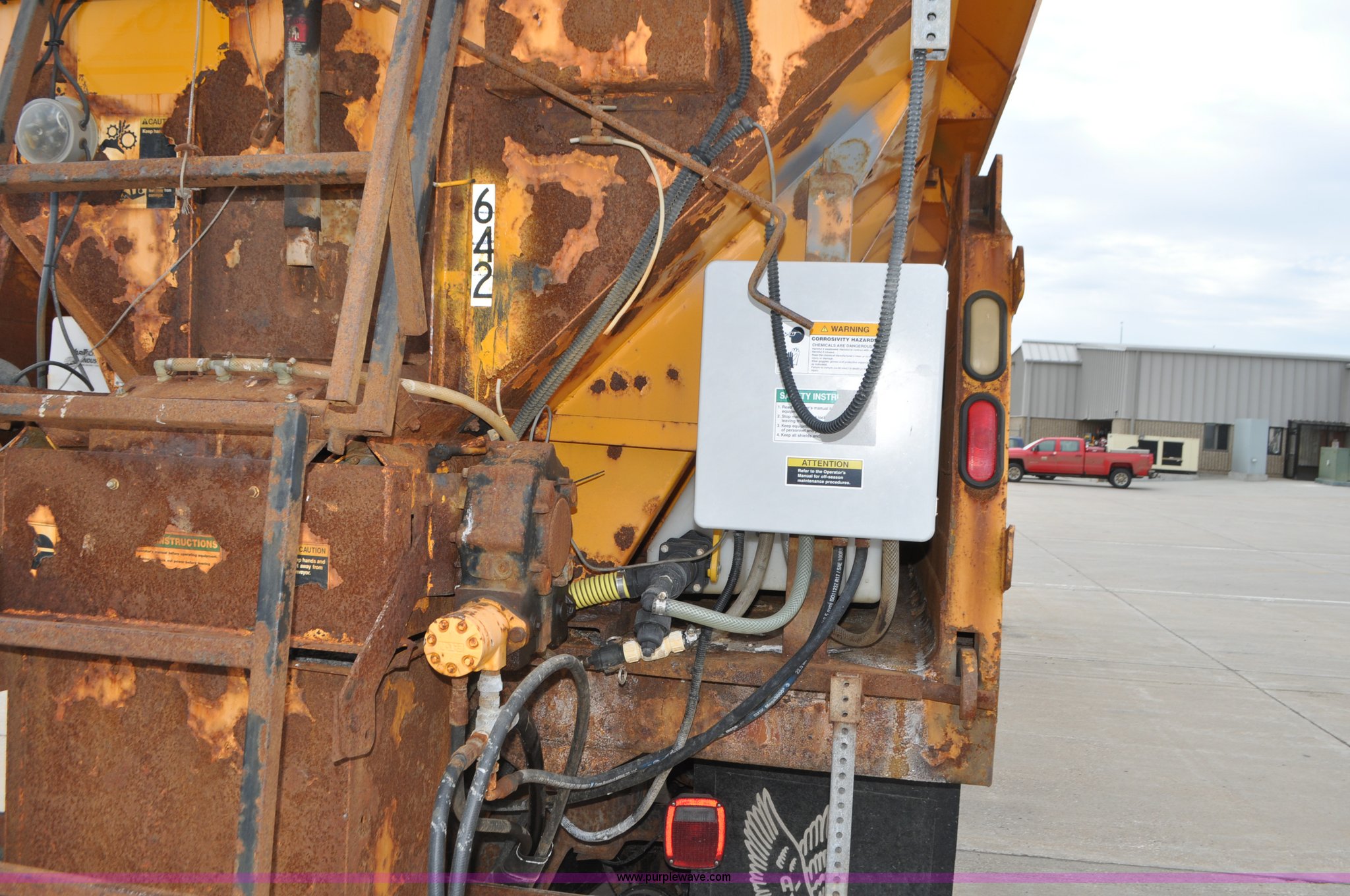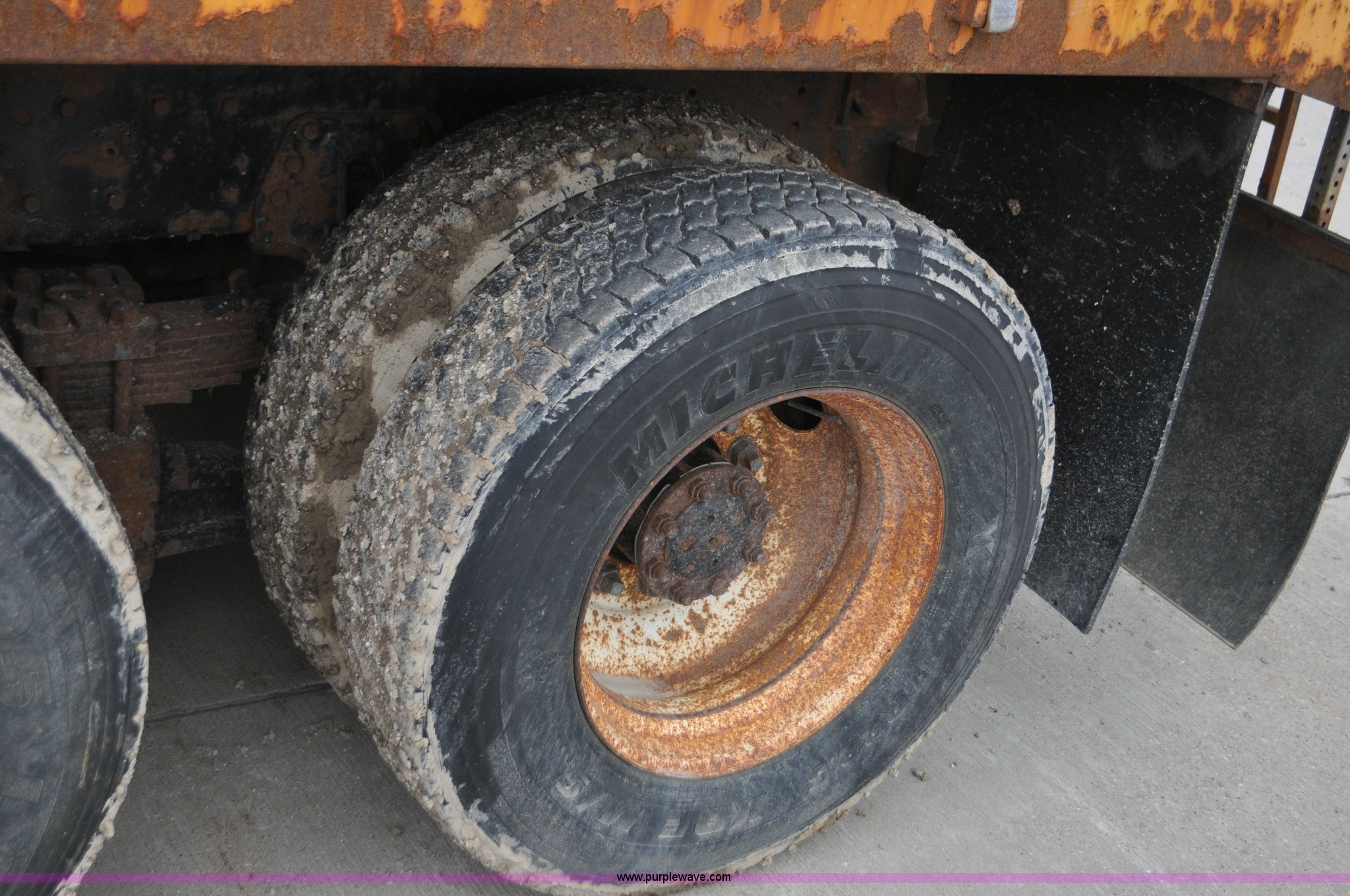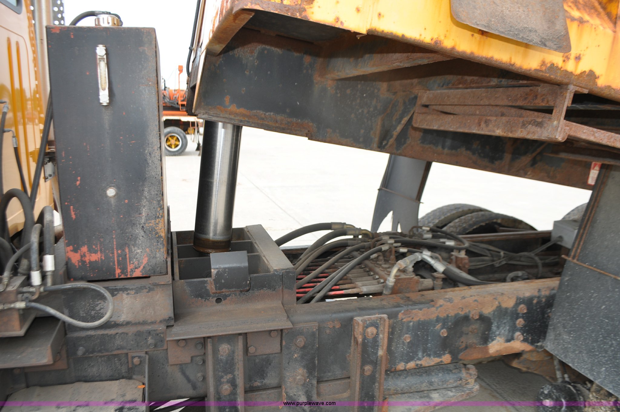 Purple Wave is selling a used Construction Dump Truck in South Dakota. This item is a 1998 International 2554 dump truck with the following: 97,275 miles on odometer, 5,102 hours on meter, International DT530 8.7L L6 turbo diesel engine, Eaton Fuller 10 speed manual transmission, Tandem axle, Inter-axle differential lock, Tilt, Telescoping steering wheel, AM/FM, Air suspension seat, Front mount PTO, 15'L 96"W steel dump bed, 35" side height, Single ram hoist, Air operated end gate, Monroe MP48R12-ISCT plow, 12'W, Equip ID RD067, Henderson WSHX14X50 spreader, 14'L, Equip ID RN222, Monroe snow wing, 10'W, Equip ID RR330, Tennco underbody scraper, 8'W, Equip ID RA069, Single fuel tank, Pintle hitch, Spring over walking beam suspension, Air brakes, 210" wheelbase, 385/65R22.5 front tires, 11R22.5 rear tires, GVWR 54,500 lbs, FAWR 14,500 lbs, IAWR 20,000 lbs, RAWR 20,000 lbs, Equip ID DL157, Asset# 0325987