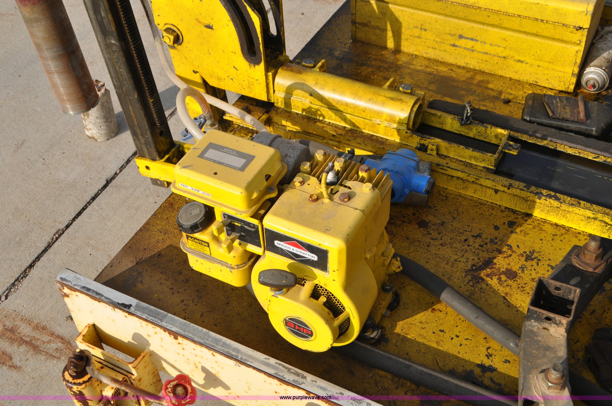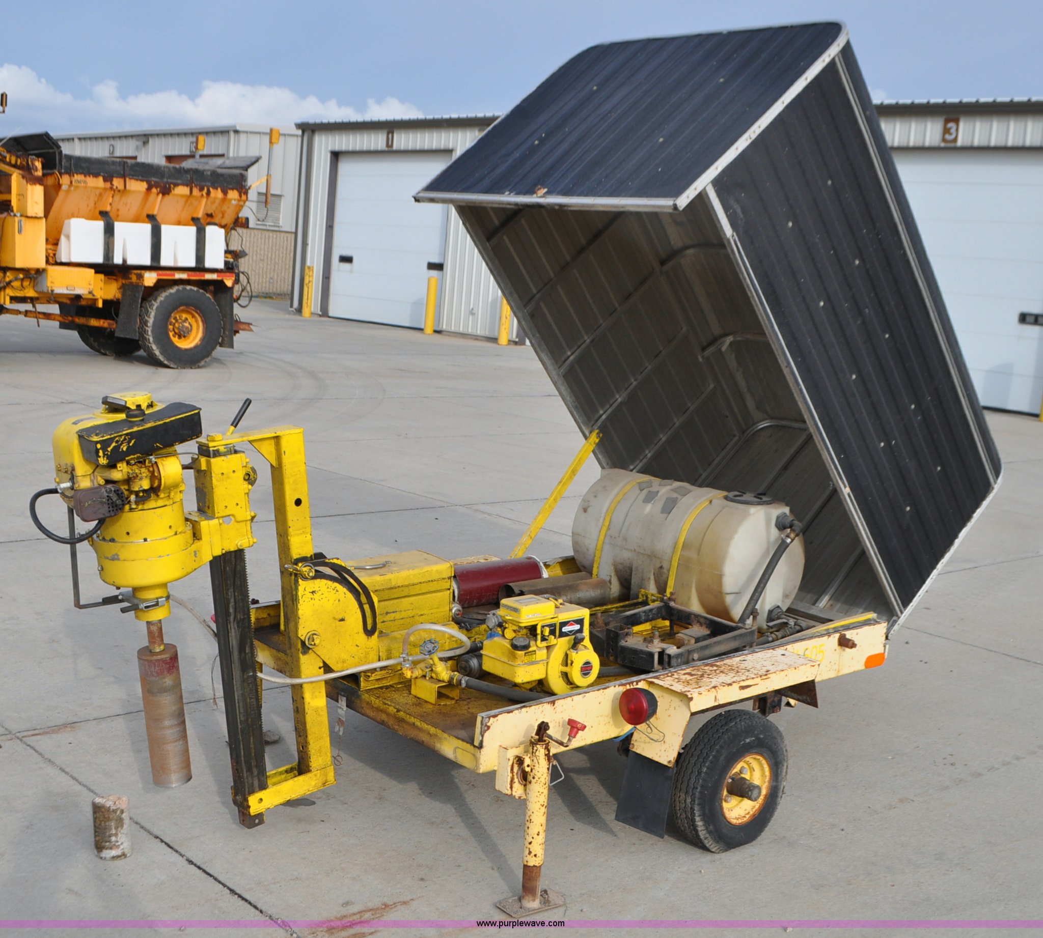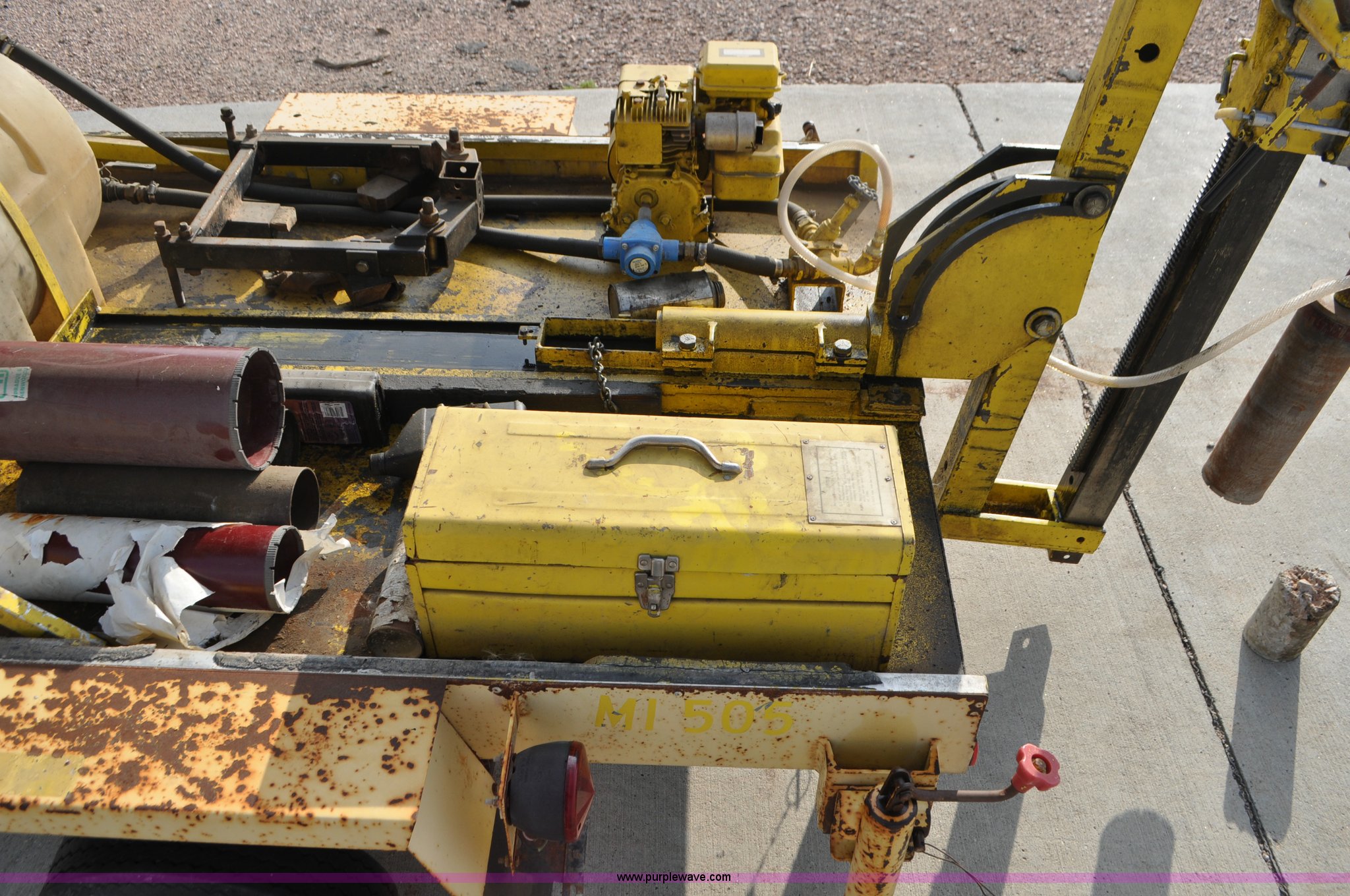 Purple Wave is selling a used Core Drill in South Dakota. This item is a Sprague & Henwood core drill with enclosed trailer with the following: Model MDS780, Tecumseh gas engine for drill, Briggs & Stratton gas engine for cooling and lubrication pump, Lubrication pump is stuck, 6" and 4" bits, 30" travel, 75" x 51" enclosed trailer, 1 7/8" ball, Stabilizer jacks, 5.70-8 tires, Equip ID MI505, Serial 388, Asset# 281387