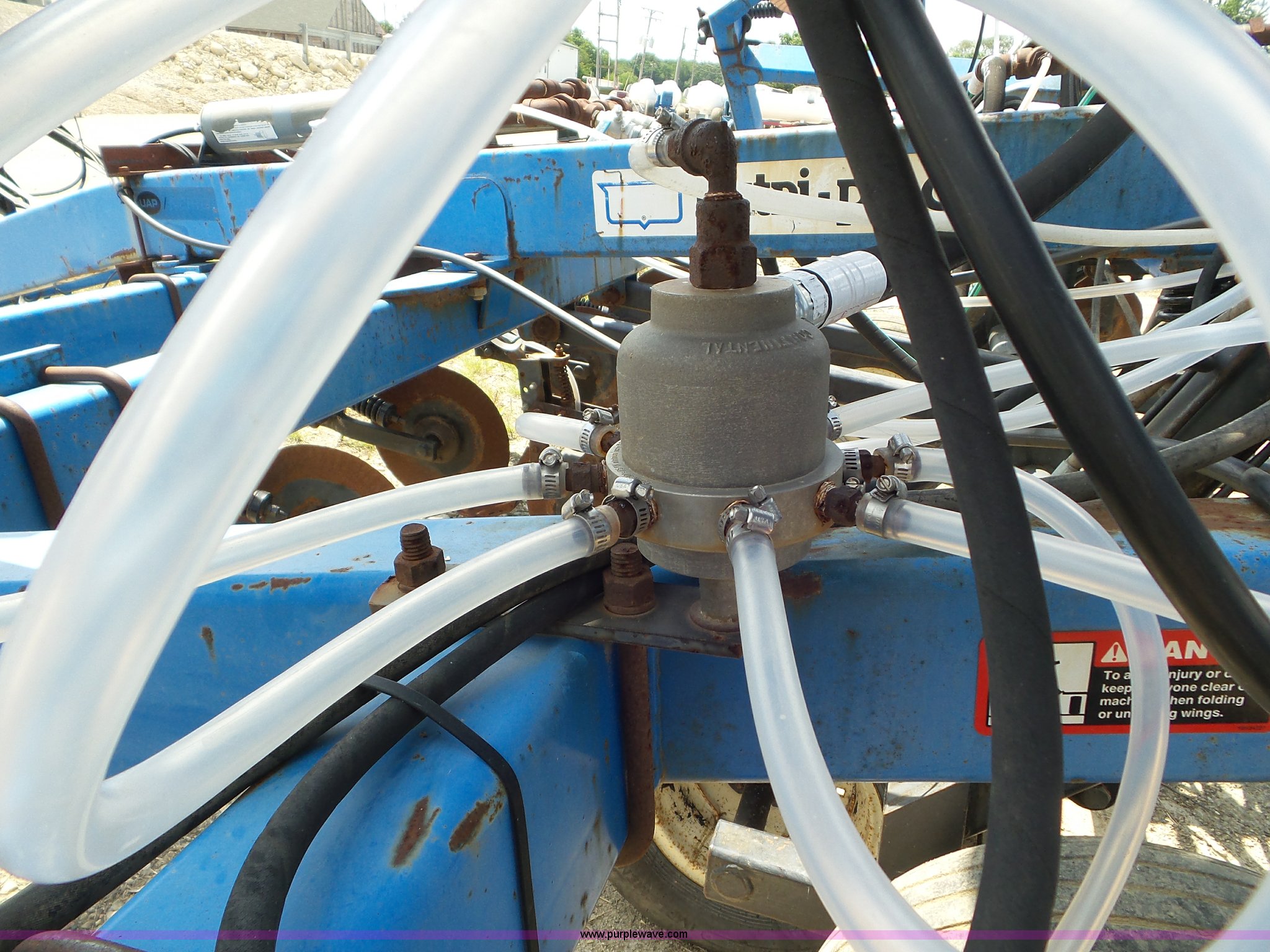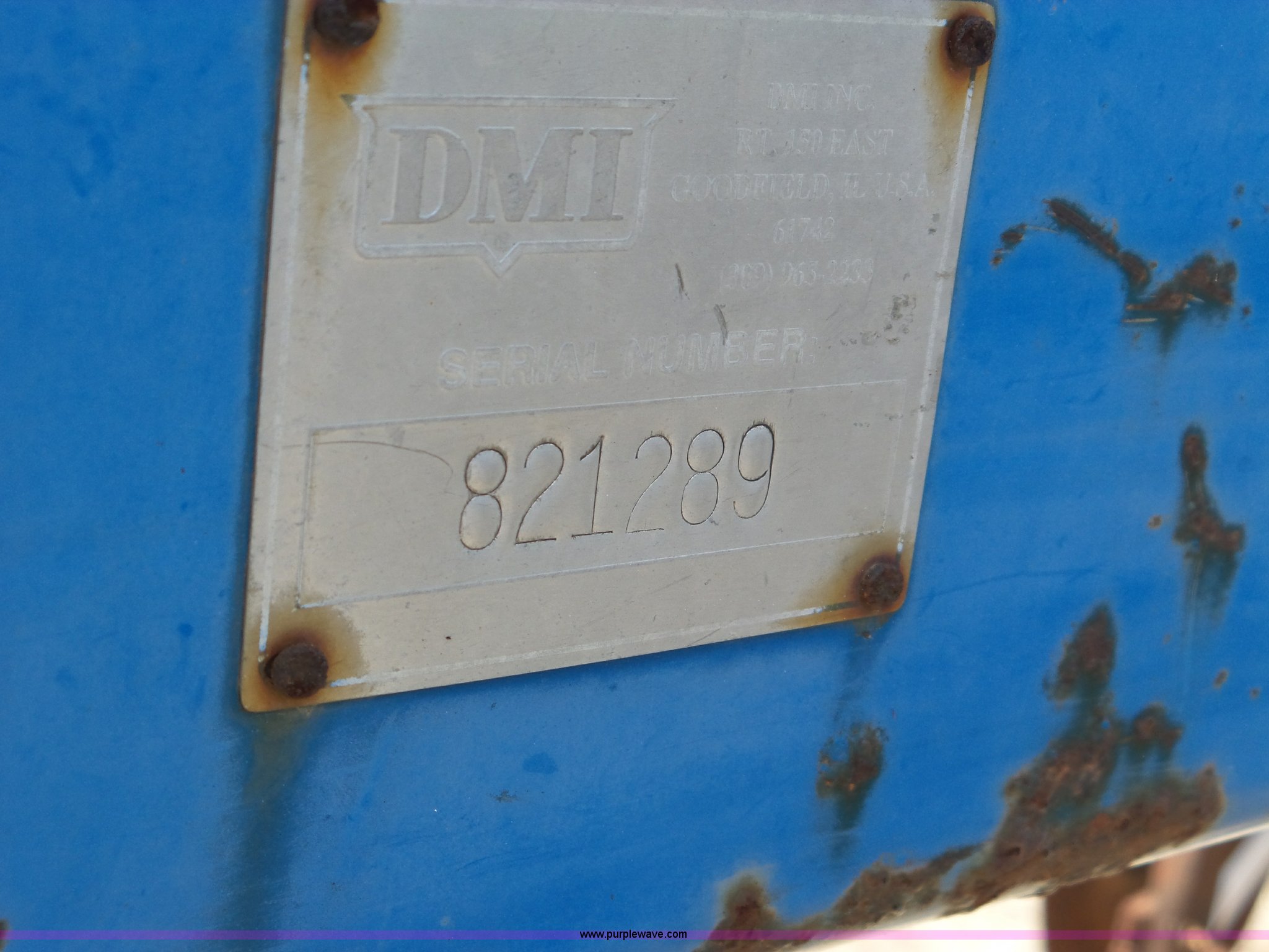 Purple Wave is selling a used Applicator Pull Type in Indiana. This item is a DMI Nutri-Placr 4300 applicator with the following: Approximately 35'W, (15) shanks, 30" spacing, No till openers, Yetter closing wheels, B9500 Continental Metermatic anhydrous pump with hydraulic shut off, Hydraulic fold and lift, Front and rear pin hitch, 11-15 tires, Serial 821289, Unit# 15-1
