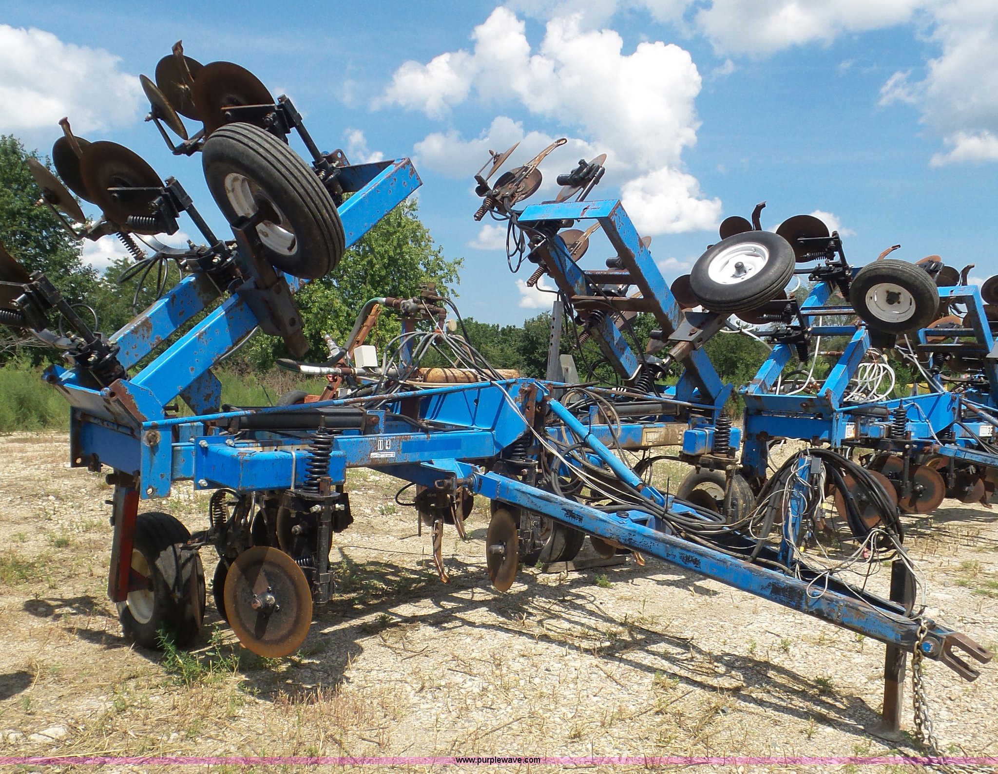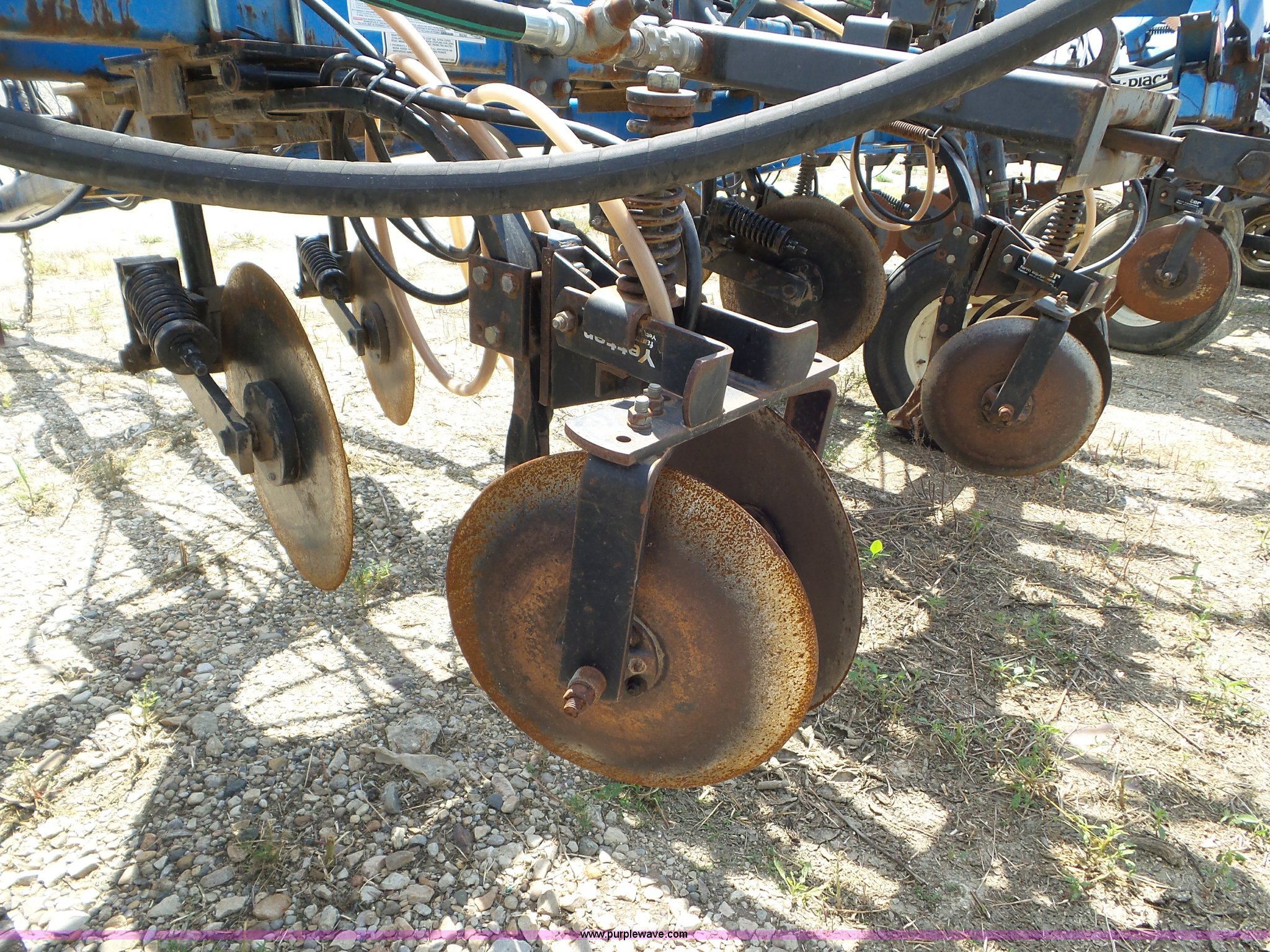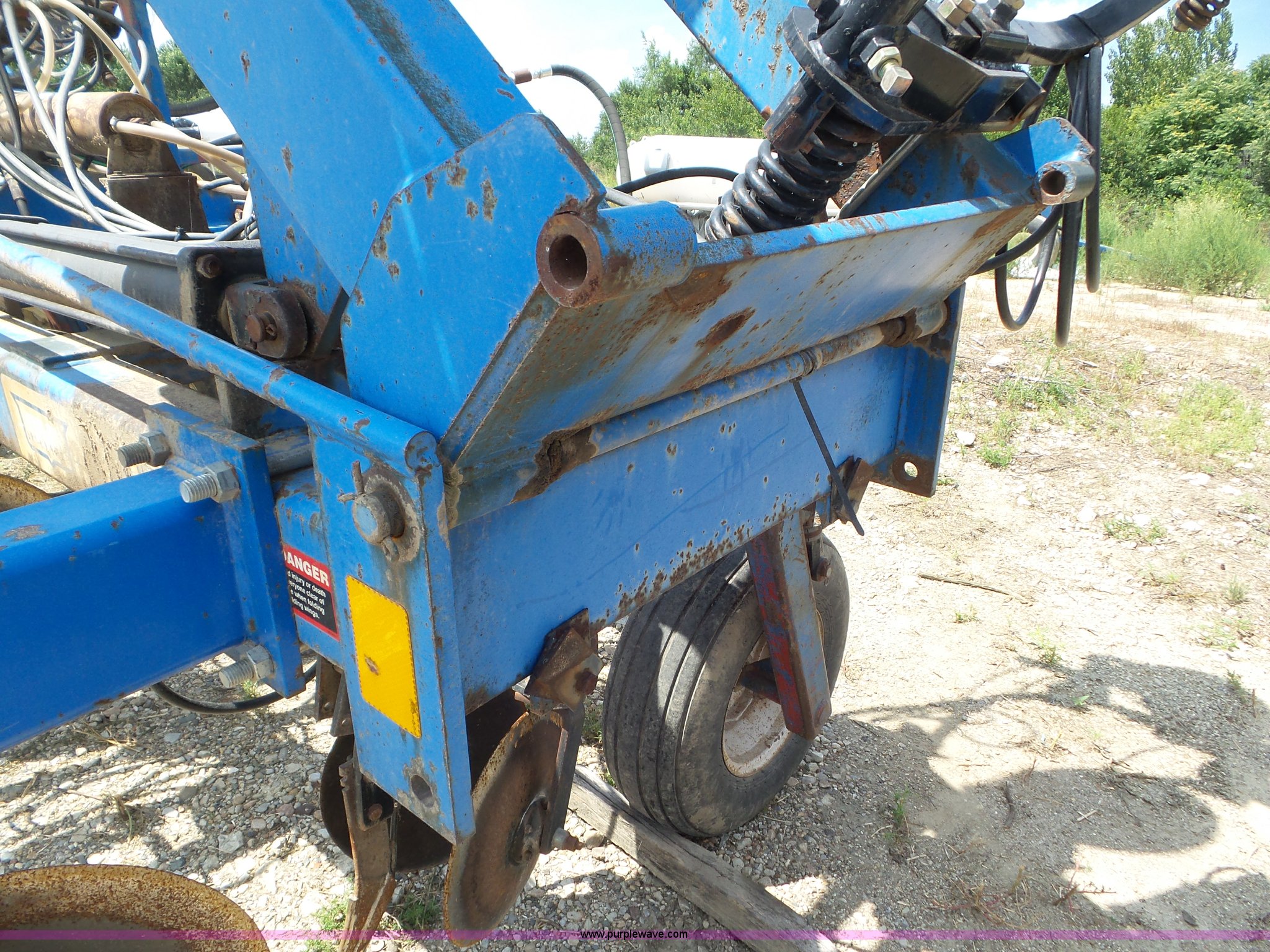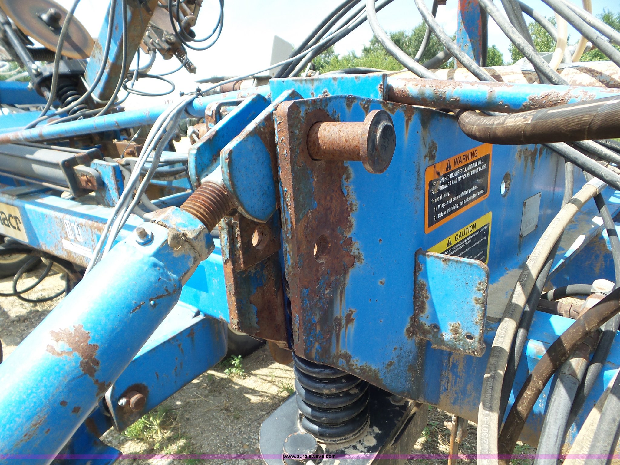 Purple Wave is selling a used Applicator Pull Type in Indiana. This item is a DMI Nutri-Placr 3250 applicator with the following: Approximately 24'W, (11) shanks, Openers, Yetter closing wheels, B9500 Continental Metermatic anhydrous pump with hydraulic shut off, Hydraulic fold and lift, Front and rear pin hitches, 11-15 tires, Serial 823343, Unit# 11-4