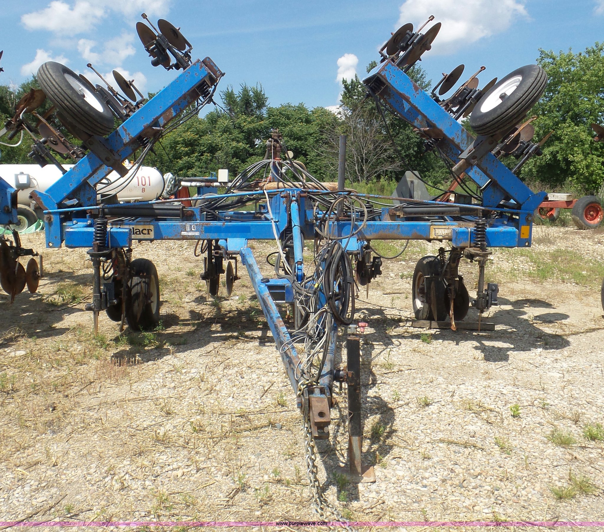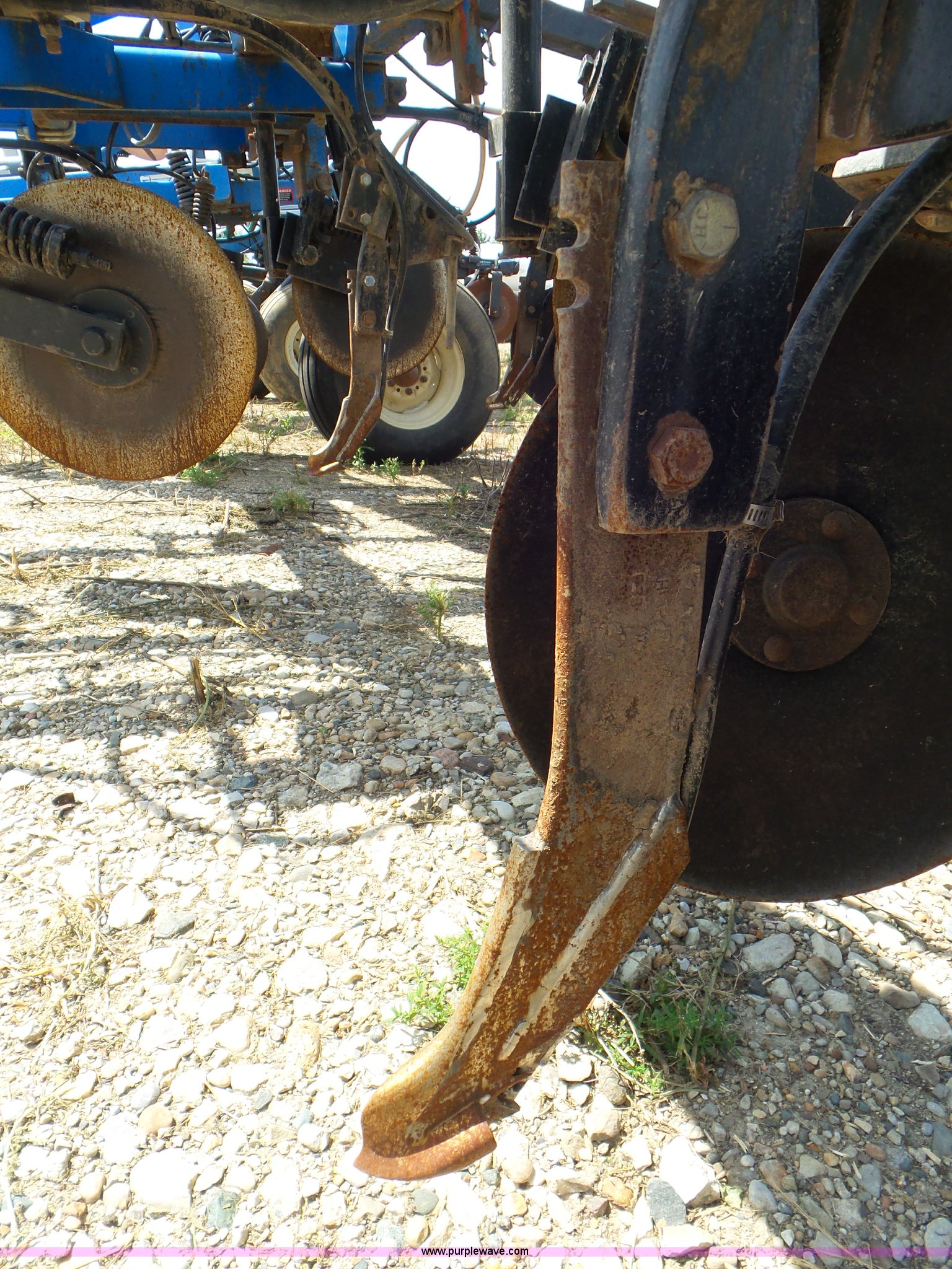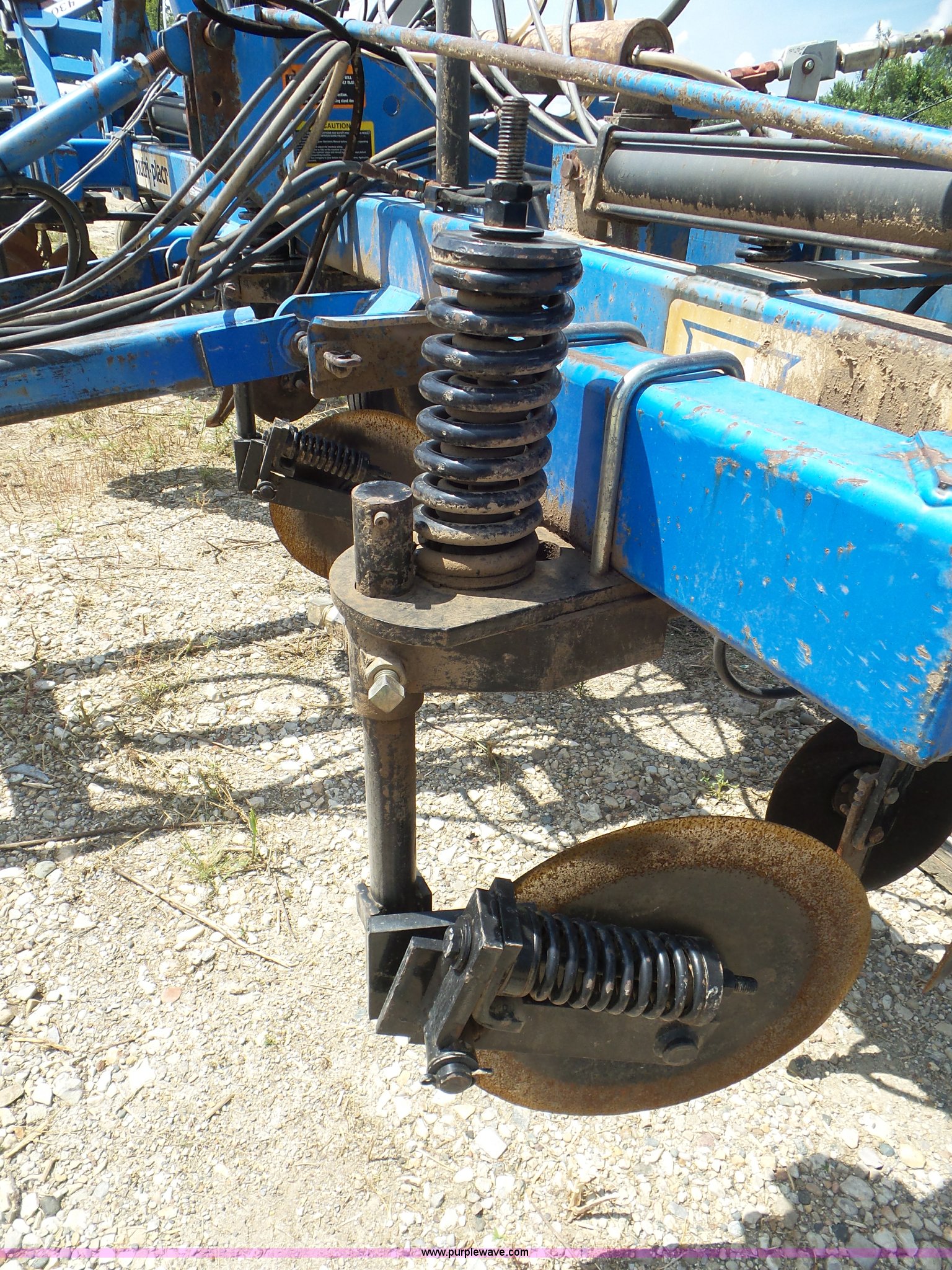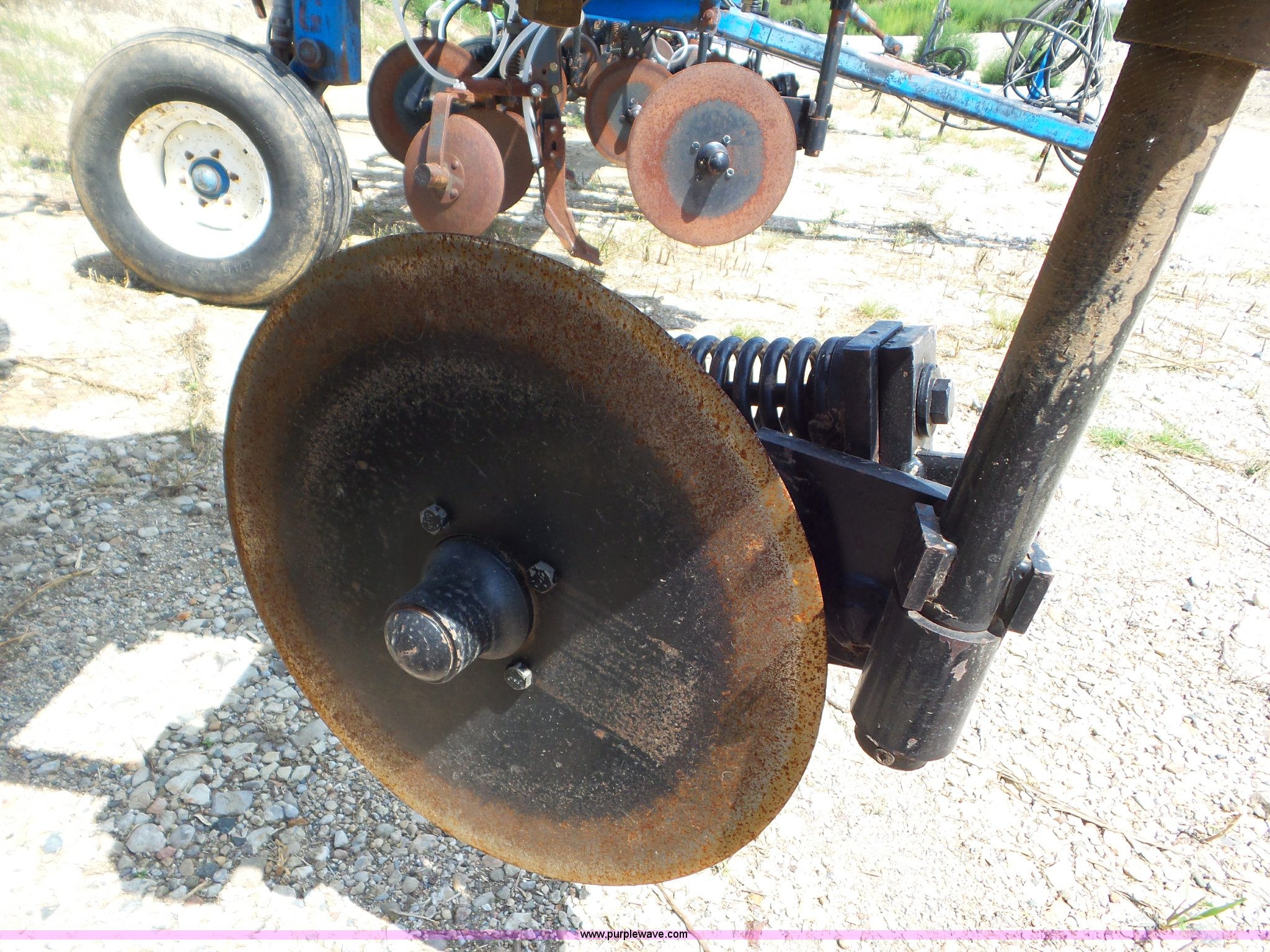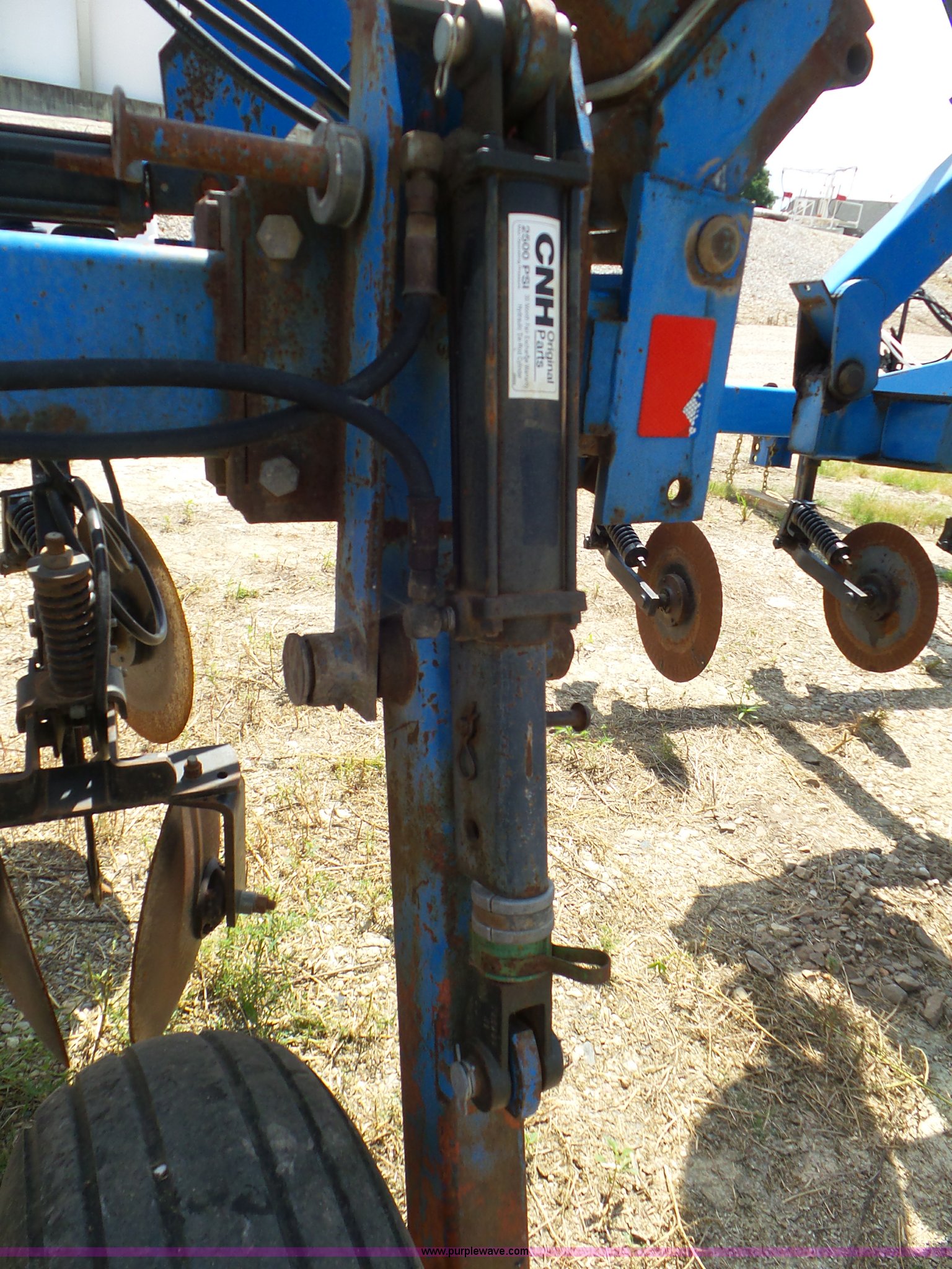 Purple Wave is selling a used Applicator Pull Type in Indiana. This item is a DMI Nutri-Placr 3250 applicator with the following: Approximately 24'W, (11) shanks, Openers, Yetter closing wheels, B9500 Continental Metermatic anhydrous pump with hydraulic shut off, Hydraulic fold and lift, Front and rear pin hitches, 11-15 tires, Serial 823343, Unit# 11-4